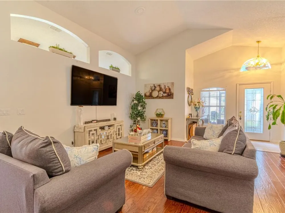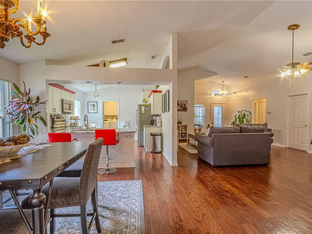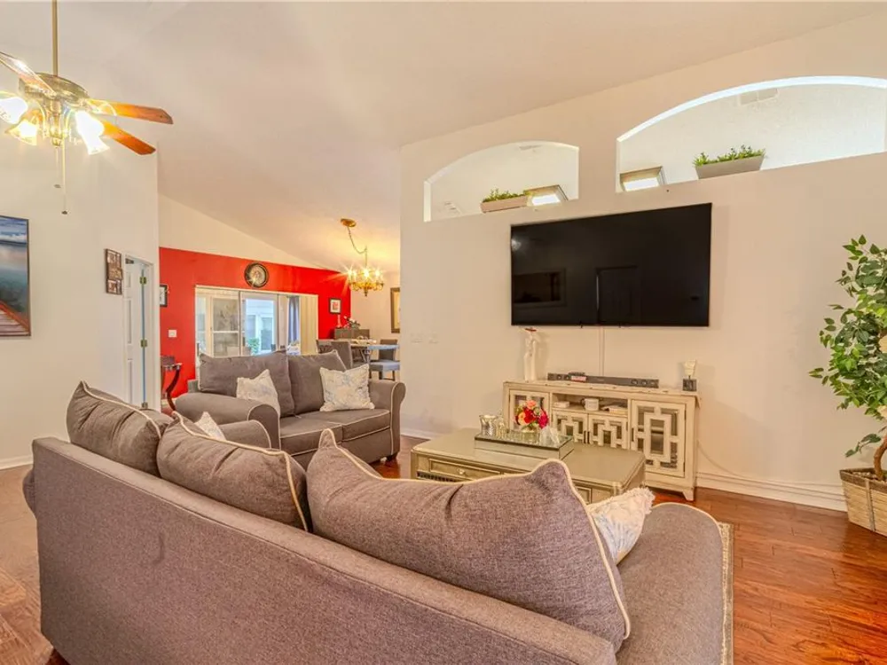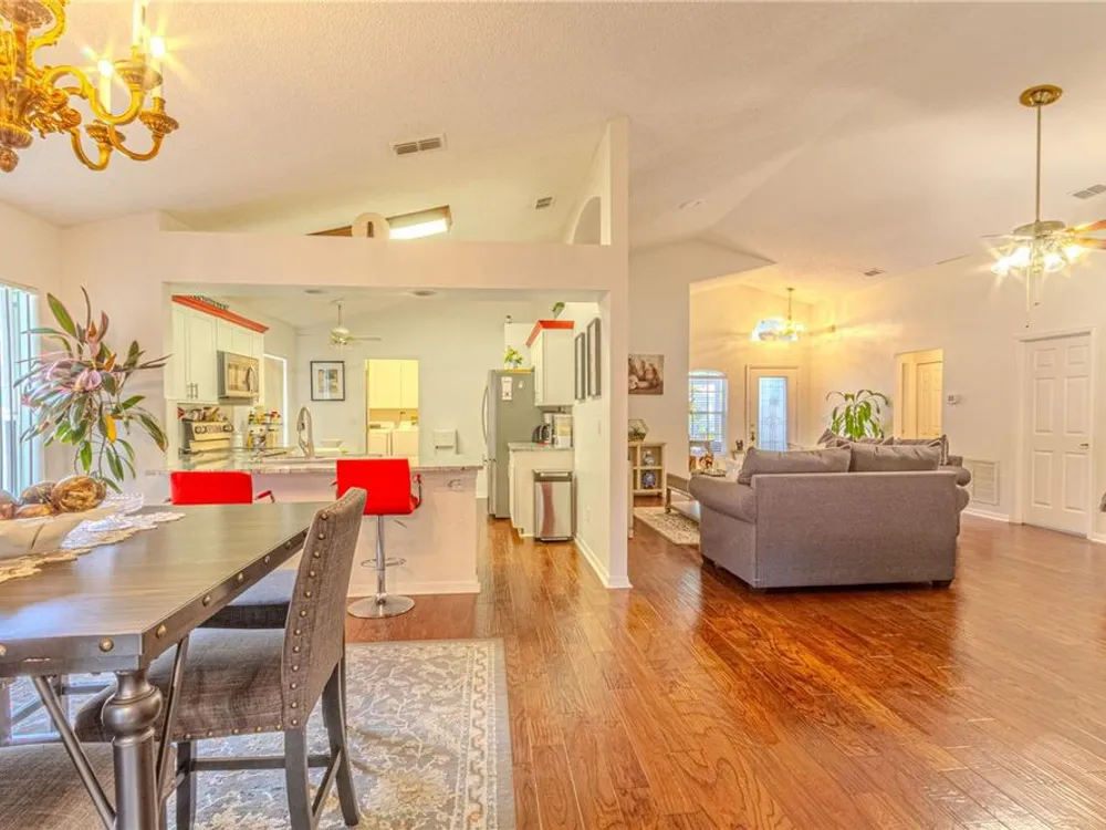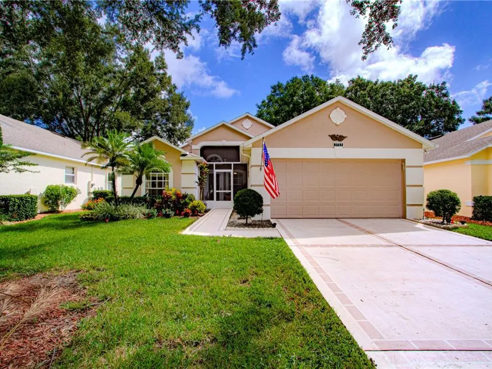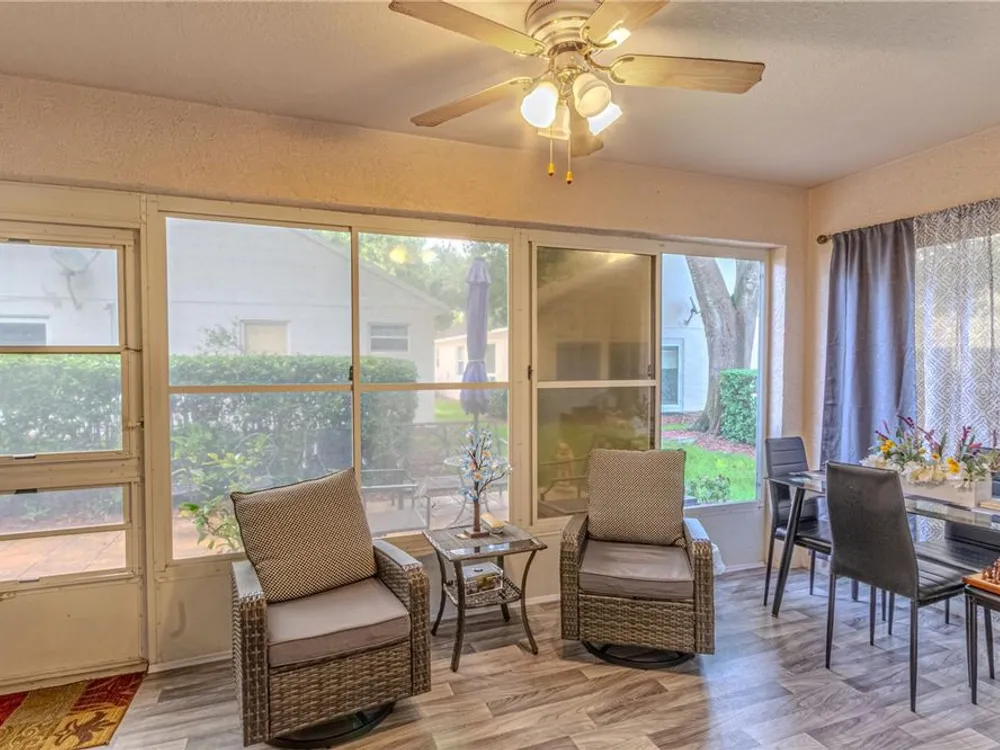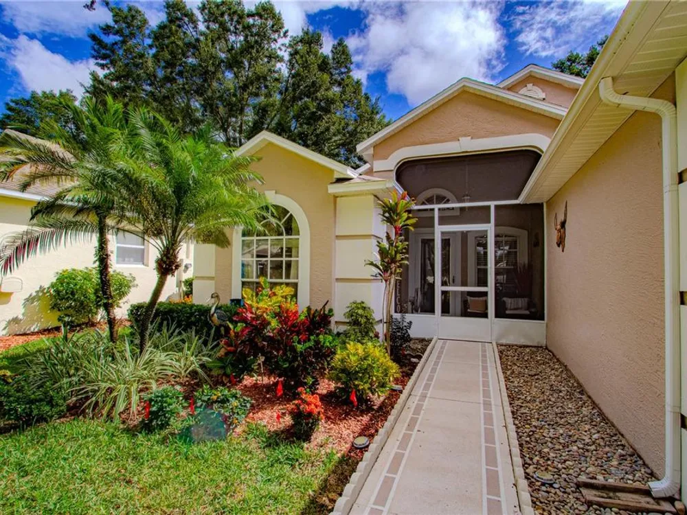 Step into the sought-after Oxford model, a thoughtfully designed 2-bedroom, 2-bathroom residence with a versatile den/office that can easily serve as a guest room, hobby space, or private study. This beautifully maintained home welcomes you with an open and airy floor plan, blending comfort and function for both everyday living and entertaining. The spacious living and dining areas flow seamlessly into the kitchen, creating the heart of the home where family and friends can gather. Natural light fills the interior, highlighting fresh finishes and a warm, inviting ambiance. The three-season room extends the living space, offering a tranquil retreat to enjoy morning coffee, read a book, or simply unwind while overlooking your landscaped surroundings—a true extension of the Florida lifestyle. As a resident of Kings Ridge, one of Central Florida’s premier 55+ communities, you’ll enjoy a lifestyle that feels like a permanent vacation. This active-adult neighborhood features two championship golf courses and an impressive multi-million-dollar clubhouse that serves as the social hub of the community. Spend your days swimming in one of three heated pools, relaxing in the spas, or staying fit in the well-equipped fitness centers. For those who love recreation, the community offers tennis courts, pickleball, shuffleboard, bocce, and billiards. An active social calendar ensures there’s always something to do—from clubs and classes to events and entertainment. Practicality meets convenience with lawn maintenance included, giving you more time to focus on enjoying the vibrant community lifestyle. Whether you prefer quiet evenings at home, a round of golf with neighbors, or participating in group activities, Kings Ridge offers the perfect setting. Ideally located in Clermont’s rolling hills, just minutes from shopping, dining, medical facilities, and cultural attractions, the community also provides easy access to Orlando’s world-class theme parks, international airport, and entertainment venues. This home truly offers the best of both worlds—peaceful living in a gated, resort-style setting with the conveniences of city life close at hand. If you’re seeking an active, carefree, and welcoming lifestyle, this Oxford model home in Kings Ridge is the perfect choice. Move right in and start enjoying everything this vibrant 55+ golf community has to offer.