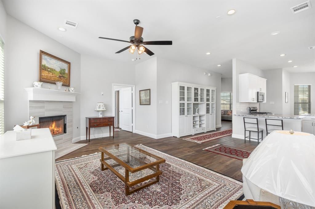 McKinney Gem in a Vibrant 55+ Community!Step into comfort and style with this beautifully maintained home featuring a welcoming front porch and smooth laminate wood flooring throughout. The light-filled kitchen boasts modern granite countertops, a gas range, and decorative lighting—perfect for everyday living and entertaining. The open-concept living area centers around a sleek, contemporary fireplace, creating a cozy yet modern ambiance.The spacious primary suite includes an ensuite bath with walk-in shower and built-in handicap bars for added safety and convenience. Enjoy peaceful views as the home backs to lush greenspace and scenic walking trails—ideal for morning strolls or evening relaxation.
