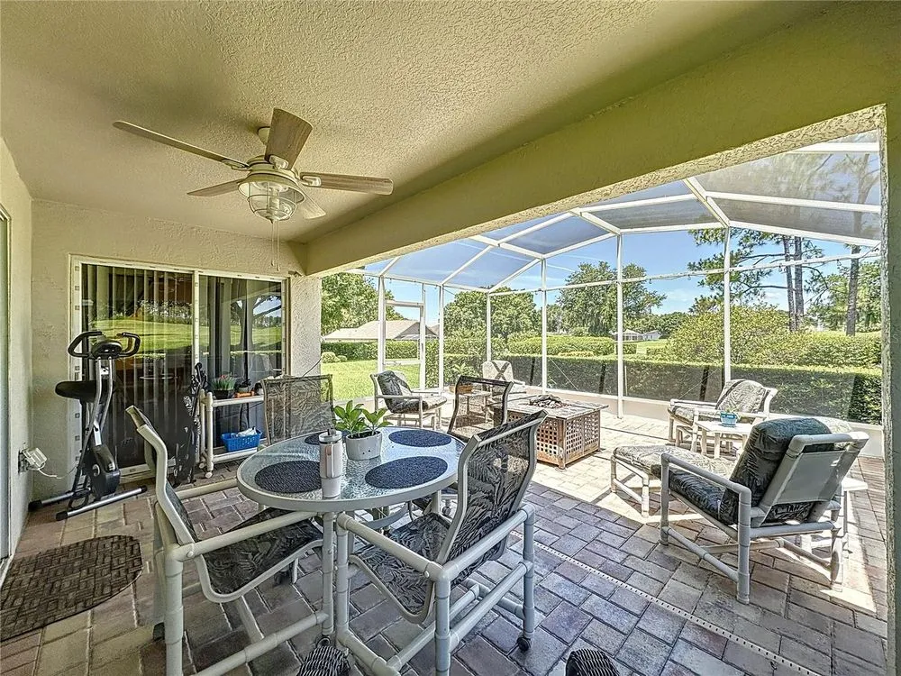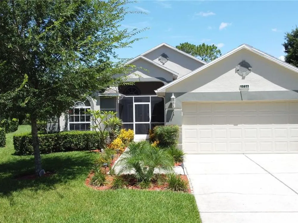 Price improvement of $5,000. Absolutely fantastic golf course lot in 55+ Kings Ridge. An Oxford model with large screen enclosure & has a very private back yard for a golf course home. Home has beautiful landscaping in front and back yard. One of the larger lots in Kings Ridge. There is a screened in front porch w/ paver bricks before you enter through the leaded glass front door. Home was built in 2001 and has 1745 heated Sf, 2 BD/ 2 BA with Den and an expanded 2 car garage. The kitchen has granite transformation countertops ,newer stainless appliances. and vinyl plank flooring. Vinyl plank flooring also in both bathrooms & foyer. The entire home was rewired with with 4 plugs instead of 2 in each outlet and upgraded lighting. New roof in June 2015, new water heater April 2021 and HVAC changeout in 2009. Separate laundry room with new washer & dryer that will remain. Custom window treatments in home & a designer chandelier. The back screen enclosure has a beautiful paver brick floor and great views when sitting out especially at sunset. The Seller is giving a full one year Home Warranty from Old Republic to the new Buyer. There is a transferable Stark termite bond on the home - was just renewed in May 2025. If you work from home this is the perfect house for you. The attic area has been professionally sealed to keep out pests. Home has Storm Stopper hurricane shutters. Some furniture may be available to purchase. Kings Ridge is a 55 Plus gated golf community located in the rolling hills of Clermont, FL. Enjoy the Royal life style in the multi-million $ clubhouse with 3 heated pools, spas, tennis & pickle ball courts, billiards, shuffle board, shows, Bingo, cards and clubs galore. The monthly maintenance fees include: Lawn maintenance including trimming of shrubs, care of irrigation system & irrigation water, TV and internet thru Opticaltel (FiberNow) maintenance of roads and outside painting of home every 7 years. Also they are a members of the clubhouse. Take your golf cart to the Kings Ridge Plaza where you can do your grocery shopping, banking or dine out. fully embrace the Florida lifestyle and make this beautiful home yours today!