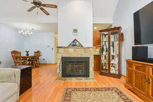 Welcome to Spring Lake Village! 1-bedroom, 1-bath ranch-style unit offers the perfect blend of comfort and convenience in one of the area's most sought-after 55+ communities. Step inside to an open floor plan featuring vaulted ceilings and brand-new skylights that flood the living area with natural light. The inviting gas fireplace creates a cozy focal point, while the front patio, located off the living room, provides a peaceful space to relax outdoors. The unit includes a new roof, a detached 1-car garage, and a spacious unfinished full basement with endless possibilities for storage or future customization. Spring Lake Village residents enjoy beautifully landscaped grounds, scenic walking trails, and a wealth of community amenities, including a pool, tennis courts, and bocce courts, perfect for an active and social lifestyle. Don't miss the opportunity to enjoy everything Spring Lake Village has to offer in this charming, move-in-ready ranch!