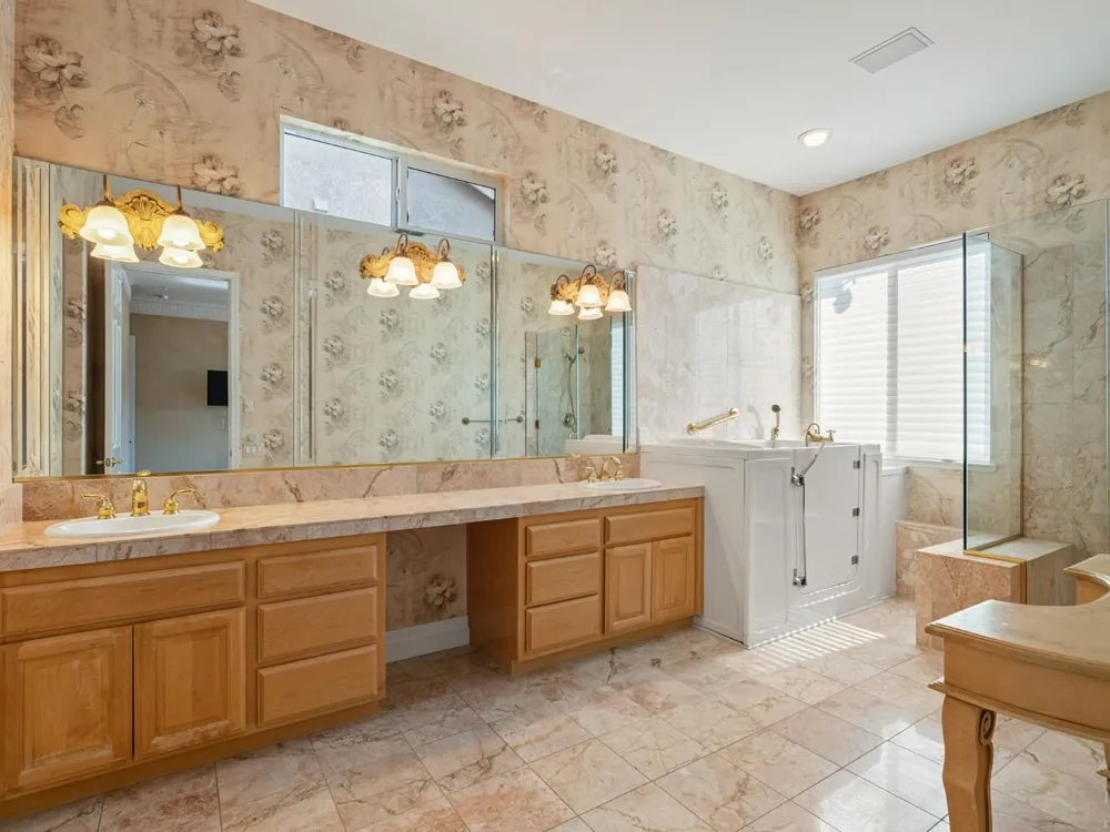 - Gas Cooktop, Ice Maker, Dishwasher, Disposal, Microwave, Double Oven