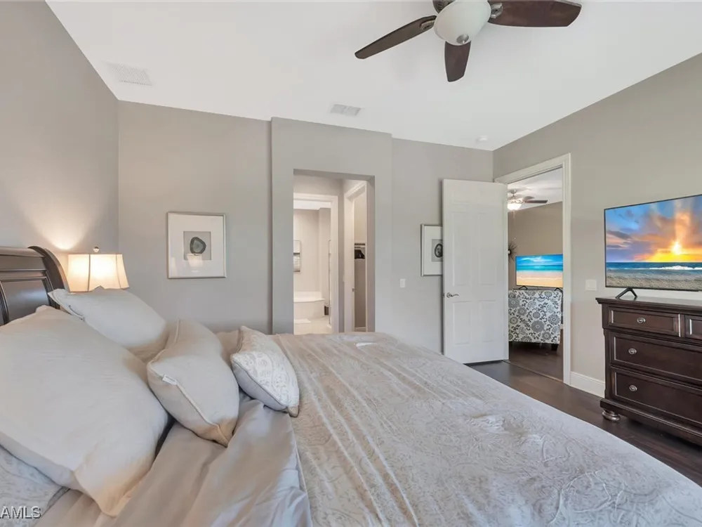 Ditch the cold. Live the dream. Trade gray skies and icy mornings for sunshine, palm trees, and a vibrant coastal lifestyle in Southwest Florida’s premier resort community—Fiddler’s Creek. This spacious, turnkey-furnished top-floor coach home with sweeping southern lake views offers the perfect blend of luxury, convenience, and smart investment potential. With over 3,000 sq. ft., this residence lives like a single-family home featuring 3 bedrooms, 3 full baths, and an attached 2-car garage. From the tile roof and paver driveway to the lush landscaping, every detail reflects Florida living at its finest. As a top-floor unit, you’ll love the soaring ceilings, abundant natural light, added privacy, and total peace and quiet—no footsteps or noise above you, just your private retreat in the sun. Step inside to bright, open living spaces perfect for relaxing or entertaining. The great room and formal dining area flow beautifully, while the kitchen offers natural gas stainless steel appliances, wood cabinetry, granite countertops, and a sunny bay-window breakfast nook. The expansive screened lanai becomes your personal outdoor oasis—ideal for morning coffee, evening cocktails, or soaking in the spectacular lake views year-round. The owner’s suite is a private haven with two walk-in closets, dual vanities, a soaking tub, and a walk-in shower. Two separate guest suites, each with its own full bath, are perfectly placed for privacy—one even has a private balcony so friends and family can fully enjoy their Florida visit. This home is truly turn-key—just bring your luggage and a toothbrush, and start living the good life. Life at Montreux in Fiddler’s Creek means resort living every single day, with endless opportunities to connect and unwind: 54,000 sq. ft. clubhouse with exciting 2025 updates Resort-style pool with waterfalls and slides Brand-new pickleball courts, plus active tennis and bocce leagues Fitness center with trainers and group classes Casual and fine dining, plus a vibrant social calendar filled with events and activities Optional golf, beach, and marina memberships let you customize your Florida lifestyle to the fullest. Conveniently located between Naples and Marco Island, you’ll be minutes from white-sand beaches, boutique shopping, world-class dining, nature preserves, and even an executive airport for quick getaways. With a newer roof, updated exterior paint and landscaping, and strong rental income potential, this home offers not only a warm-weather escape but also financial upside to offset ownership costs. Why just visit paradise when you can own it—and join a thriving social community that makes every day feel like vacation?