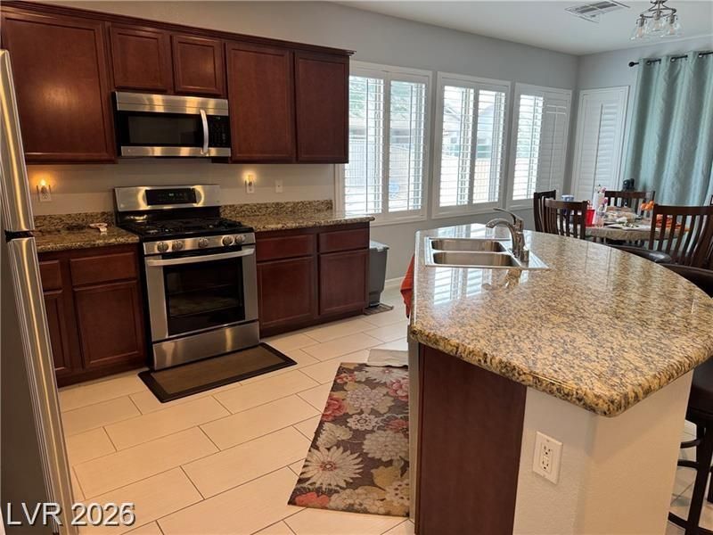 This immaculate single story, 3-bed, 2-bath home offers 1,585 sq ft of comfortable living in the highly desirable Ardiente 55+ gated community. Updated in 2017 w/fresh paint, stylish porcelain ceramic tile flooring and new stainless-steel appliances that complement the granite kitchen counters & beautiful shutters throughout. The home stays comfortable year-round thanks to a NEW HVAC SYSTEM INSTALLED in 2021. The spacious primary suite includes two walk-in closets and a comfortable bathroom with Kohler chair-height toilets. The backyard is low-maintenance and perfect for relaxing, with a covered patio that’s great for enjoying quiet desert evenings. Conveniently located near the VA hospital, this home also gives you access to the amazing community amenities—including a clubhouse, two pools and spa, fitness center, tennis, pickleball, basketball, bocce ball, billiards, a putting green, dog park, and plenty of fun social activities tailored for active adults.
