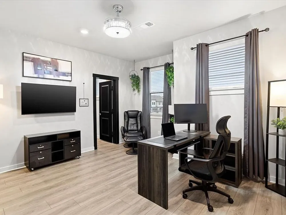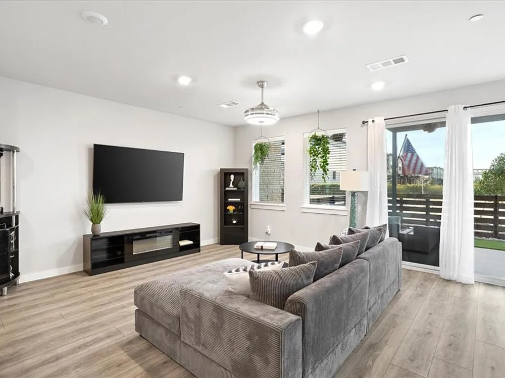 ASK ABOUT OUR $6K LENDER CREDIT WITH PREFERRED LENDER!! All TVs, Washer, Dryer, and Refrigerator are included!Welcome home to this charming and meticulously maintained two-bedroom, two-and-a-half-bathroom townhome in the highly sought-after Windsong Ranch community! Across the street from new, quarter-billion dollar Richland Hills High school, this stunning corner-unit offers 1,466 square feet of thoughtfully designed living space and natural lighting, blending modern elegance with cozy comfort. Step inside this bright and open floor plan that welcomes you with inviting atmosphere and charm. The spacious living area is perfect for relaxing or entertaining, while the gourmet kitchen boasts beautiful cabinetry with a sleek oversized center island, perfect for meal prep. The primary suite is a true luxury, featuring a spa-like ensuite bath and generous closet space. A well-appointed second bedroom and an additional full bath provide plenty of room for guests or a home office. The addition of the convenient half-bath adds an extra touch of functionality. Located in the vibrant Windsong Ranch community, this home offers resort-style amenities, including lush green spaces, stocked ponds, scenic walking trails, and access to the award-winning 5-acre lagoon, providing a one-of-a-kind lifestyle experience. With low-maintenance living and an unbeatable location, this home is perfect for those looking for a peaceful retreat without sacrificing modern conveniences. Come see it today and fall in love!