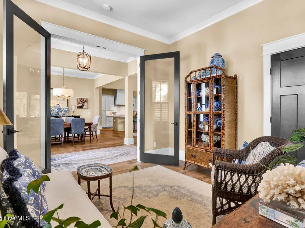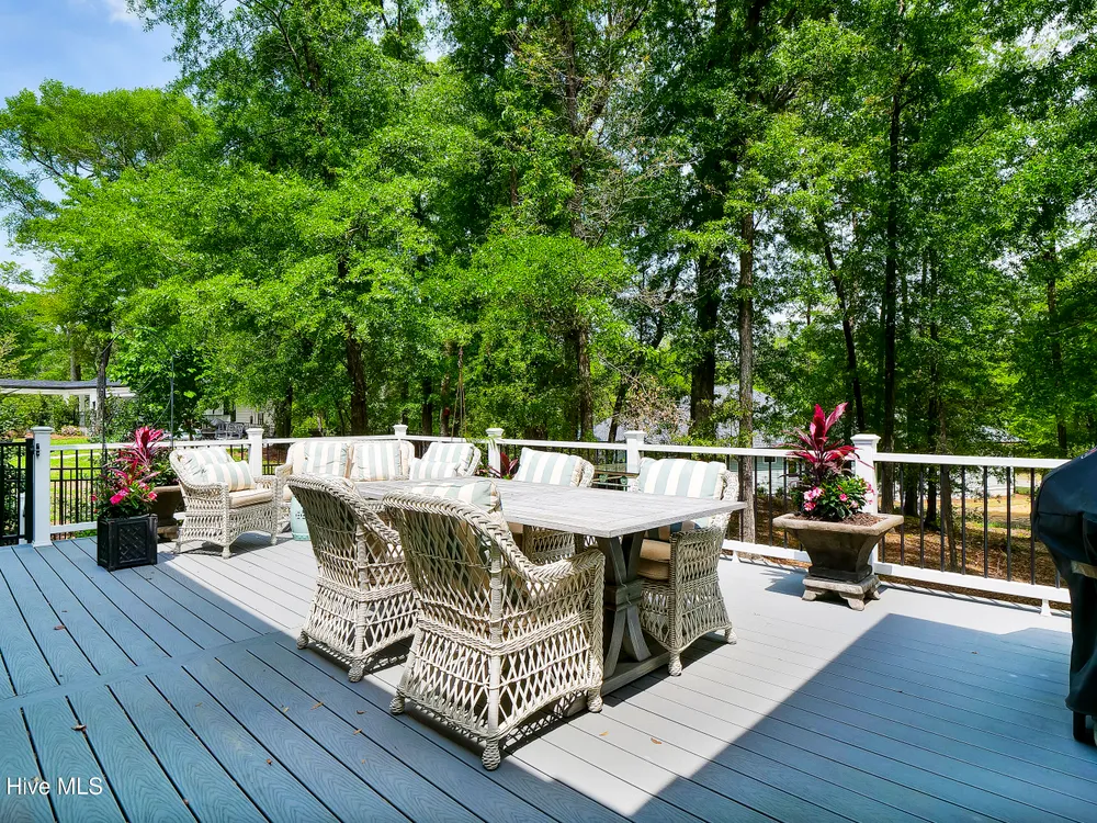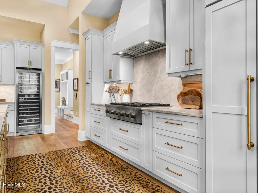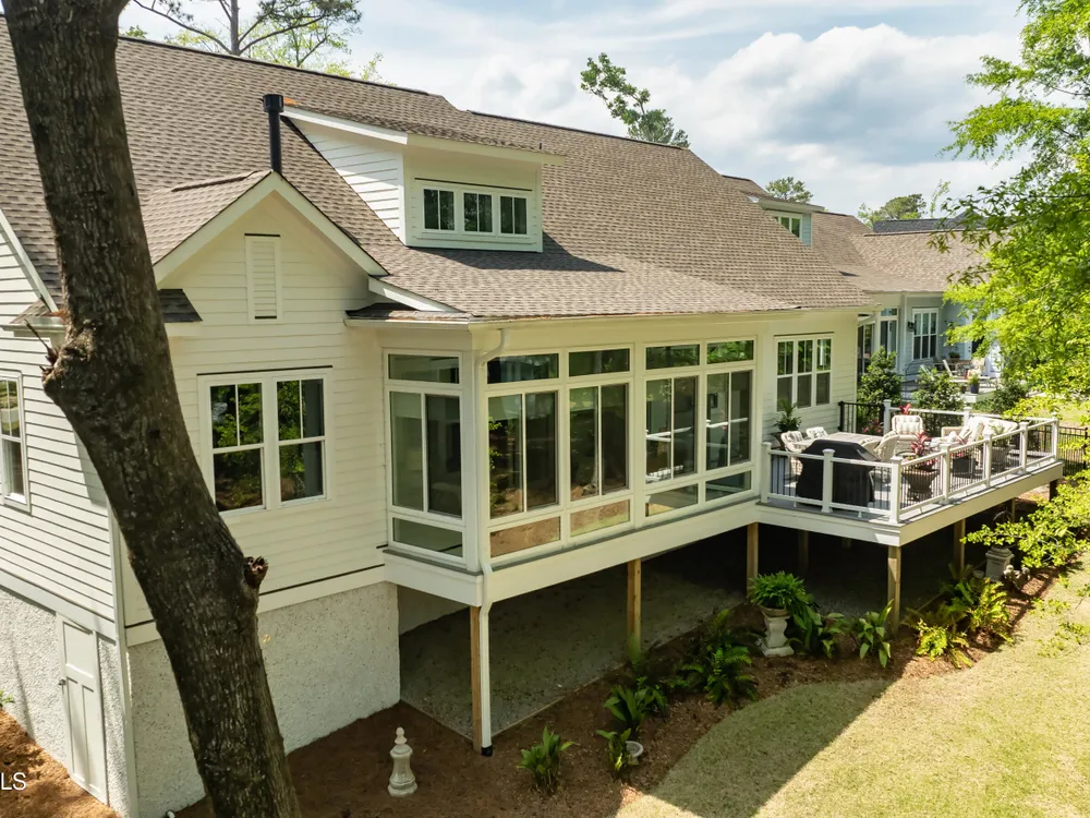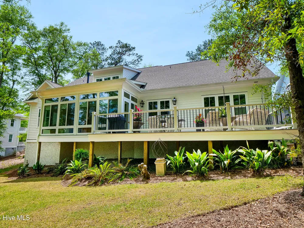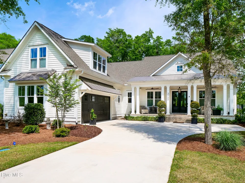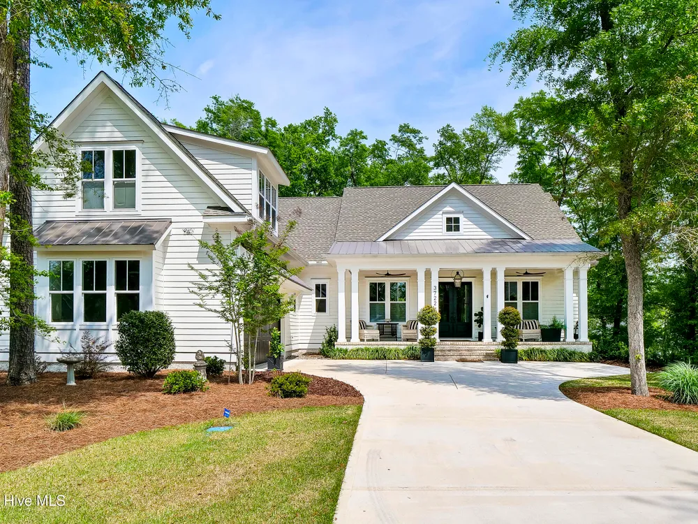 Like-new custom home built in 2023 by renowned Vahue Building, nestled deep within the most desirable & peaceful section of the riverfront community of River Bluffs. This meticulously maintained property offers thoughtful upgrades throughout, from tall ceilings & engineered wood flooring to elegant crown molding & chair rail accents. The heart of the home is a chef's dream: a gourmet kitchen designed by a nationally recognized kitchen designer featuring quartzite countertops, 6-burner natural gas range with hood, 5-option steam oven, abundant storage, & a spacious walk-in pantry. Enjoy seamless indoor-outdoor living with a bright sunroom (complete with remote-controlled shades) that opens to an oversized Trex deck--perfect for entertaining. Relax on the front porch while taking in breathtaking sunsets or unwind in the luxurious Primary Suite with a soaking tub & separate shower. Additional highlights include formal & informal eating & sitting areas, upgraded lighting, plantation shutters, copper roof accents, FROG with full bath--ideal for guests or multi-generational living, Rinnai on-demand hot water system, whole-house generator, encapsulated crawlspace with dehumidifier offering great storage. A study with built-in closet adds even more versatility in this mostly 1 level living home. Situated in one of River Bluffs' most desirable areas, enjoy top-tier community amenities including pools, fitness centers, half mile riverwalk, boat ramp, fire pit, clubhouse, community farm, boat/trailer storage, tennis, pickleball, basketball, dog park and vibrant social clubs. Residents especially love the abundant green space and plentiful trees in the neighborhood. This home offers timeless craftsmanship, thoughtful design, and the perfect blend of comfort & community. All this & only 15-20 minutes to premiere shopping & dining at Mayfaire & The Forum, Historic Downtown Wilmington, medical & the airport. A rare opportunity you won't want to miss. Boat slips available separately