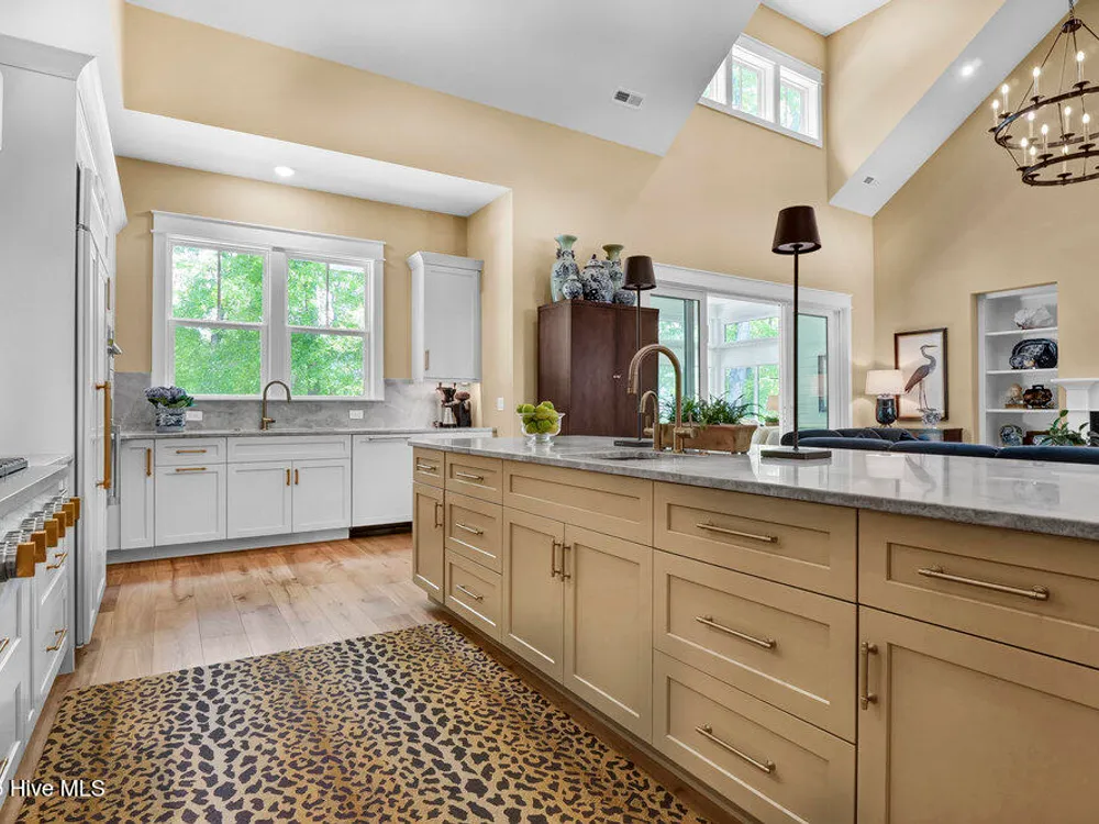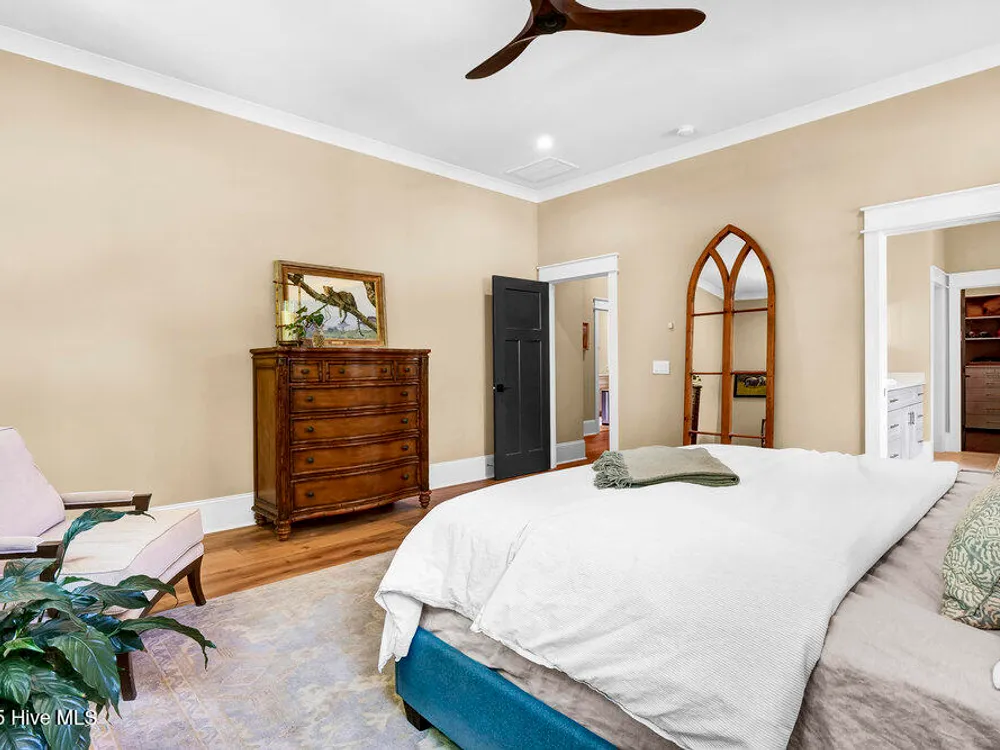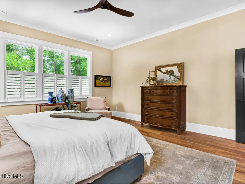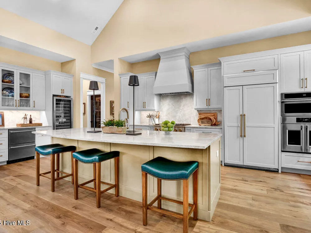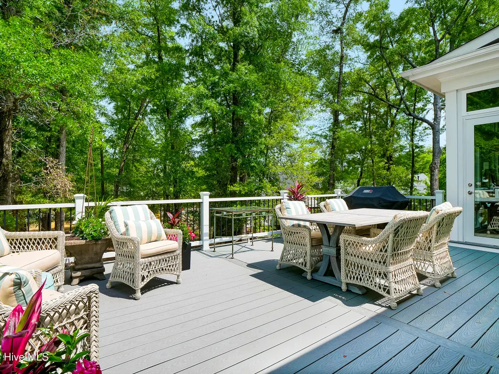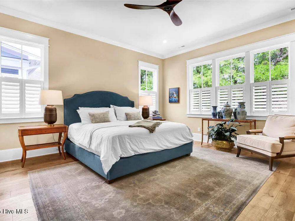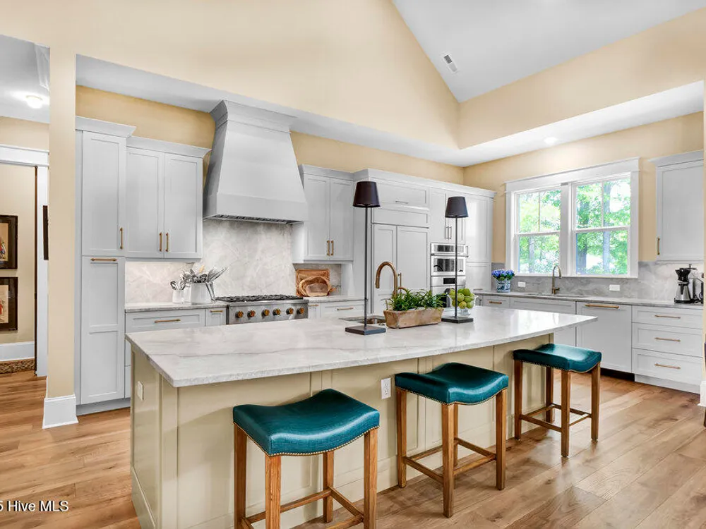 Like-new custom home built in 2023 by renowned Vahue Building, nestled deep within the most desirable & peaceful section of the riverfront community of River Bluffs. This meticulously maintained property offers thoughtful upgrades throughout, from tall ceilings & engineered wood flooring to elegant crown molding & chair rail accents. The heart of the home is a chef's dream: a gourmet kitchen designed by a nationally recognized kitchen designer featuring quartzite countertops, 6-burner natural gas range with hood, 5-option steam oven, abundant storage, & a spacious walk-in pantry. Enjoy seamless indoor-outdoor living with a bright sunroom (complete with remote-controlled shades) that opens to an oversized Trex deck--perfect for entertaining. Relax on the front porch while taking in breathtaking sunsets or unwind in the luxurious Primary Suite with a soaking tub & separate shower. Additional highlights include formal & informal eating & sitting areas, upgraded lighting, plantation shutters, copper roof accents, FROG with full bath--ideal for guests or multi-generational living, Rinnai on-demand hot water system, whole-house generator, encapsulated crawlspace with dehumidifier offering great storage. A study with built-in closet adds even more versatility in this mostly 1 level living home. Situated in one of River Bluffs' most desirable areas, enjoy top-tier community amenities including pools, fitness centers, half mile riverwalk, boat ramp, fire pit, clubhouse, community farm, boat/trailer storage, tennis, pickleball, basketball, dog park and vibrant social clubs. Residents especially love the abundant green space and plentiful trees in the neighborhood. This home offers timeless craftsmanship, thoughtful design, and the perfect blend of comfort & community. All this & only 15-20 minutes to premiere shopping & dining at Mayfaire & The Forum, Historic Downtown Wilmington, medical & the airport. A rare opportunity you won't want to miss. Boat slips available separately
