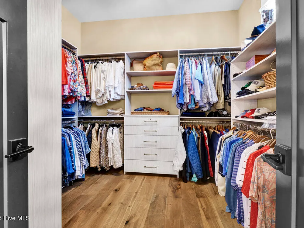 - Blinds/Shades, Solid Surface, Whole-Home Generator, Walk-In Closet(s), Walk-in Shower, Vaulted Ceiling(s), Pantry, Entrance Foyer, Master Downstairs, Kitchen Island, High Ceilings, Gas Log, Ceiling Fan(s), Bookcases