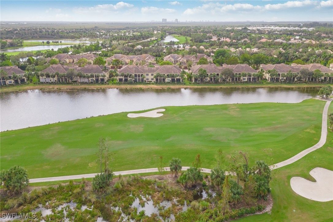 Experience refined living in this beautifully remodeled and furnished top-floor end-unit coach home, perfectly positioned with sweeping views of the Rookery golf course and sparkling lake in the award-winning community of Fiddler’s Creek. Encompassing over 3,000 square feet, this residence lives like a single-family home with three bedrooms, a den, three full baths and an attached two-car garage. The inviting exterior, with its tile roof, paver driveway and lush landscaping, opens to a private courtyard entry with soaring two-story ceilings. A private elevator and wrought-iron staircase lead to the main living level, where spacious, light-filled interiors await. The great room, formal dining space, and den with French doors blend seamlessly, while a custom cocktail room elevates the home’s entertainment appeal. Complete with a dramatic stacked stone feature wall, passthrough to the kitchen, breakfast bar, under-cabinet lighting, and beverage cooler, this one-of-a-kind space is ideal for hosting. The gourmet kitchen is appointed with stainless steel natural gas appliances, wood cabinetry, a pantry and a breakfast nook framed by bay windows. Flowing from here, the family room opens to a screened lanai with generous space for lounging and dining while enjoying uninterrupted views of the water and golf course. The serene owner’s suite offers two walk-in closets and a newly remodeled spa bath with a floating dual vanity, custom mirrors, under-lighting and a frameless walk-in shower. Two spacious guest suites each feature private baths for family and visitors alike, with one guest room offering a beautiful balcony. Additional highlights include plantation shutters, a well-appointed laundry room and built-in shelving in the garage. This luxury condominium is located in the Montreux village, with convenient access to the award-winning Fiddler’s Creek amenities: a stunning 54,000-square-foot clubhouse with new updates in 2025, a resort-style pool with waterfalls and slides, a fitness center with trainers and classes, very active tennis and pickleball programs with brand new pickleball courts in 2025, clinics and leagues, bocce, sauna, a steam room, casual and fine pool-side dining, and an activity and event calendar with something for everyone. Immediate golf memberships are available with a spectacular new clubhouse and recently renovated championship course, along with optional beach and marina memberships for the ultimate Southwest Florida lifestyle. Miles of sidewalks offer excellent space for jogging, walking and bicycling, surrounded by gorgeous landscape and fountains, all within the gates. Perfectly situated between Naples and Marco Island, this home offers unmatched convenience near pristine beaches, dining, boutiques, grocery shopping, parks, the executive airport and nature preserves. With the brand-new exterior paint, a newer roof, new landscaping and CDD bond paid in full, this remarkable property combines elegance, privacy and peace of mind.