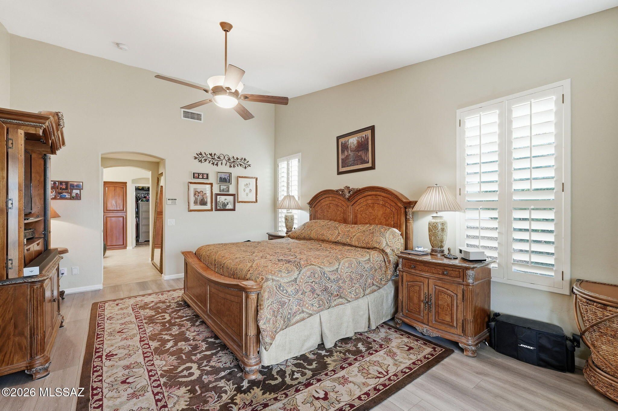 - Ceiling Fan(s), High Ceilings, Primary Downstairs, Split Bedrooms, Walk-In Closet(s)