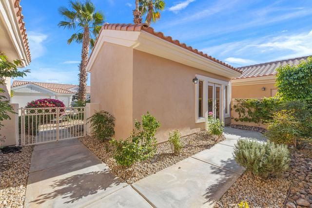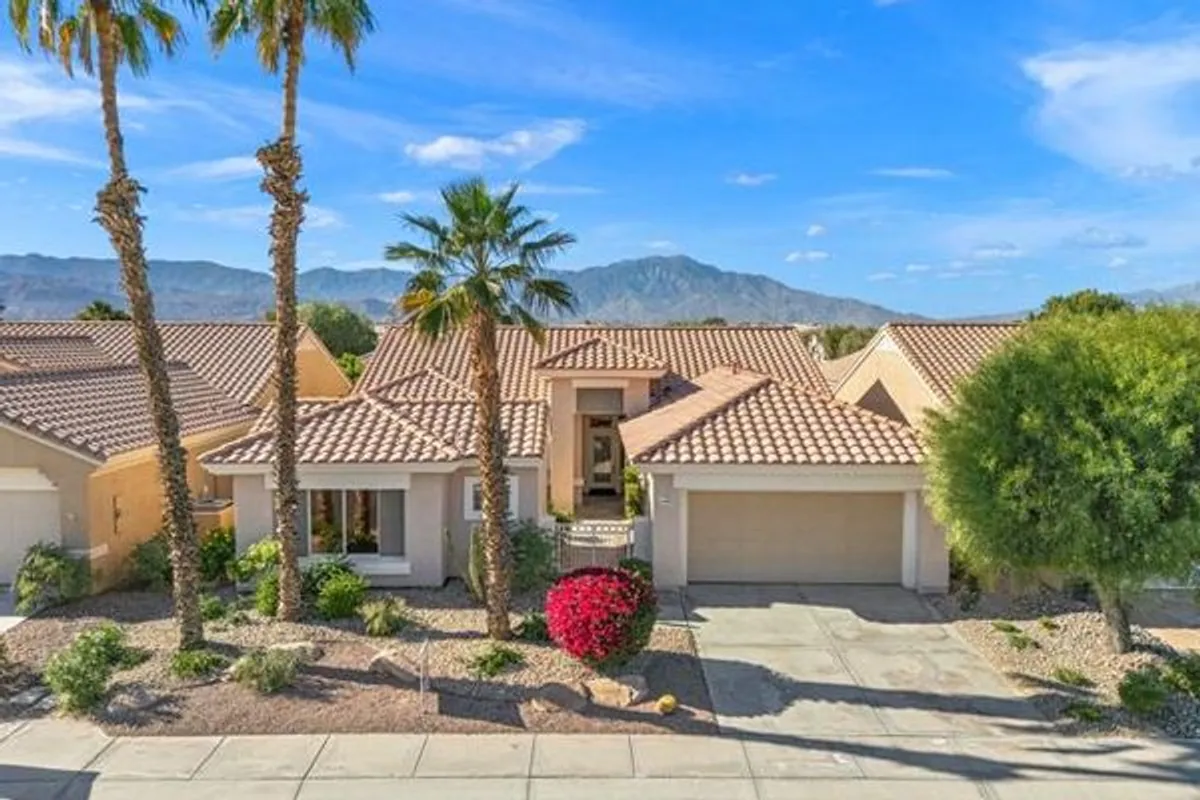 SNEAK PEAK BEFORE PROFESSIONAL PHOTOS. Located in the best 55+ community in the valley, Sun City Palm Desert, the Morocco is one of the most popular. It has 2 bedroms 2 baths and a den in the main house and a 1 bedroom, 1 bath in the CASITA. The kitchen has Corian counters, fresh white cabinets, a center island, and a kitchenette. The dining and living rooms, and den are open, and it all views out to the beautiful the west facing backyard. The master bedroom has a bay window, viewing the lush desert landscaping and has a fabulous bathroom with a dual vanity, private toilet room, walk in closet, and a walk in shower. The guest bedroom is inviting and is adjacent to the 2nd full bath with a custon remodeled shower. The carpet has been replaced with contemporary luxury vinyl flooring. The detached Casita has a mini kitchen, full bath and is perfect for guests, an office, or caregiver. The 2 car garage has a nook for a golf cart, a NEW hot water tank a NEW HVAC SYSTEM for the home, and a separate A/C for the casita. This is a great home with a rare casita, ready for you.