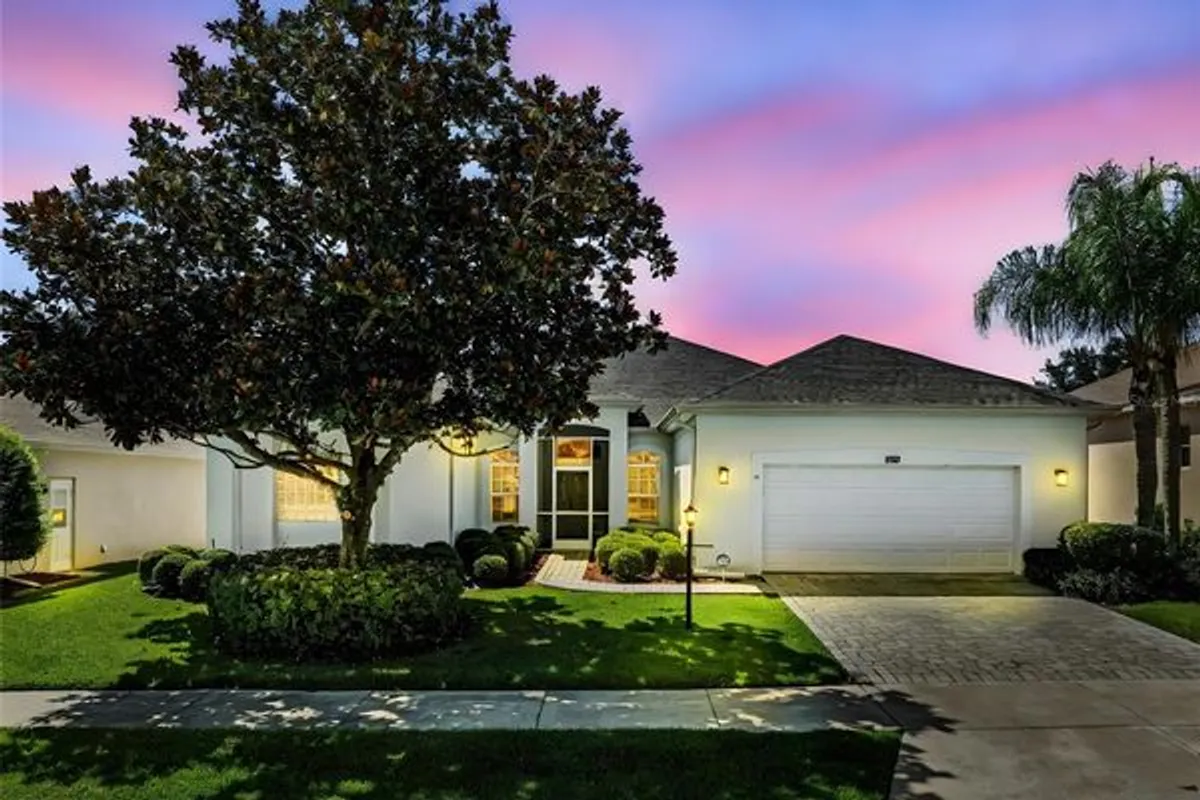 One or more photo(s) has been virtually staged. PRICE IMPROVEMENT — POOL HOME in sunny Florida! Downsize without downsizing in this beautifully maintained 3-bed, 2-bath split plan with a separate study/flex room. The open layout lives large and centers on a cook’s-dream kitchen with abundant cabinets, generous countertop space, under-cabinet lighting, neutral appliances, and a new dishwasher. A clever conversion turned the half bath into an extra-large pantry—premium storage just steps from the kitchen. Convenient inside laundry offers upgraded washer/dryer, a laundry sink, and added cabinetry. The oversized owner’s suite is a true retreat with two large walk-in closets and a spa-style ensuite featuring dual vanities, a step-in shower, private water closet, and a luxurious walk-in tub. The split bedroom design provides privacy for guests, while the study/flex space (no closet) is perfect for a home office, hobby room, or den. Step outside to a huge enclosed lanai that extends your living space and overlooks an expansive screened-in pool with a large deck—ideal for entertaining, sunning, gardening, or game-day gatherings. Established landscaping enhances curb appeal and privacy. Major updates: ROOF (2022), AC (2023), Water Heater (2023) for peace of mind. Located in Plantation at Leesburg, a premier 55+ community with golf, tennis, pickleball, three clubhouses, pools, fitness, and a full calendar of activities. New price positions this home as one of the best values for space, updates, and lifestyle—schedule your showing today!