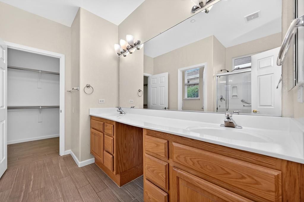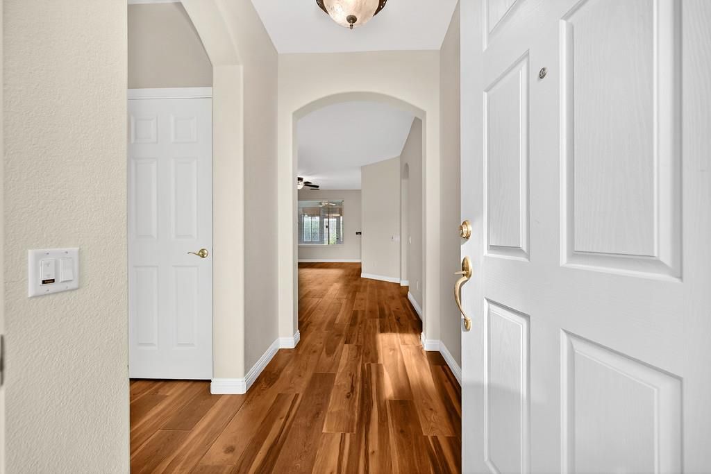 Welcome to Springfield at Whitney Oaks, an exclusive gated 55+ active adult community in the heart of Rocklin. This highly sought-after neighborhood offers true resort-style living, featuring two clubhouses, pickleball and tennis courts, multiple pools and fitness centers, scenic walking trails, a library, bocce courts, billiards room, arts and crafts spaces, card rooms, a spa, and an impressive calendar of clubs and social activities. This beautifully maintained home is the highly prized Hopkins model, showcasing newer wide-plank luxury vinyl plank flooring blending a contemporary look with timeless warmth. The bright and welcoming great-room floor plan features a cozy fireplace and an open kitchen with a convenient dining bar, perfect for both everyday living and entertaining. Enjoy year-round relaxation in the large covered patio, thoughtfully enclosed with windows to create an inviting indoor-outdoor living space. The spacious primary suite is a true retreat, offering a large bathroom with dual sinks, an oversized step-in shower with bench seating, a vanity area, and a generous walk-in closet. A private office or craft space adds flexibility, while the remote second bedroom ensures maximum privacy for guests. Step outside to a peaceful backyard garden adorned with beautiful rose bushes and a charming sitting area, ideal for quiet mornings or evening unwinding. Whether you choose to immerse yourself in the vibrant community lifestyle or simply relax in the comfort of your stunning home, this property truly offers the best of both worlds. World Class Golf is just around the corner at Whitney Oaks.