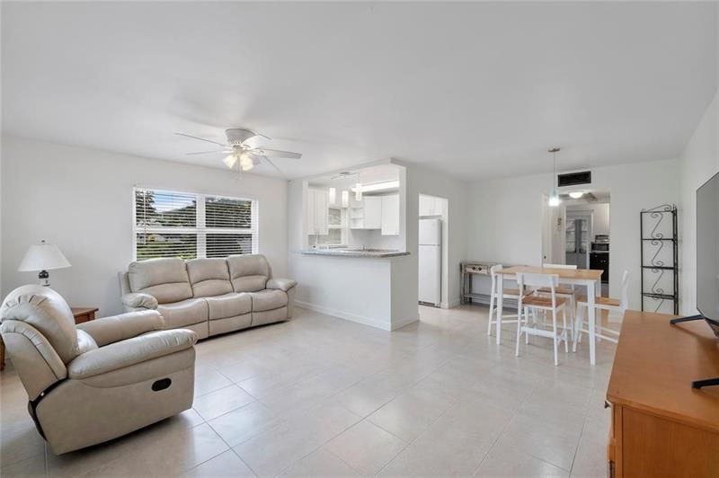 First-floor 1BR/1.5BA corner unit in Century Village's active 55+ community. Features **CENTRAL AIR**, impact windows and doors, updated kitchen and baths, fresh paint, and a peaceful garden-view patio. Corner location offers extra privacy and natural light. Turnkey, furnished, and move-in ready. Conveniently located close to the Le Club Activity Center. This community offers resort-style living with multiple outdoor pools, Olympic-sized indoor pool, recreation and fitness centers, tennis, bocce ball, luxury theater, movies, café, billiards, shuffleboard, classes, sauna, free bus transportation, and more! Tilford R is a cash-only building. Enjoy low-maintenance living in the heart of Deerfield Beach! No Leasing. 700 credit score req. AC & HWH 2016. Roof 2024