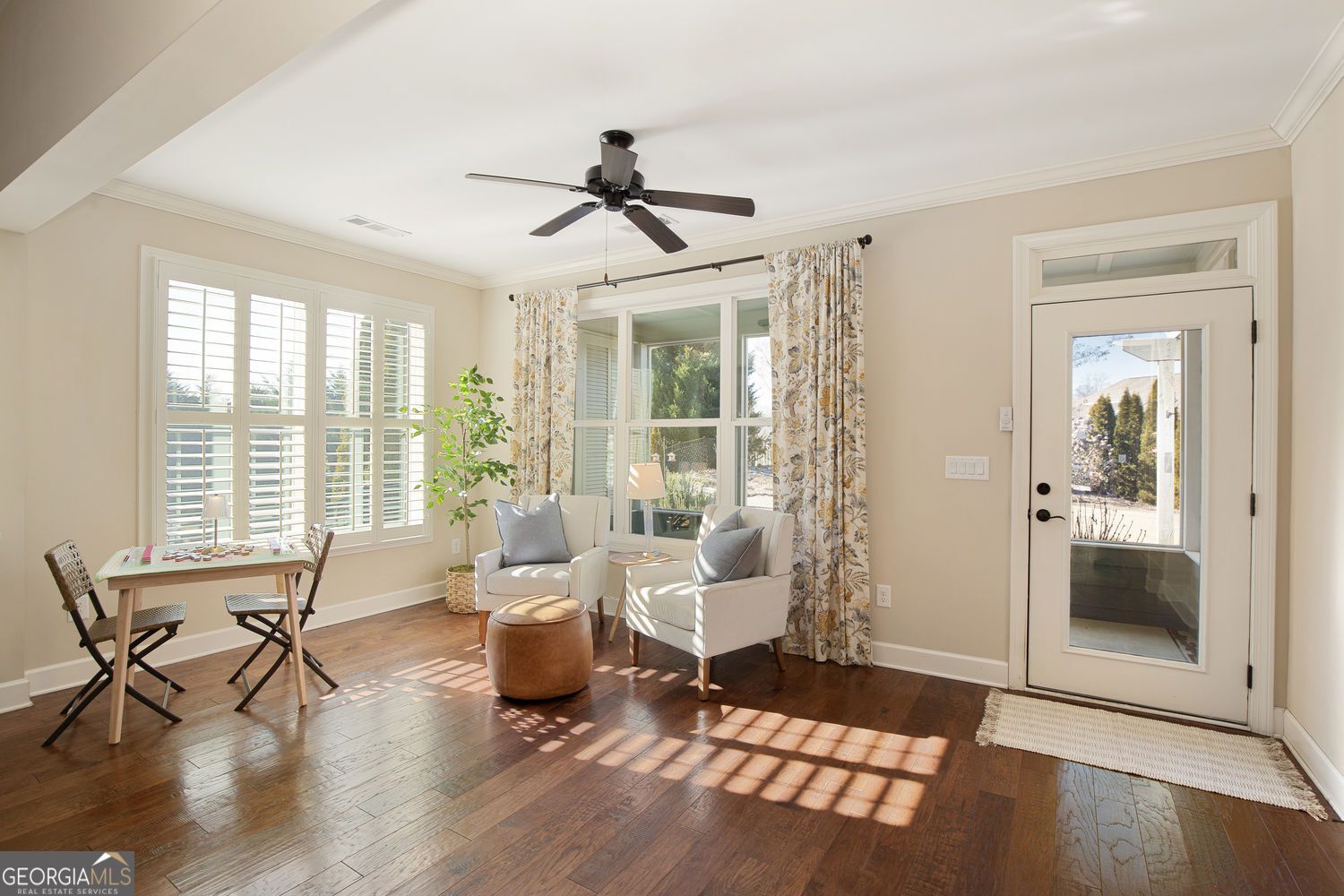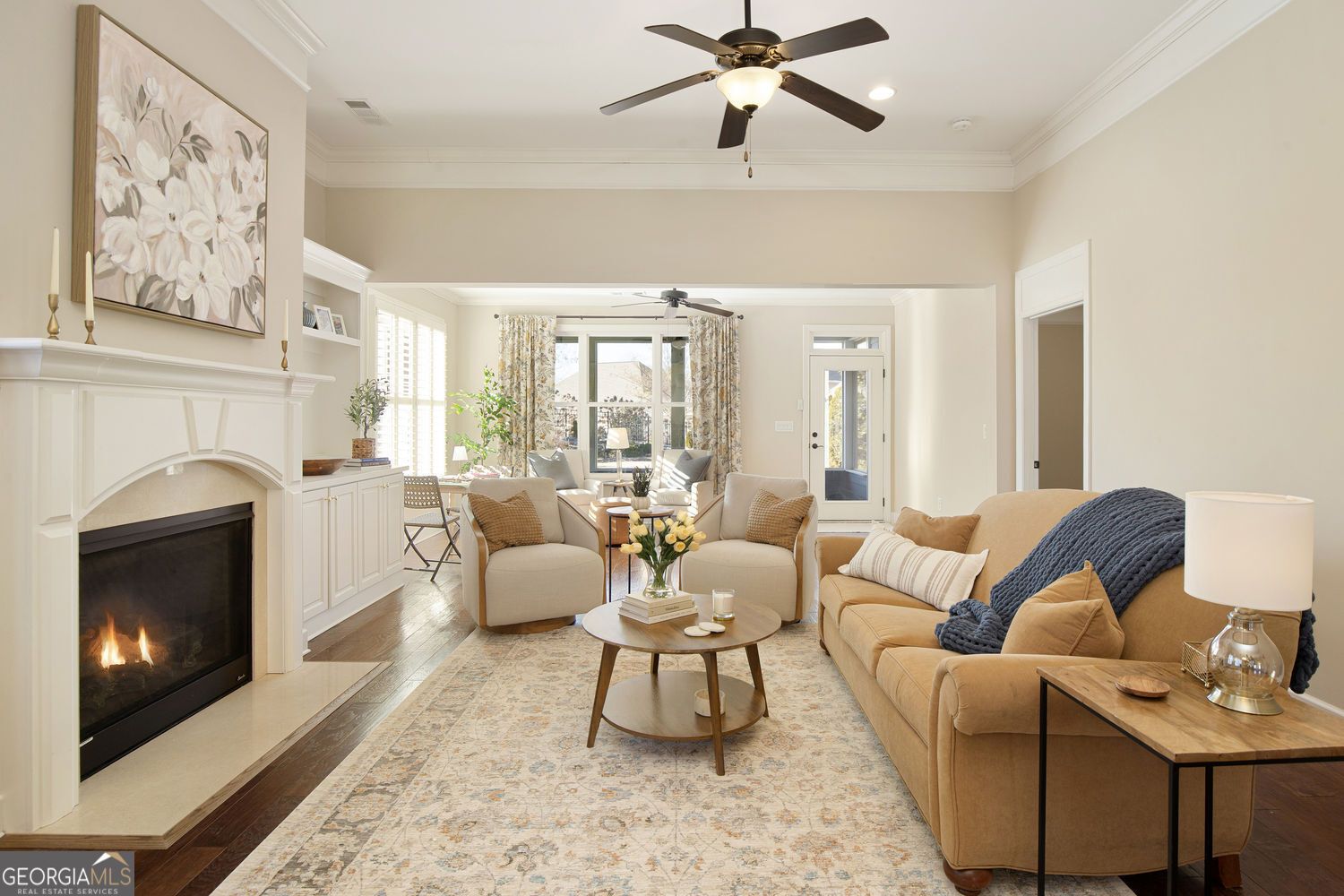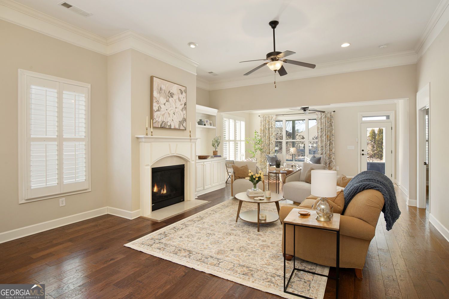 Welcome home to a place where every day feels intentional, social, and beautifully lived. This inviting home offers a premier 55+ active adult lifestyle in the award-winning Cresswind at Lake Lanier. Quietly positioned on a private cul-de-sac street, it sits on an exceptional lot featuring an oversized backyard with a screened porch and pergola, along with a neighboring park-like sitting area that enhances the sense of space and serenity. Inside, hardwood floors throughout are complemented by elegant crown molding, custom built-in bookshelves, and plantation shutters that fill the home with natural light. Impeccably maintained and recently updated with both interior and exterior paint, the home feels bright, polished, and welcoming. Anchored by a cozy fireplace, the open-concept living space invites easy gatherings with family, friends, and neighbors. The thoughtfully expanded family room provides additional space that flows beautifully for entertaining, whether hosting holidays, casual get-togethers, card games, or mahjong nights. The kitchen is designed for connection, featuring upgraded stainless steel appliances, a generous island, and a sunny breakfast nook. With plenty of room to add island seating, it's easy to imagine lingering mornings over coffee and evenings filled with conversation as guests naturally gather. The main level offers outstanding flexibility with a dedicated room ideal for a guest suite, along with a separate office-perfect for hosting visitors, working from home, or pursuing hobbies while enjoying the ease of one-level living. The primary suite serves as a peaceful retreat, complete with double vanities, a dedicated makeup vanity with sitting area, and a beautifully appointed walk-in tiled shower. Upstairs, a nearly completed bonus room with a closet offers exceptional versatility as a guest retreat, home office, creative studio, or hobby room. Approximately 90 percent complete, it's ready for your finishing touches to truly make it your own. Previously cared for by a Master Gardener, the landscaping is lush, thoughtful, and impeccably maintained. The screened porch and pergola-covered patio invite peaceful mornings, relaxing evenings, and effortless outdoor living-whether gardening, entertaining, or simply unwinding in your own private retreat. Life at Cresswind at Lake Lanier is rich with opportunity and connection. Community amenities include resort-style indoor and outdoor pools, a state-of-the-art fitness center, pickleball and tennis courts, and dedicated spaces for arts, crafts, games, and social clubs. With more than 120 resident-led clubs and activities, there is truly something for everyone, from fitness and dance classes to cards, billiards, music, performances, concerts, and social events. Gardening enthusiasts will appreciate active gardening groups and beautifully maintained common areas, while outdoor lovers enjoy easy access to Lake Lanier for kayaking, fishing, and courtesy boat docks just moments away. An on-site activities director, along with professional property management and maintenance teams, ensures everything runs seamlessly. Best of all, Cresswind is known for its warm, welcoming atmosphere-where neighbors quickly become friends and newcomers are genuinely encouraged to connect and feel at home. This is the kind of home and community people hope to find but rarely do, where days feel full, friendships come easily, and life feels exactly the way it should. Come experience it for yourself and see why so many choose to call Cresswind at Lake Lanier home.