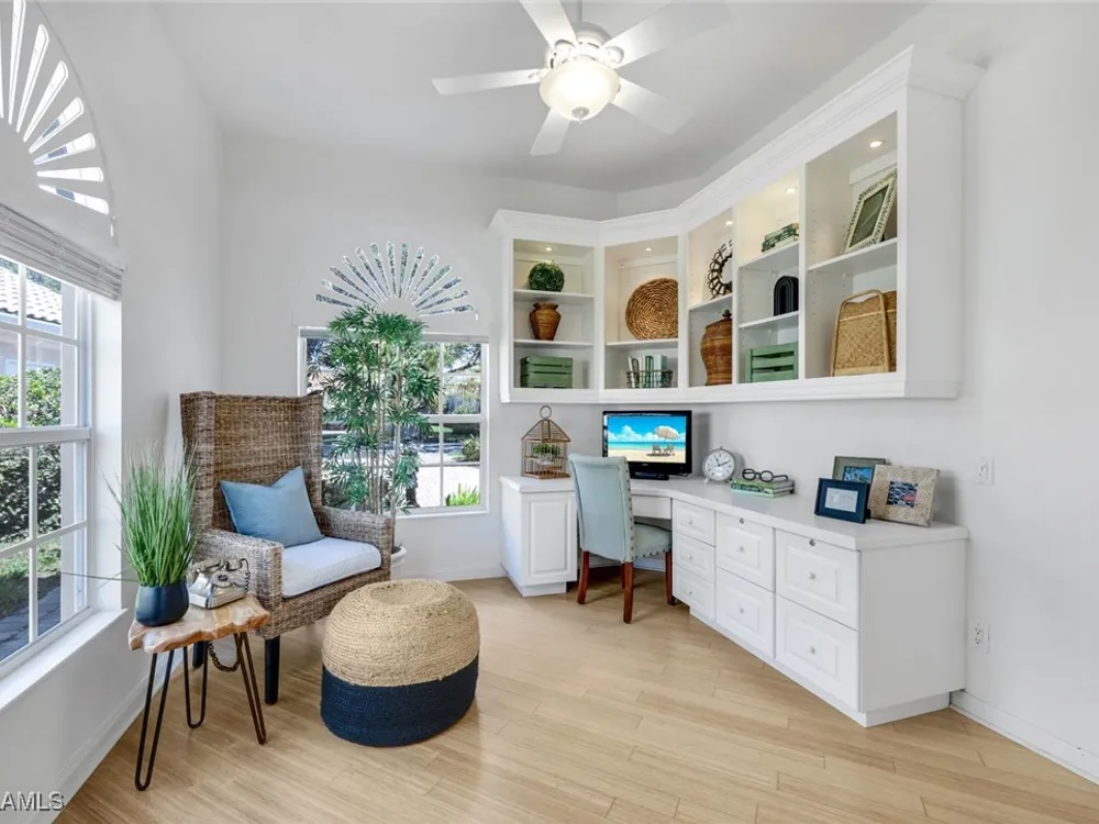 This is the one you’ve been waiting for! The sought-after Extended Oakmont model in Island Walk offers 2,181 sq. ft. of stylish, low-maintenance living that checks all the boxes. Enjoy peace of mind in this barely-lived-in poured concrete DiVosta home with a new AC (2024), newer roof (2022), newer pool heater (2022), and relax by your private pool overlooking a western-facing lake view—the perfect backdrop for Naples sunsets. Inside, you’ll find freshly painted interiors, soaring ceilings, 3 bedrooms plus a cozy den with beautiful built-in office, and 2.5 baths, along with a side-load 2-car garage with refinished flooring. Step outside and you’re just minutes from the vibrant Island Walk Town Center with its recently renovated clubhouse (no special assessments!), lap-and resort-style pools, tennis, pickleball, bocce, fitness center, award winning restaurant, gas station, car wash, post office, and salon services. Basic cable, WiFi, lawn care, irrigation water and exterior pest control are all included in your HOA for easy living. Best of all, you’re just a short drive to world-class shopping, dining, and the white-sand beaches of Naples.