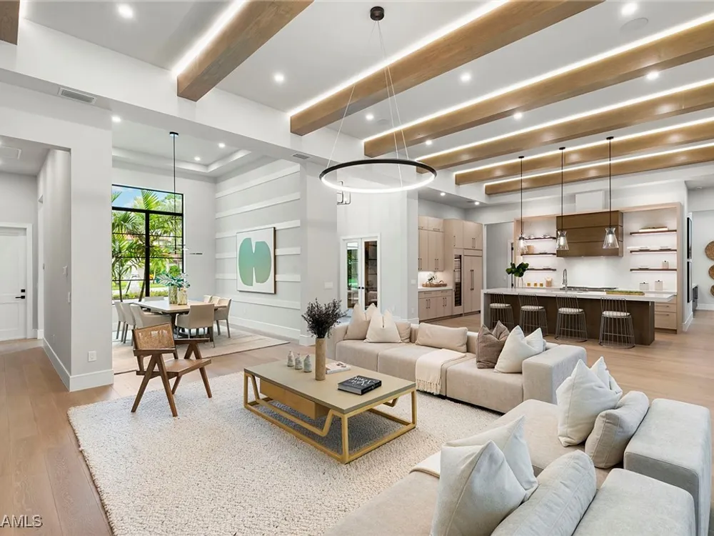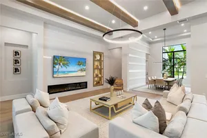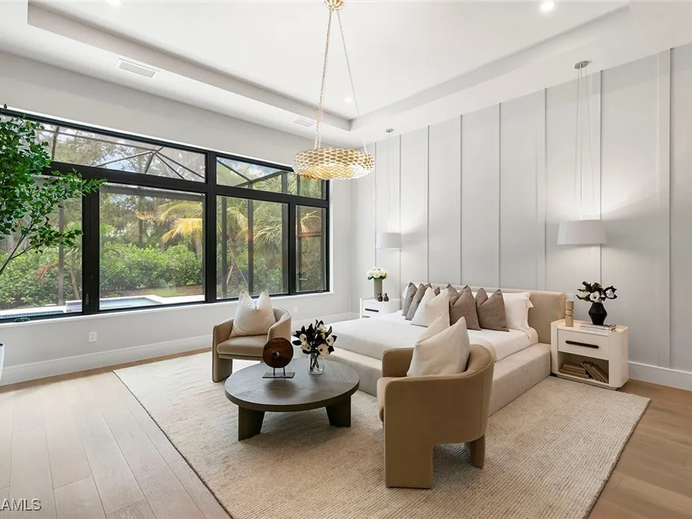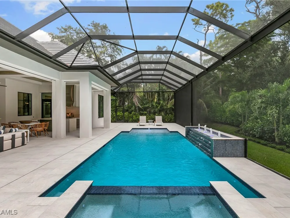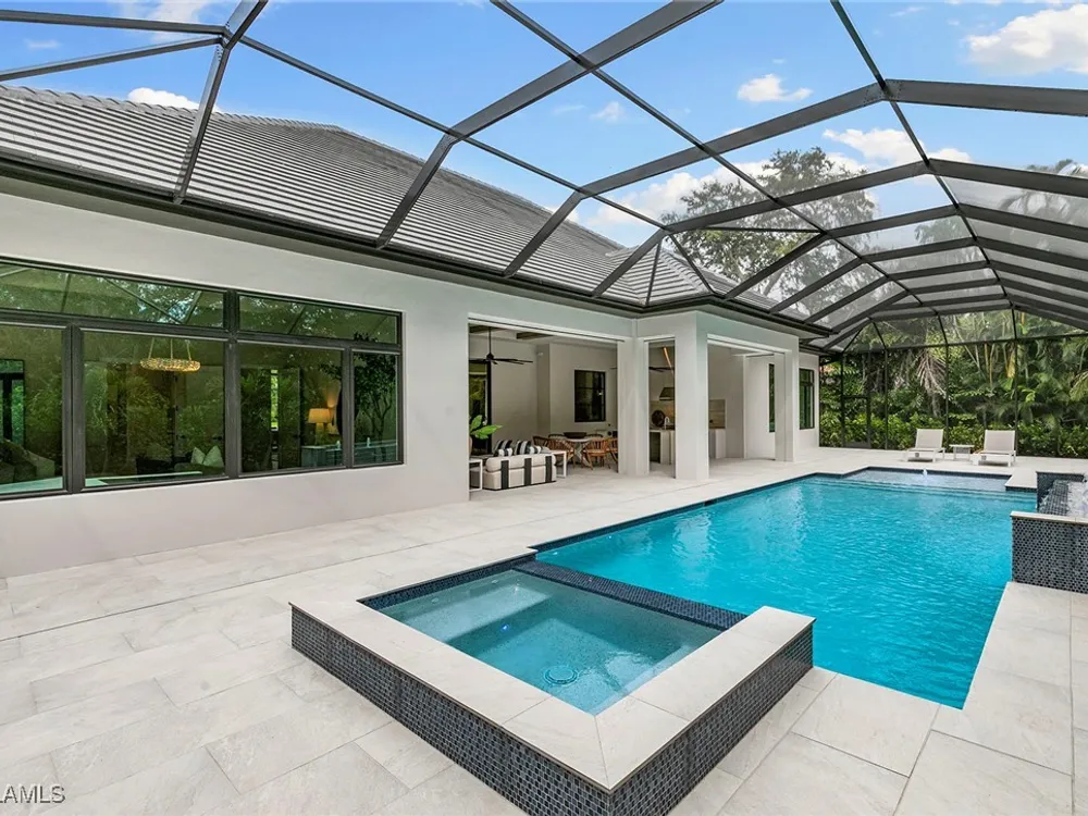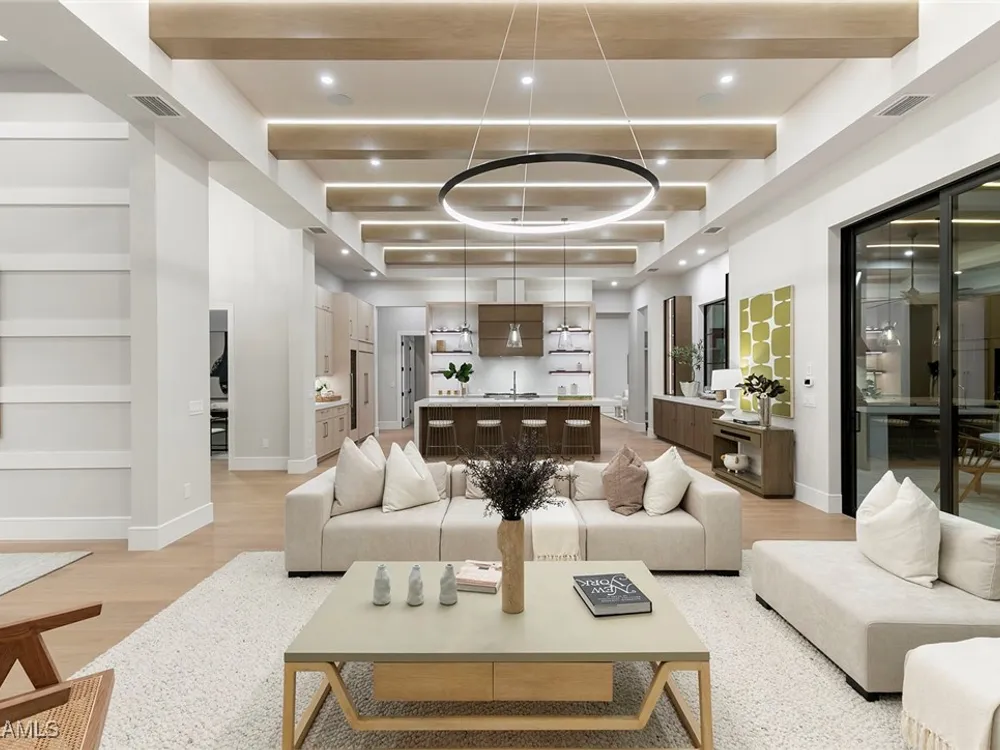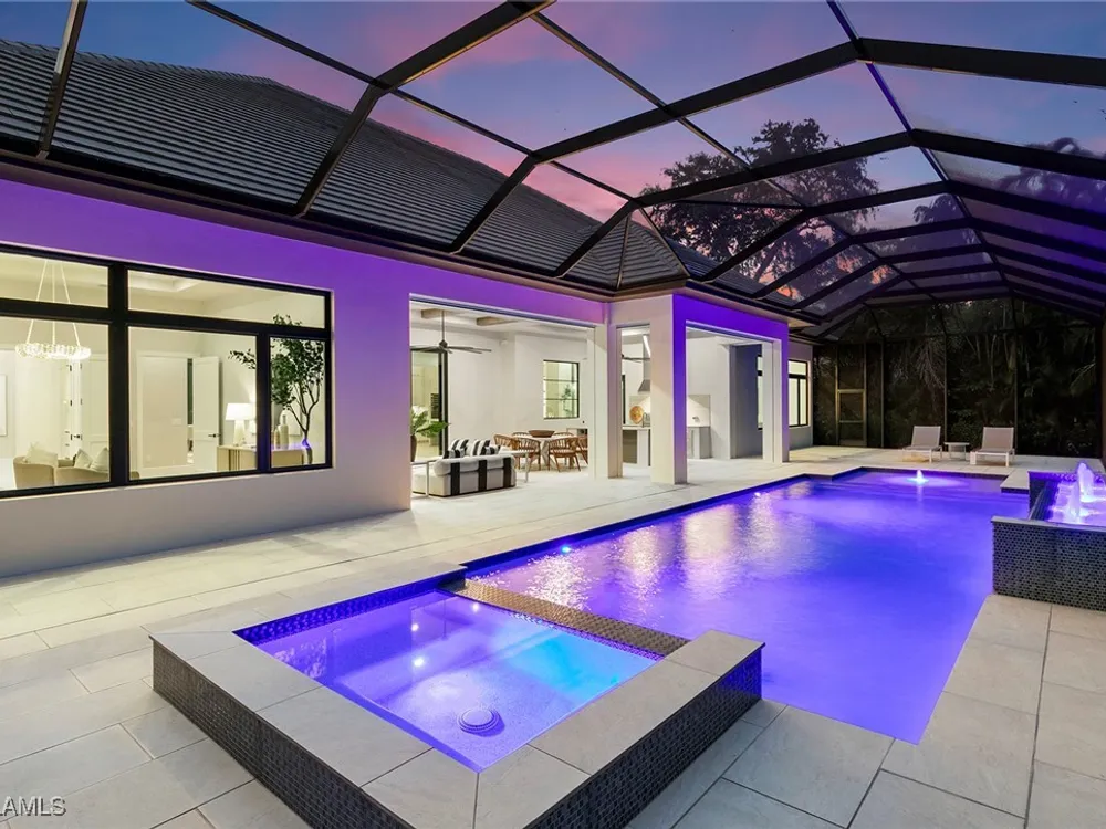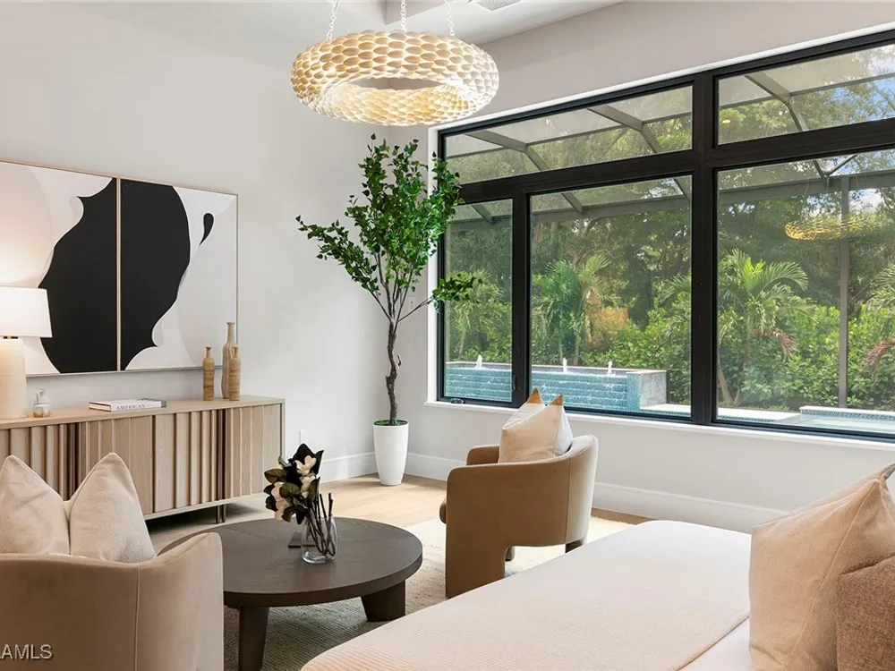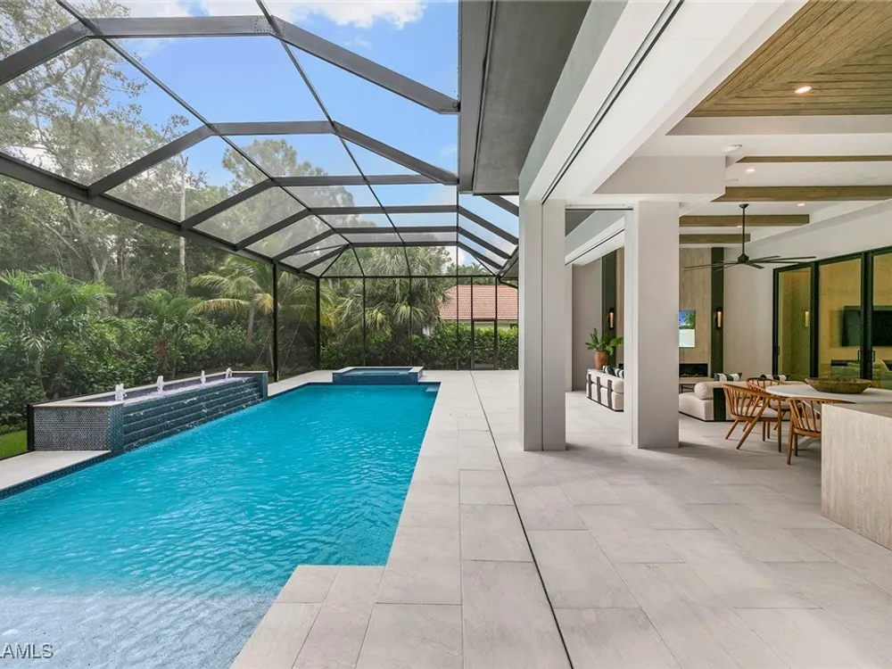 Welcome to a rare opportunity in Bonita Bay – a brand-new custom home by Imperial Homes of Naples in the intimate Woodlake neighborhood. Designed for those who want luxury without excess, this thoughtfully scaled residence delivers exceptional craftsmanship at a more approachable price point than larger golf course estates. Featuring wide-plank wood floors, soaring custom ceilings and a chef's kitchen with top-tier finishes, every detail reflects timeless craftsmanship. The open living room is complemented by a spacious game/flex room, creating a second gathering space ideal for entertaining family and friends. The baths showcase high-end designer touches, and the tranquil primary suite offers a spa-like retreat. Step outside to a private tropical oasis where a sparkling pool is framed by lush landscaping, ensuring every window captures vibrant greenery and privacy. The interior lot location provides peace, seclusion and the best of Bonita Bay living without the premium of a golf or lakefront setting. It even features a secure package delivery room in the garage. Enjoy all the amenities of Bonita Bay including five golf courses (with private membership), a marina with restaurant in the neighborhood, miles of walking trails, a fishing pier, a private beach park with shuttle service, and more, all within one of Southwest Florida's most sought-after communities.
