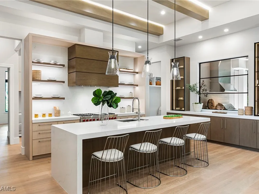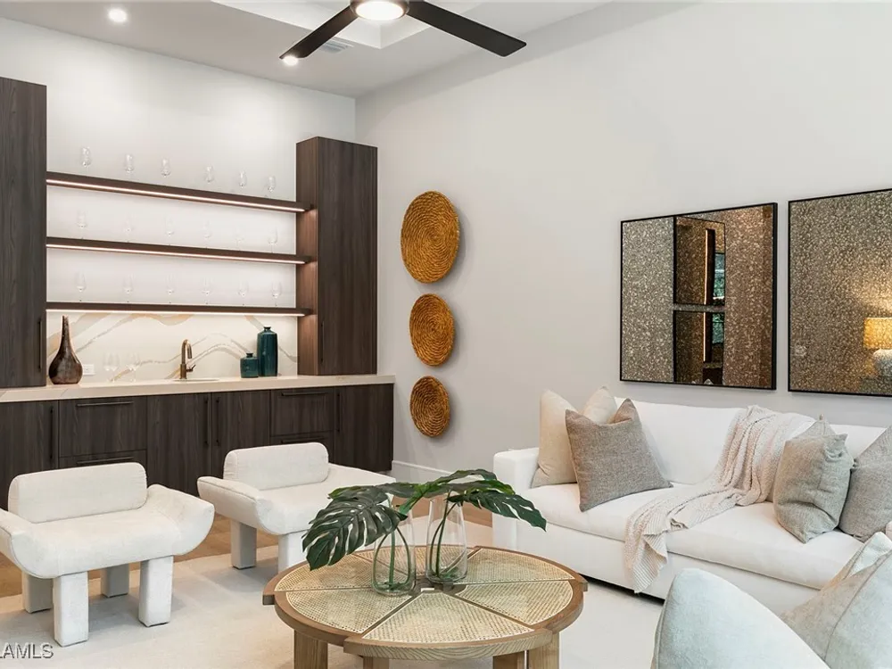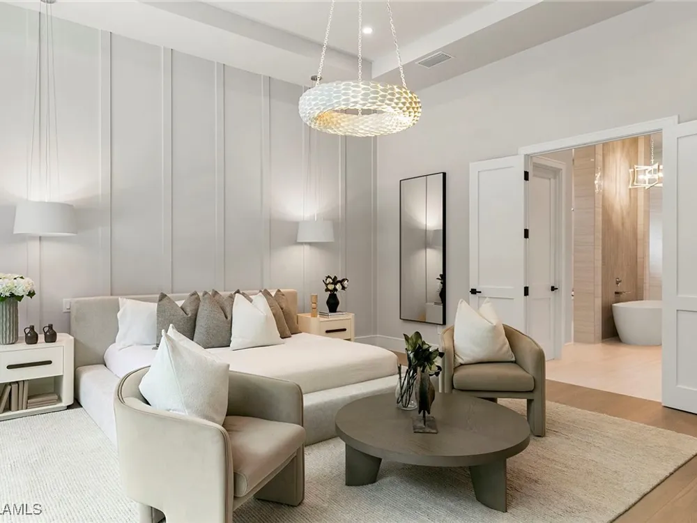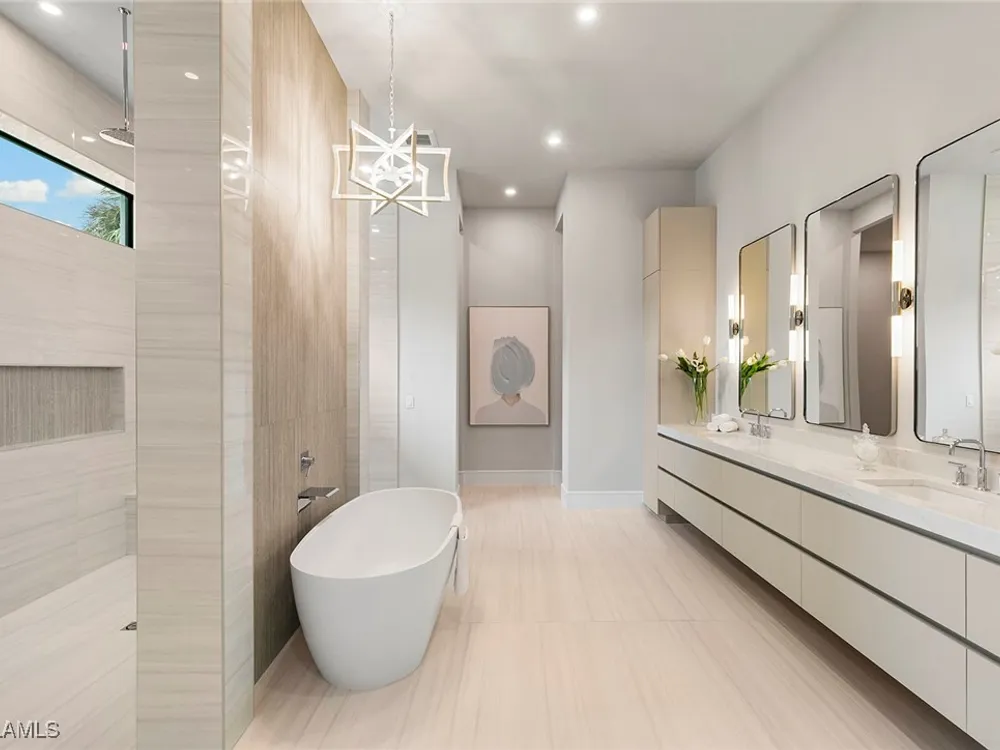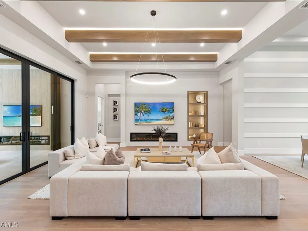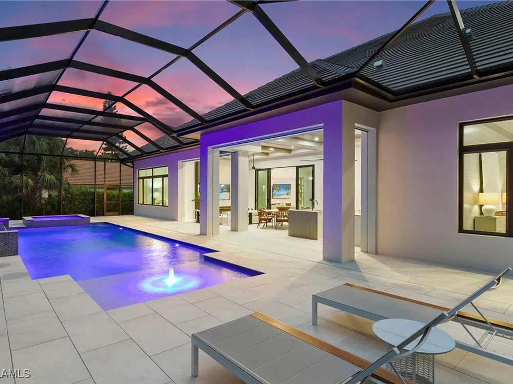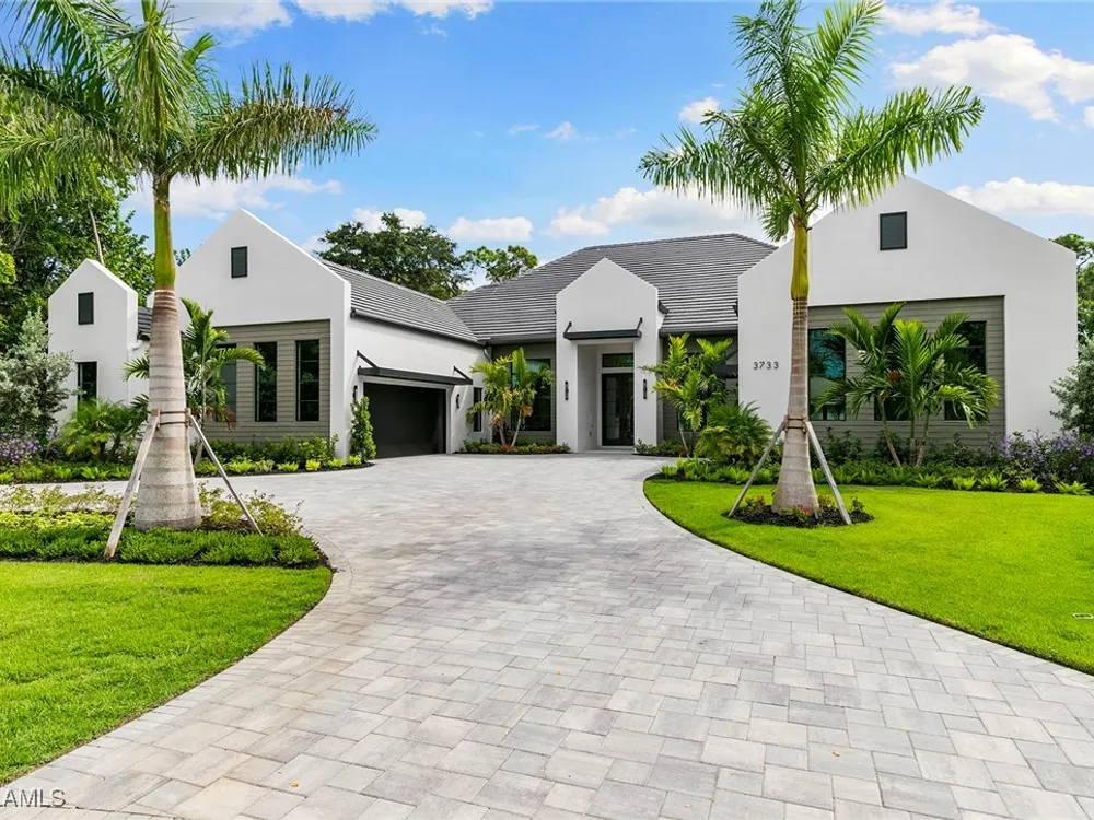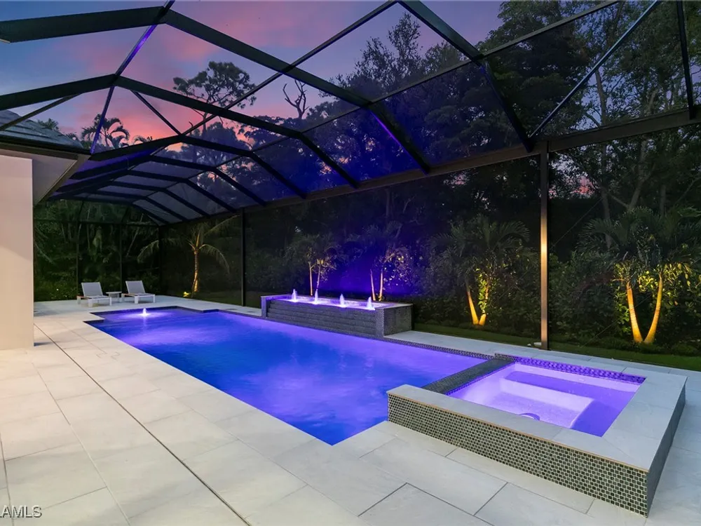 Welcome to a rare opportunity in Bonita Bay – a brand-new custom home by Imperial Homes of Naples in the intimate Woodlake neighborhood. Designed for those who want luxury without excess, this thoughtfully scaled residence delivers exceptional craftsmanship at a more approachable price point than larger golf course estates. Featuring wide-plank wood floors, soaring custom ceilings and a chef's kitchen with top-tier finishes, every detail reflects timeless craftsmanship. The open living room is complemented by a spacious game/flex room, creating a second gathering space ideal for entertaining family and friends. The baths showcase high-end designer touches, and the tranquil primary suite offers a spa-like retreat. Step outside to a private tropical oasis where a sparkling pool is framed by lush landscaping, ensuring every window captures vibrant greenery and privacy. The interior lot location provides peace, seclusion and the best of Bonita Bay living without the premium of a golf or lakefront setting. It even features a secure package delivery room in the garage. Enjoy all the amenities of Bonita Bay including five golf courses (with private membership), a marina with restaurant in the neighborhood, miles of walking trails, a fishing pier, a private beach park with shuttle service, and more, all within one of Southwest Florida's most sought-after communities.