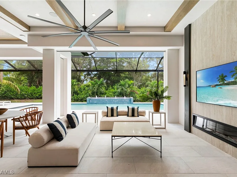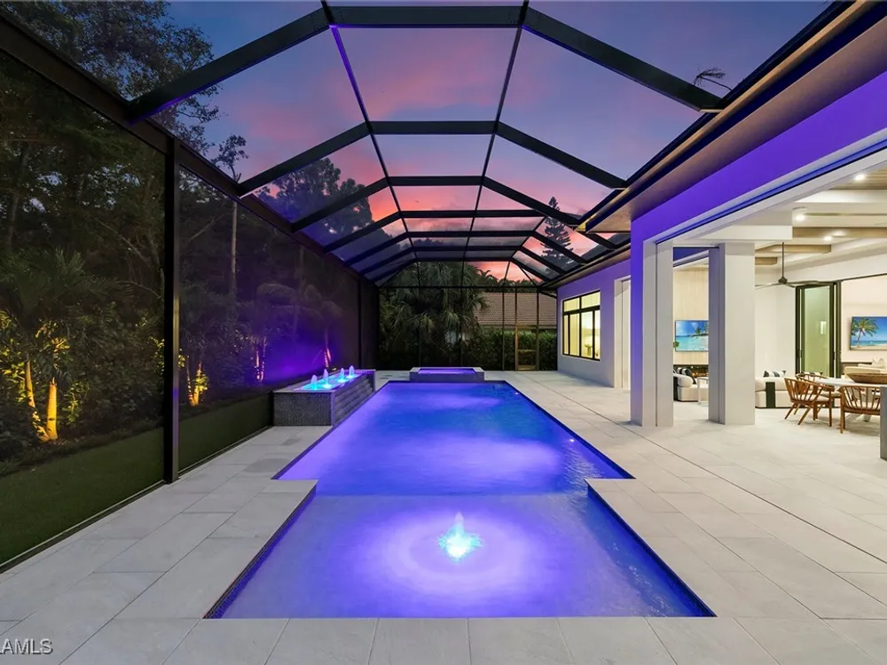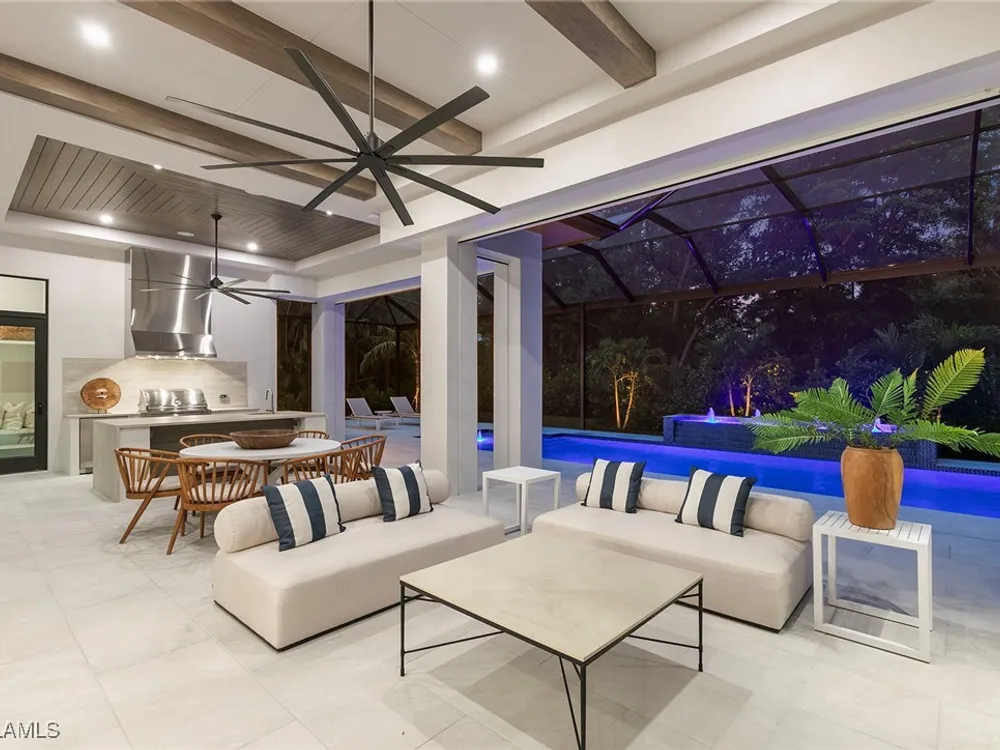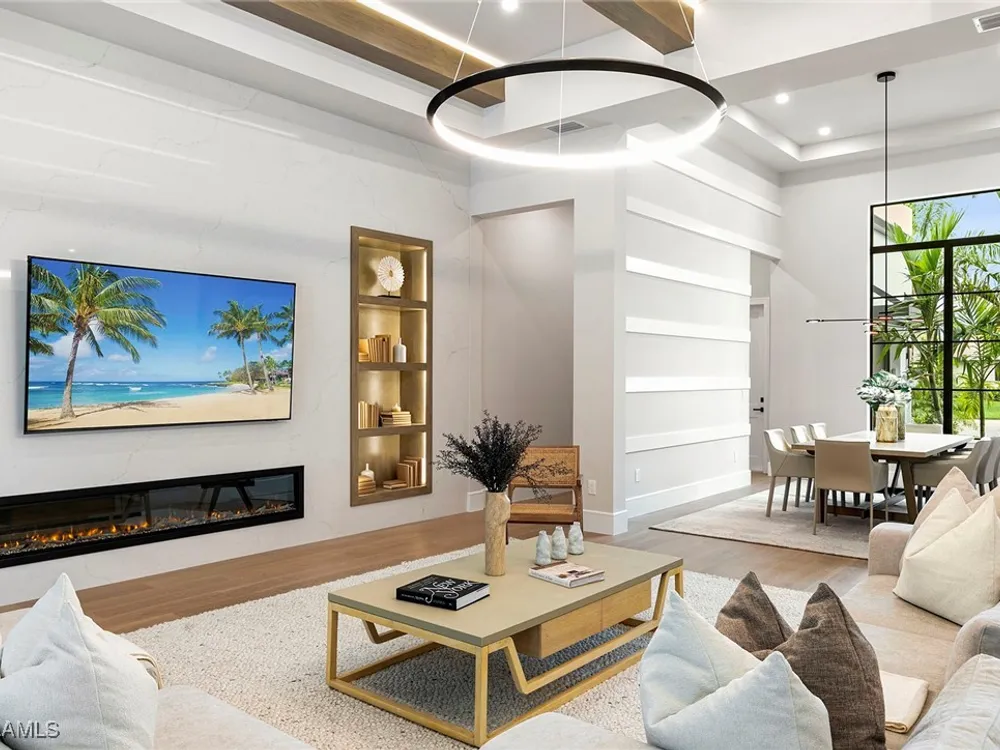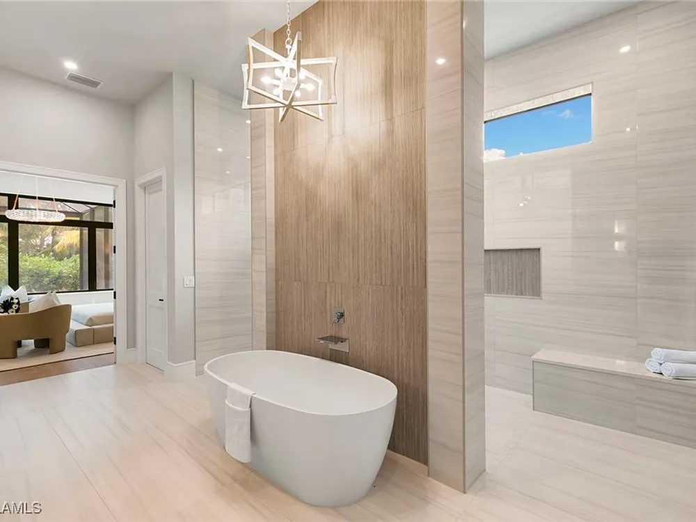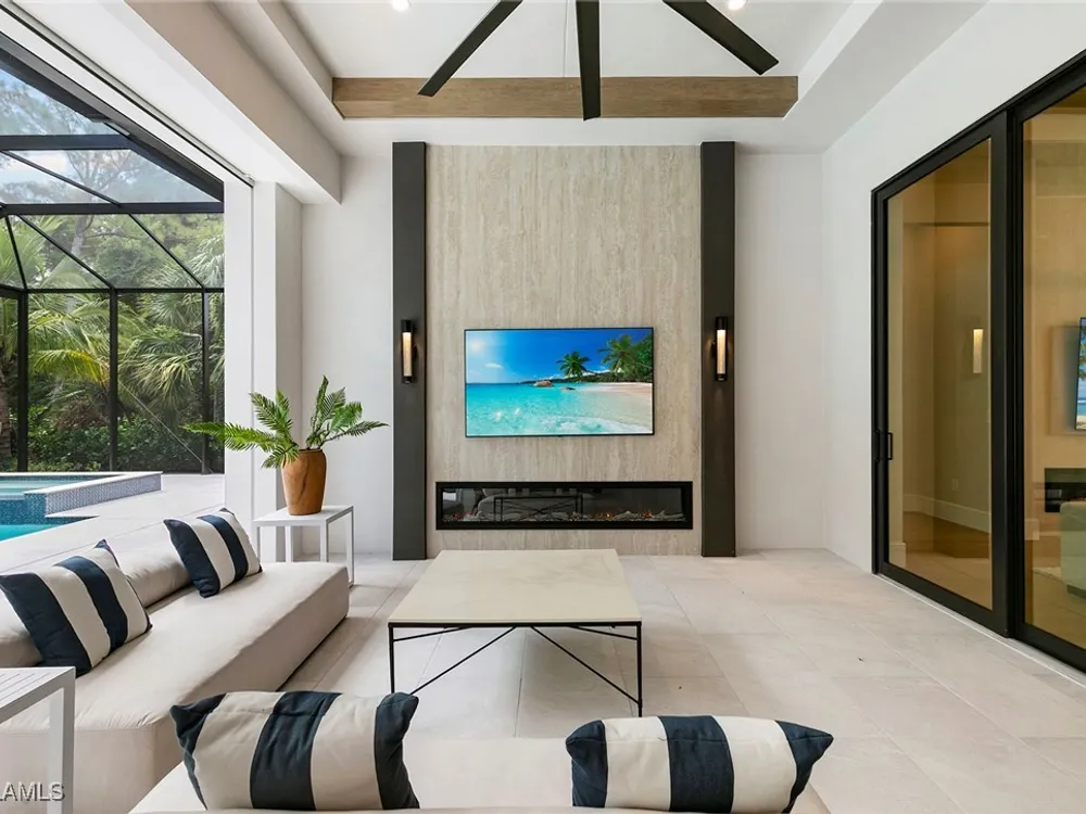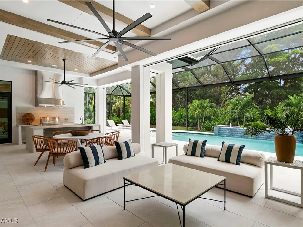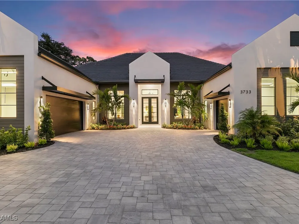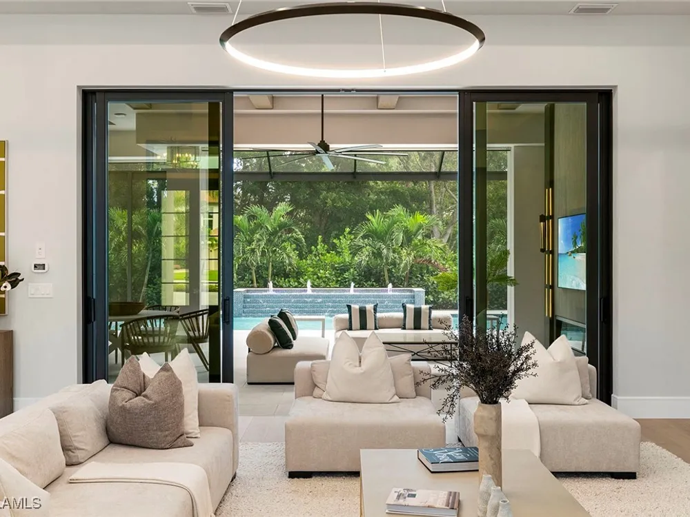 Welcome to a rare opportunity in Bonita Bay – a brand-new custom home by Imperial Homes of Naples in the intimate Woodlake neighborhood. Designed for those who want luxury without excess, this thoughtfully scaled residence delivers exceptional craftsmanship at a more approachable price point than larger golf course estates. Featuring wide-plank wood floors, soaring custom ceilings and a chef's kitchen with top-tier finishes, every detail reflects timeless craftsmanship. The open living room is complemented by a spacious game/flex room, creating a second gathering space ideal for entertaining family and friends. The baths showcase high-end designer touches, and the tranquil primary suite offers a spa-like retreat. Step outside to a private tropical oasis where a sparkling pool is framed by lush landscaping, ensuring every window captures vibrant greenery and privacy. The interior lot location provides peace, seclusion and the best of Bonita Bay living without the premium of a golf or lakefront setting. It even features a secure package delivery room in the garage. Enjoy all the amenities of Bonita Bay including five golf courses (with private membership), a marina with restaurant in the neighborhood, miles of walking trails, a fishing pier, a private beach park with shuttle service, and more, all within one of Southwest Florida's most sought-after communities.