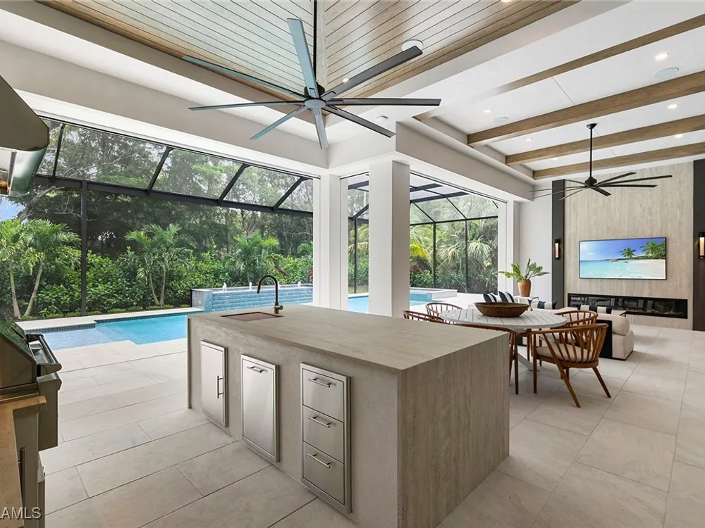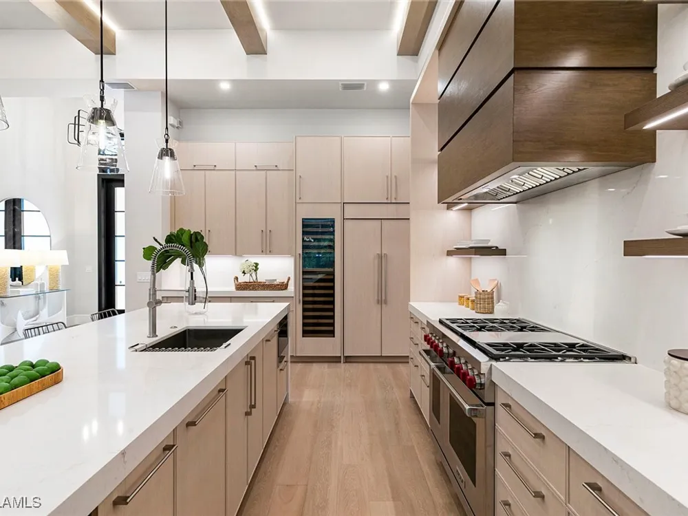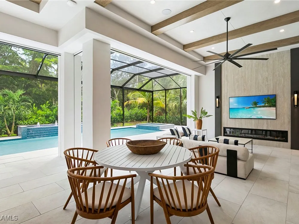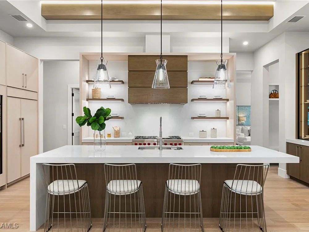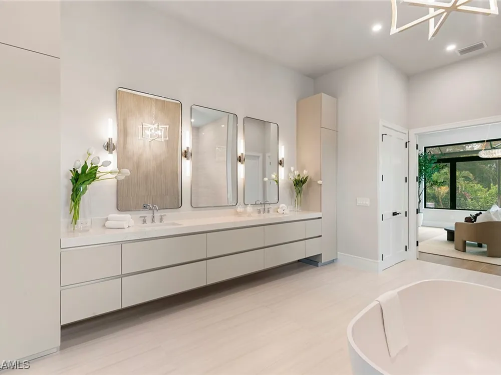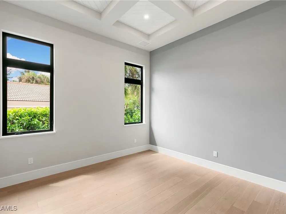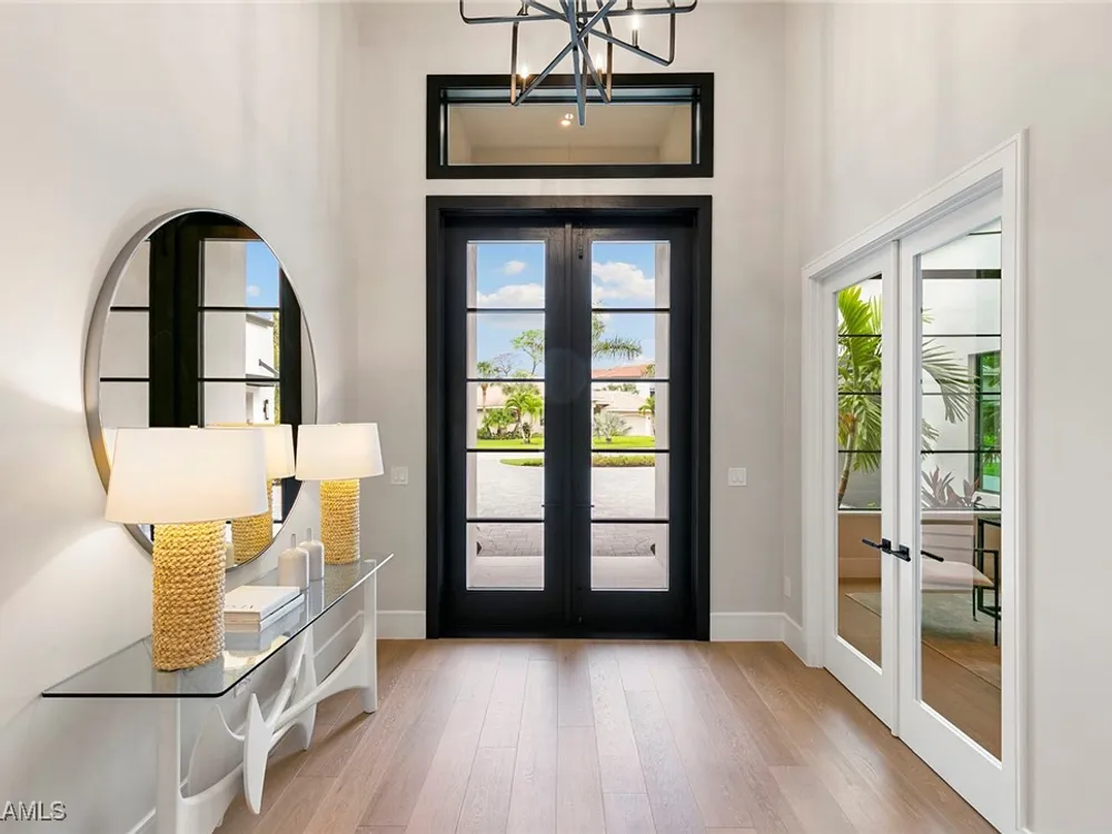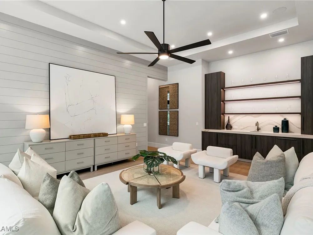 Welcome to a rare opportunity in Bonita Bay – a brand-new custom home by Imperial Homes of Naples in the intimate Woodlake neighborhood. Designed for those who want luxury without excess, this thoughtfully scaled residence delivers exceptional craftsmanship at a more approachable price point than larger golf course estates. Featuring wide-plank wood floors, soaring custom ceilings and a chef's kitchen with top-tier finishes, every detail reflects timeless craftsmanship. The open living room is complemented by a spacious game/flex room, creating a second gathering space ideal for entertaining family and friends. The baths showcase high-end designer touches, and the tranquil primary suite offers a spa-like retreat. Step outside to a private tropical oasis where a sparkling pool is framed by lush landscaping, ensuring every window captures vibrant greenery and privacy. The interior lot location provides peace, seclusion and the best of Bonita Bay living without the premium of a golf or lakefront setting. It even features a secure package delivery room in the garage. Enjoy all the amenities of Bonita Bay including five golf courses (with private membership), a marina with restaurant in the neighborhood, miles of walking trails, a fishing pier, a private beach park with shuttle service, and more, all within one of Southwest Florida's most sought-after communities.