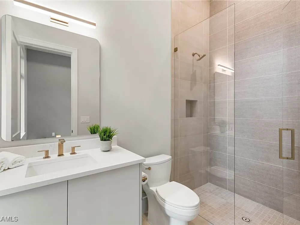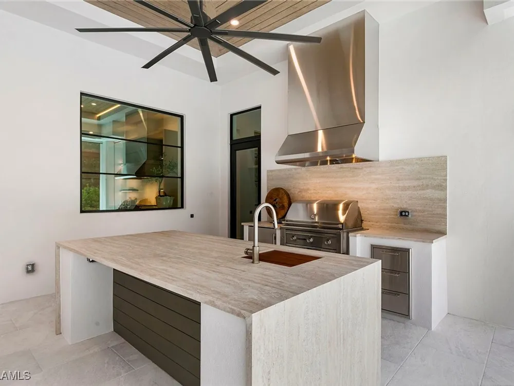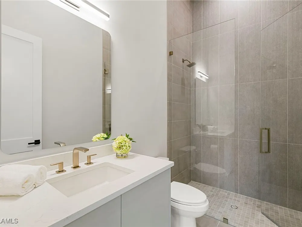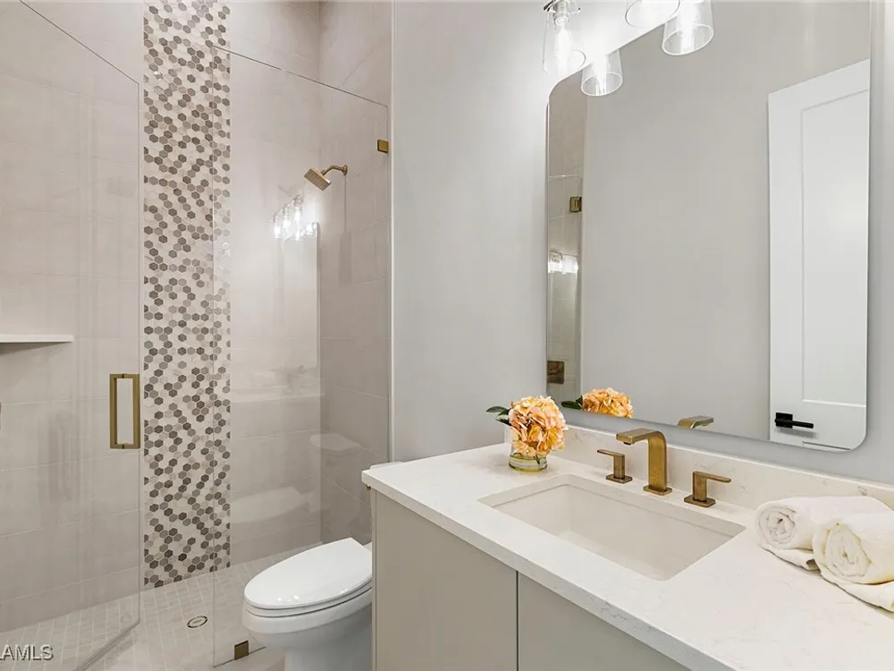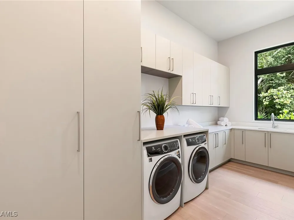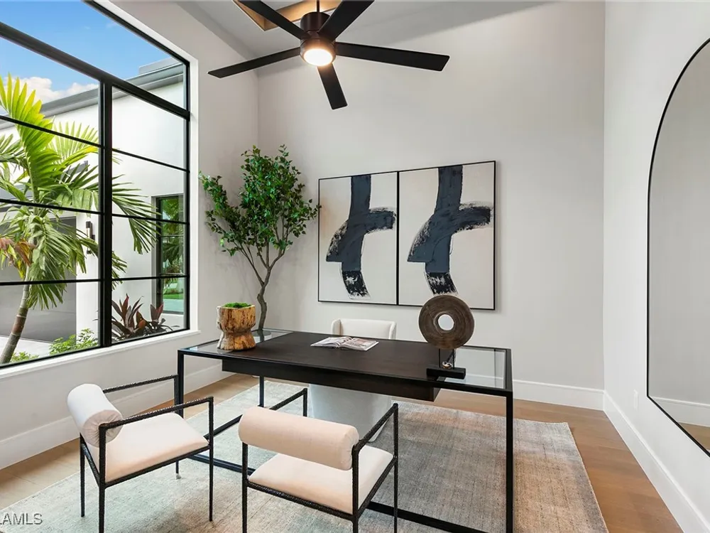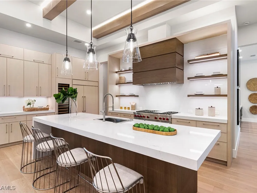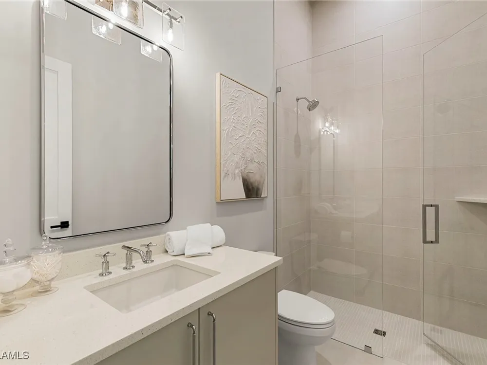 Welcome to a rare opportunity in Bonita Bay – a brand-new custom home by Imperial Homes of Naples in the intimate Woodlake neighborhood. Designed for those who want luxury without excess, this thoughtfully scaled residence delivers exceptional craftsmanship at a more approachable price point than larger golf course estates. Featuring wide-plank wood floors, soaring custom ceilings and a chef's kitchen with top-tier finishes, every detail reflects timeless craftsmanship. The open living room is complemented by a spacious game/flex room, creating a second gathering space ideal for entertaining family and friends. The baths showcase high-end designer touches, and the tranquil primary suite offers a spa-like retreat. Step outside to a private tropical oasis where a sparkling pool is framed by lush landscaping, ensuring every window captures vibrant greenery and privacy. The interior lot location provides peace, seclusion and the best of Bonita Bay living without the premium of a golf or lakefront setting. It even features a secure package delivery room in the garage. Enjoy all the amenities of Bonita Bay including five golf courses (with private membership), a marina with restaurant in the neighborhood, miles of walking trails, a fishing pier, a private beach park with shuttle service, and more, all within one of Southwest Florida's most sought-after communities.
