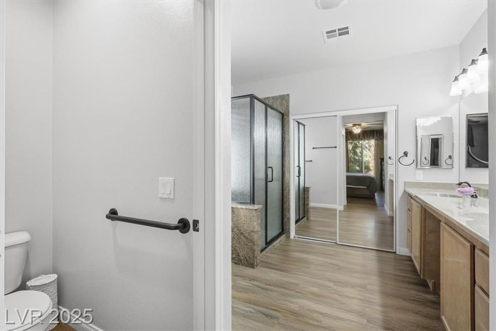 Beautiful corner-lot home located in a gated 55+ active community, offering a bright, comfortable layout and a renovated primary bathroom. Community amenities include a clubhouse with lounge and game areas, two pools, fitness center, sauna, hot tub, tennis, basketball, and pickleball courts, multiple parks, and a dog park. Residents also enjoy weekly social activities, including card nights on Fridays and Sundays.Conveniently located near shopping, dining, medical services, and Shadow Creek Golf Course.