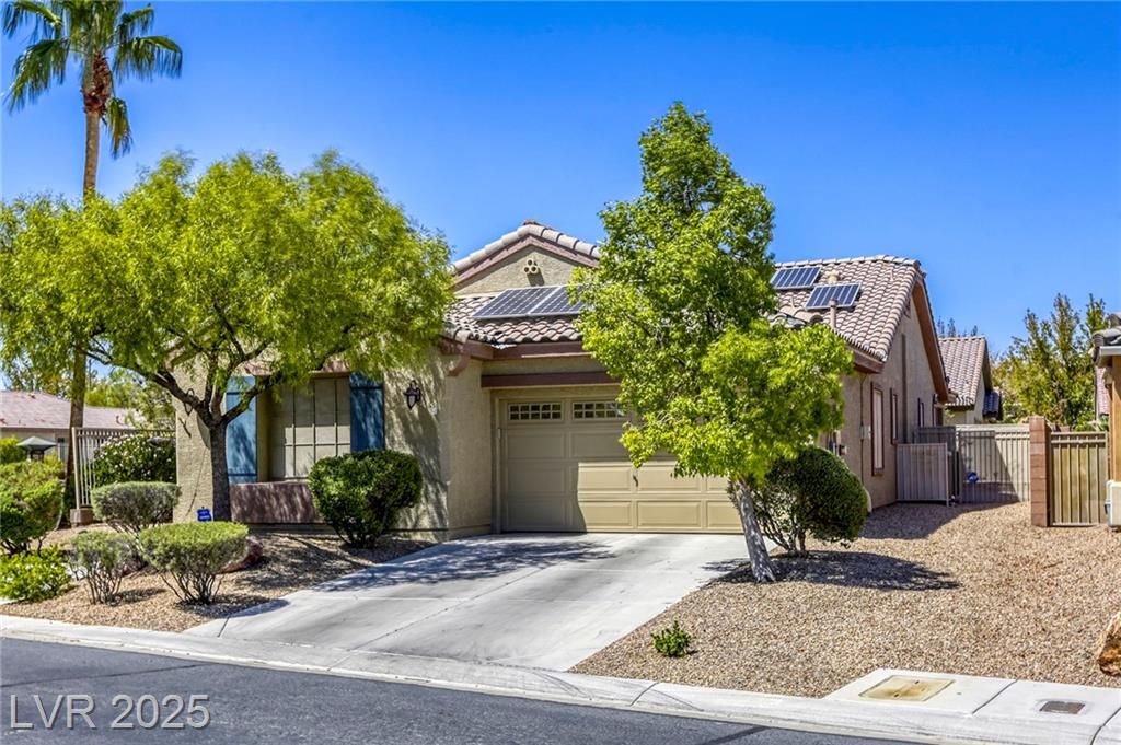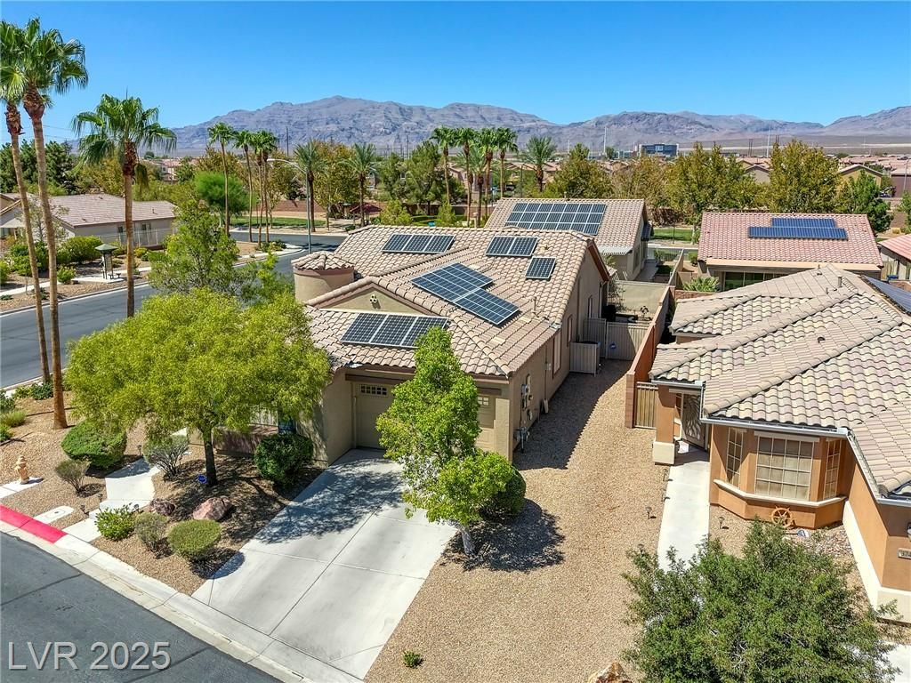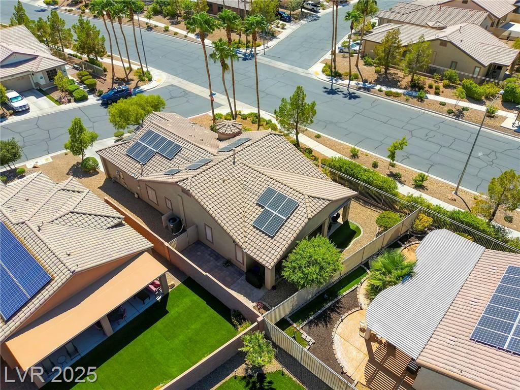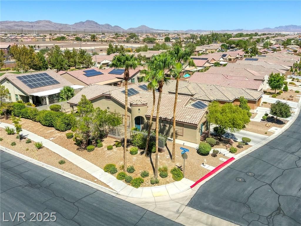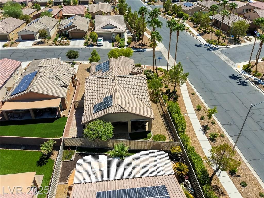 5+Resort Style Living. This is a unique 1 story, 3 bedroom, Den/Formal Dining room, Valencia Model Centex home. Solar System Owned, and payed in Full, New Hot Water Heater. Close to VA Hospital & Entertainment. Filled with additional upgrades. Ceiling Fans and Lights through out home, Includes Living Room Surround Sound System. Kitchen with Large Counter with Seating on one side for Four Stools,Kitchen has sliding Glass Doors out to the Covered Patio. lots of Counter Space and Cabinets.Primary Suite has Double Sinks, Shower with glass enclosure and Walk In Closet, Home water filtration system, Primary Bedroom with Sliding Glass Doors looking out at your extended outdoor living space Corner Lot Close to Rose Park and The Enclosed fenced Dog Park Walking Distance from the Home.This is a must see Home it has been meticulously maintained . Community includes 22000sf Clubhouse, Lap Pool, Resort Pool, Gym, Pickle ball, tennis,7parks, Putting Green & Dog Park and many activities.
