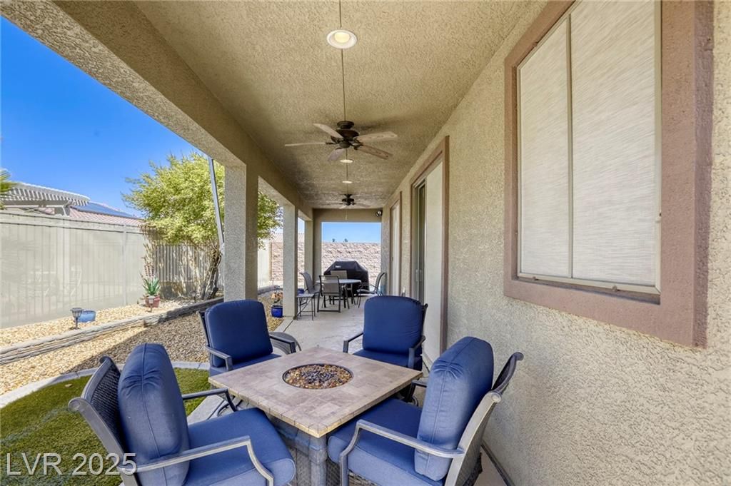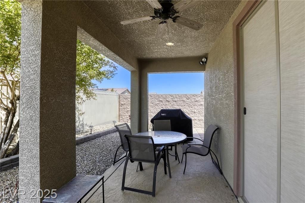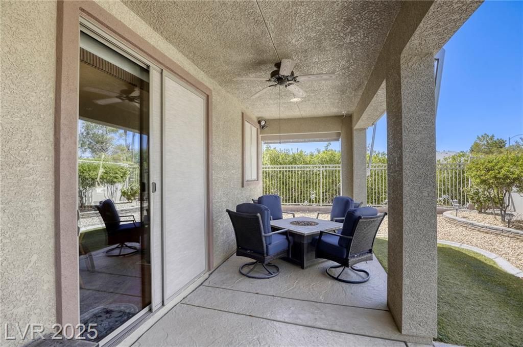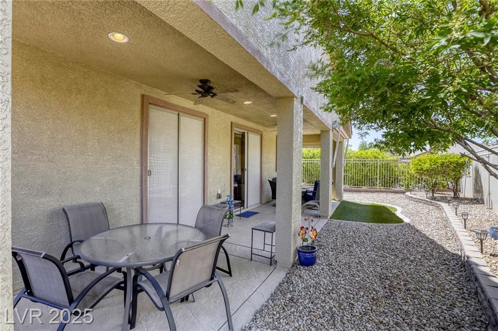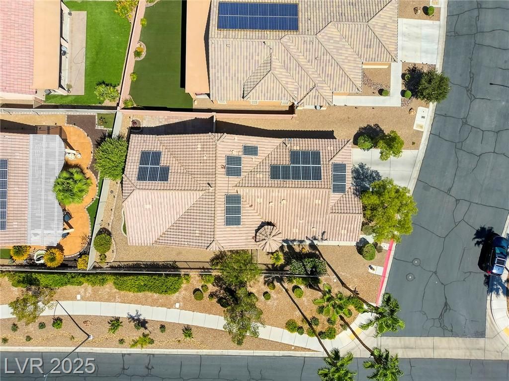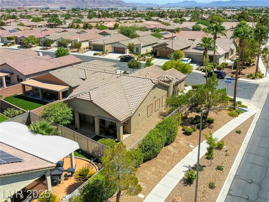 5+Resort Style Living. This is a unique 1 story, 3 bedroom, Den/Formal Dining room, Valencia Model Centex home. Solar System Owned, and payed in Full, New Hot Water Heater. Close to VA Hospital & Entertainment. Filled with additional upgrades. Ceiling Fans and Lights through out home, Includes Living Room Surround Sound System. Kitchen with Large Counter with Seating on one side for Four Stools,Kitchen has sliding Glass Doors out to the Covered Patio. lots of Counter Space and Cabinets.Primary Suite has Double Sinks, Shower with glass enclosure and Walk In Closet, Home water filtration system, Primary Bedroom with Sliding Glass Doors looking out at your extended outdoor living space Corner Lot Close to Rose Park and The Enclosed fenced Dog Park Walking Distance from the Home.This is a must see Home it has been meticulously maintained . Community includes 22000sf Clubhouse, Lap Pool, Resort Pool, Gym, Pickle ball, tennis,7parks, Putting Green & Dog Park and many activities.