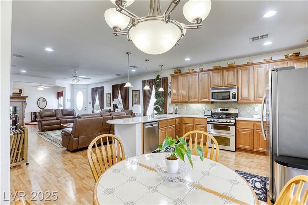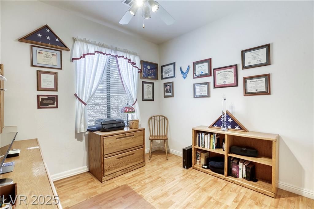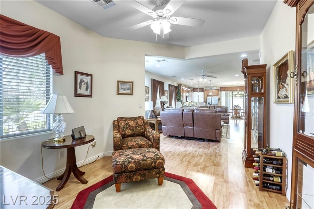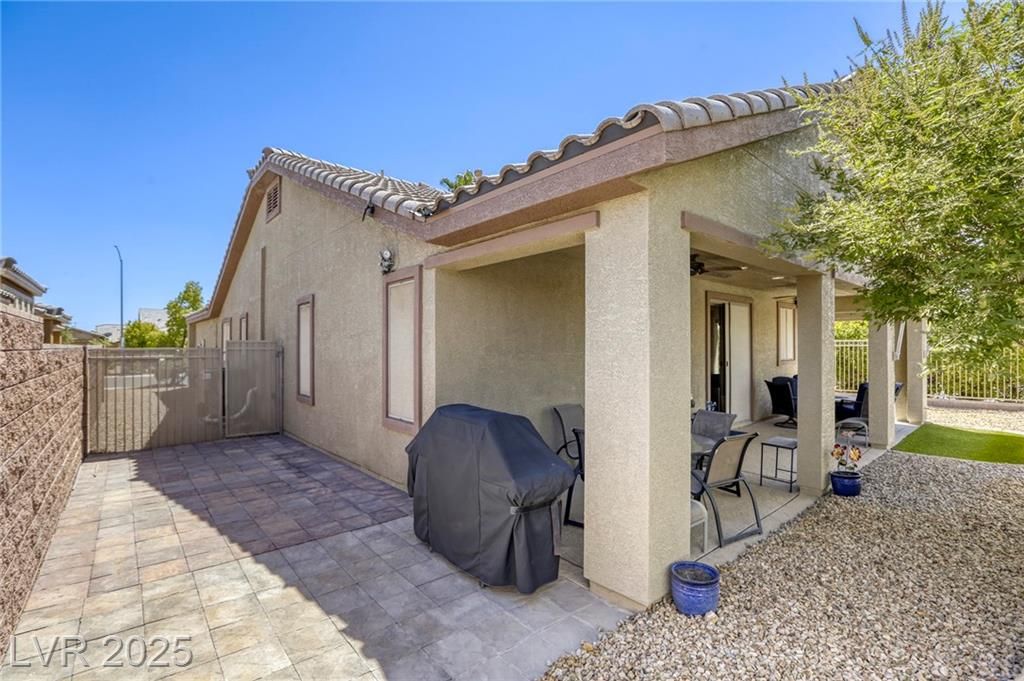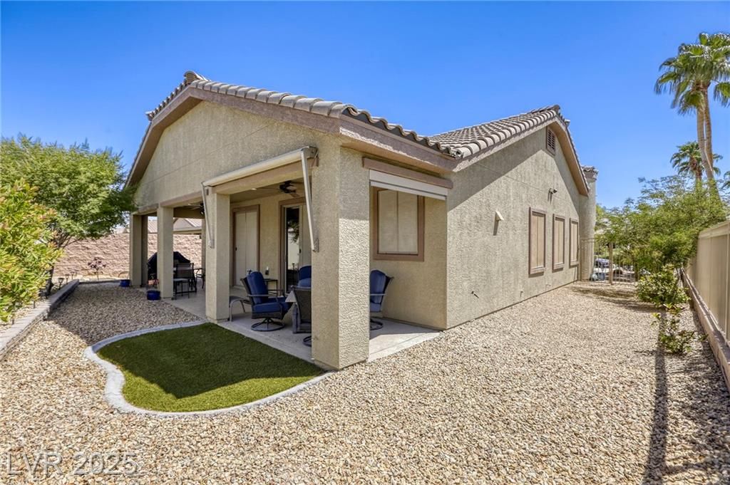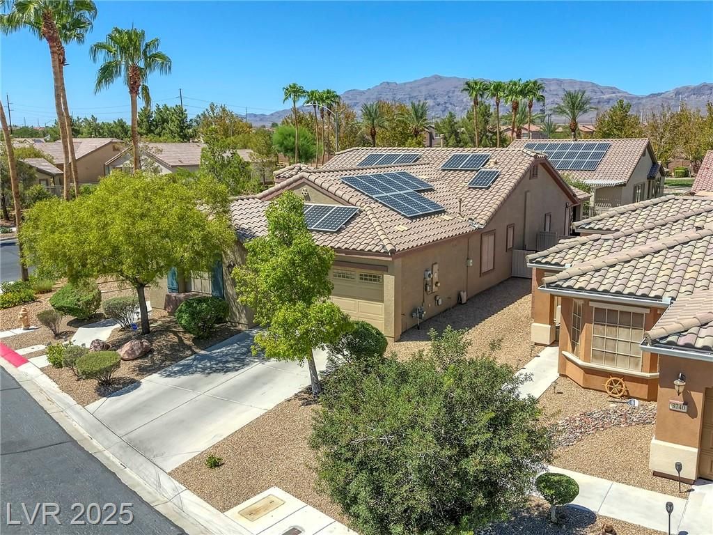 5+Resort Style Living. This is a unique 1 story, 3 bedroom, Den/Formal Dining room, Valencia Model Centex home. Solar System Owned, and payed in Full, New Hot Water Heater. Close to VA Hospital & Entertainment. Filled with additional upgrades. Ceiling Fans and Lights through out home, Includes Living Room Surround Sound System. Kitchen with Large Counter with Seating on one side for Four Stools,Kitchen has sliding Glass Doors out to the Covered Patio. lots of Counter Space and Cabinets.Primary Suite has Double Sinks, Shower with glass enclosure and Walk In Closet, Home water filtration system, Primary Bedroom with Sliding Glass Doors looking out at your extended outdoor living space Corner Lot Close to Rose Park and The Enclosed fenced Dog Park Walking Distance from the Home.This is a must see Home it has been meticulously maintained . Community includes 22000sf Clubhouse, Lap Pool, Resort Pool, Gym, Pickle ball, tennis,7parks, Putting Green & Dog Park and many activities.