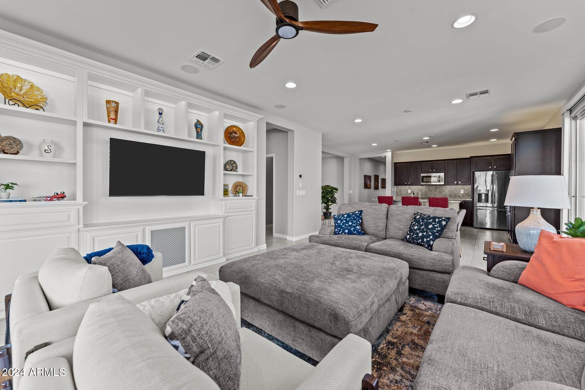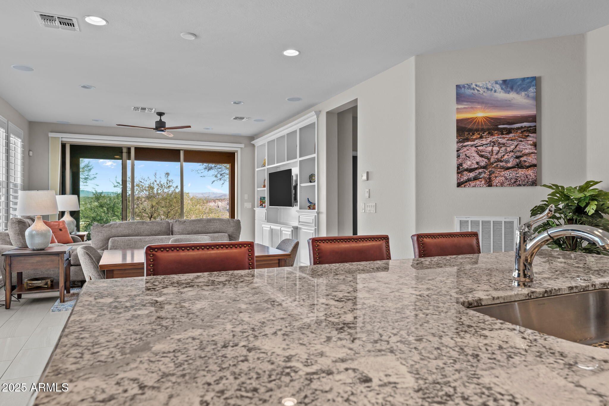 Experience easy, lock-and-leave living in the highly sought-after Wickenburg Ranch community, where views, comfort, and convenience all line up just right. The HOA handles both front and backyard landscaping, so weekends stay open for golf, trails, dining, or simply enjoying the pace of the neighborhood without a long to-do list waiting at home. Inside, this home knows exactly what it's doing with space. Two full suites, each with its own en suite bathroom, make hosting guests or sharing the home feel effortless, with privacy built right in. A flexible den adds bonus space for a home office, reading room, creative projects, or a quiet retreat, and a separate powder room keeps guests comfortable without giving up anyone's personal space. The open kitchen and living areas flow naturally and feel polished without trying too hard, making everyday living just as comfortable as entertaining. Step outside to a backyard setting that takes full advantage of the surrounding views, creating an ideal backdrop for morning coffee, sunset dinners, or relaxed evenings under the desert sky. This is Wickenburg Ranch living done right, thoughtful, low-maintenance, and ready to enjoy from day one.