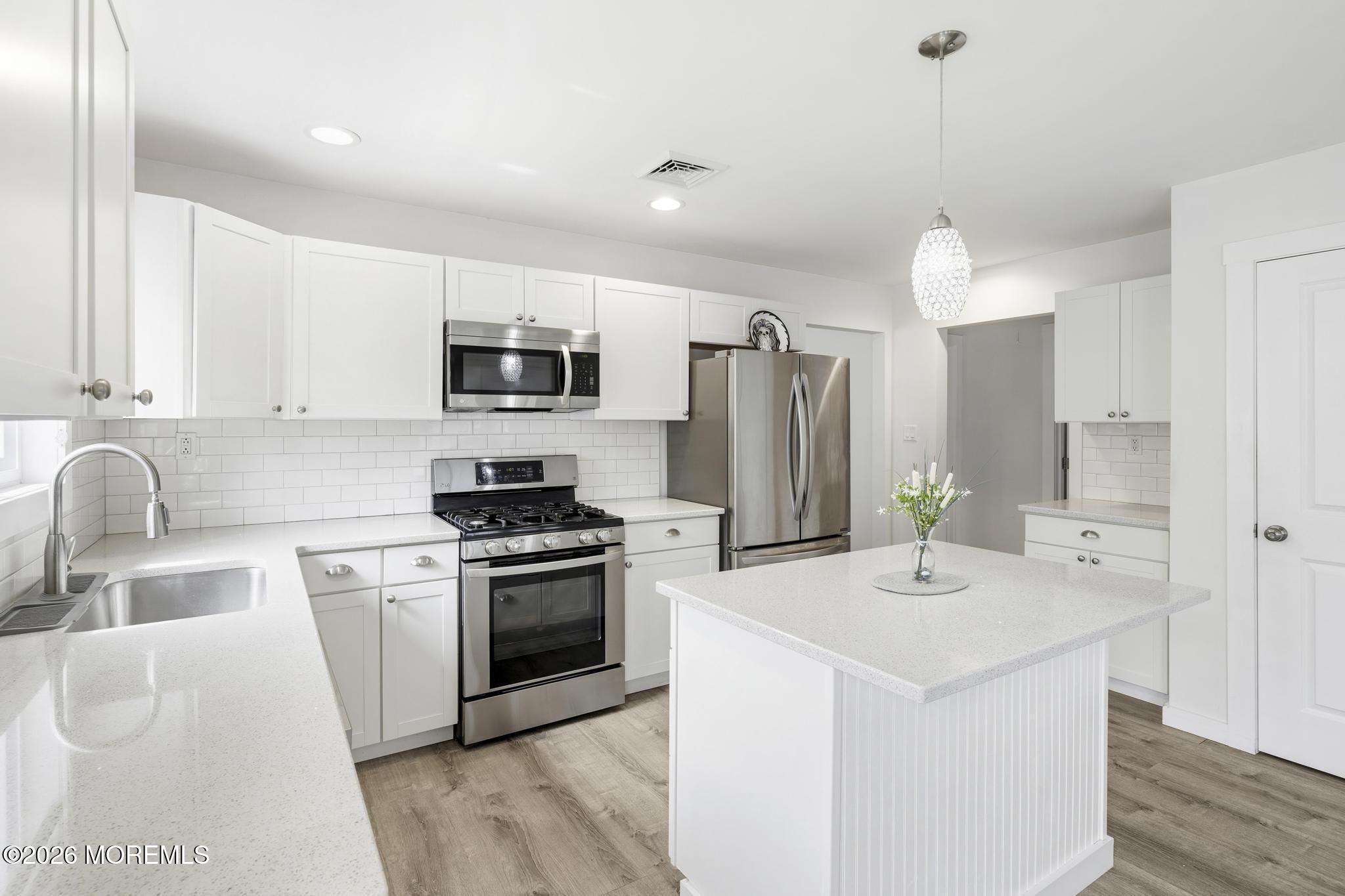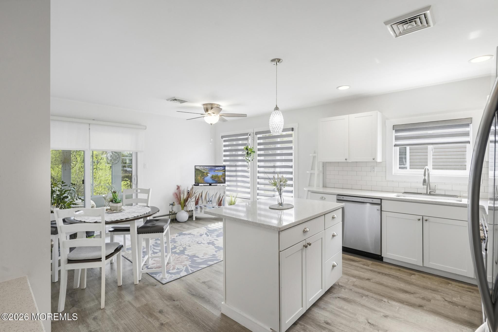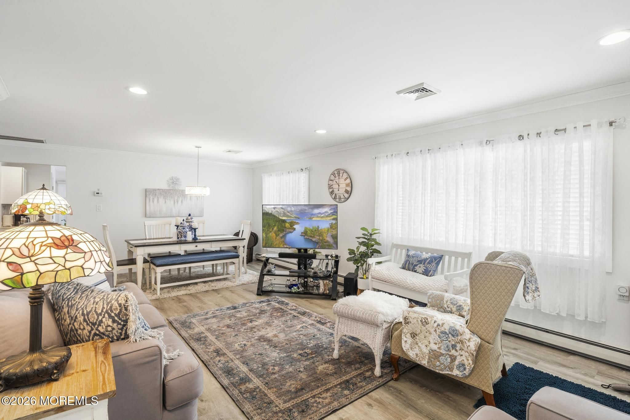 Beautifully updated waterfront home in Holiday City Berkeley! The modern kitchen shines with crisp cabinetry, granite countertops, pantry storage, and recessed lighting. A slider from the kitchen opens to a bright three-season room, perfect for relaxing or entertaining while taking in tranquil water views. Designed for comfort and style, this home blends coastal charm with everyday functionality, offering the ideal setting for peaceful waterfront living.