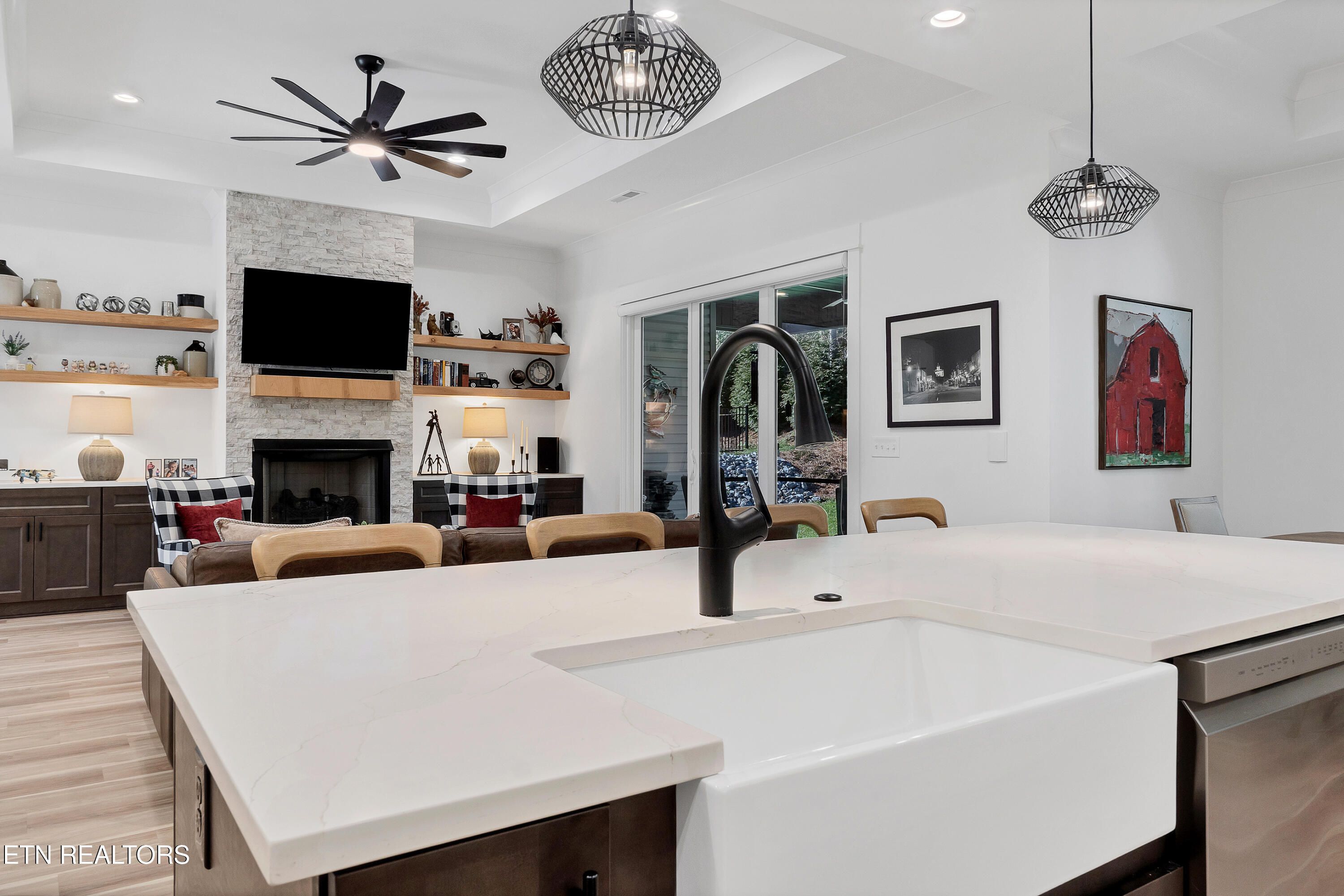 Don't miss this better than new 2-year-old home in beautiful Tanasi Shores! Situated on a level lot at the end of the street with common area behind for additional privacy, this classic 3 bedroom, 2 bath ranch style home combines functionality with luxury! The open floor plan has a seamless flow between family room with gas fireplace, kitchen, dining area, and office with French doors. The kitchen is a chef's dream with spacious pantry, large island with farmhouse sink, stainless appliances (induction stove with wifi connection) and chimney hood. The primary suite features an accent wall, tray ceiling, expansive walk in closet with custom shelving, double bowl vanity, soaker tub, and walk in tiled shower plus heated tile floors for those cool mornings! On the other side of the home are two spacious bedrooms sharing a bathroom with tile surround in the tub/shower combo. The laundry room won't disappoint with tons of cabinet storage, drop in sink and washer and dryer with smart Wifi control.. The entire home has a stunning high end LVP throughout (no carpet anywhere!), quartz countertops and custom made plantation shutters, as well as a central vacuum system, and Nest thermostat. There is a built in ''drop zone'' leading to the garage for jackets and shoes. The garage is by no means an afterthought with newly added custom shelving/storage system, epoxy floor, and even a heating and cooling mini split to keep it comfortably climate controlled. Insulation has been added above the garage and a space for additional storage. Out back you will appreciate the screened in porch looking out to the private yard, leaf filters that have been added to gutters and Wifi controlled irrigation, and professional landscaping designed for easy mowing. Truly no detail has been overlooked in this meticulously maintained home! The location in the heart of Tellico Village provides convenience to all of the amenities as well as golf and lake access. Embrace an easy East Tennessee lifestyle in this ''smart'' home where all the work has been done for you!