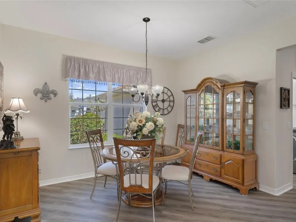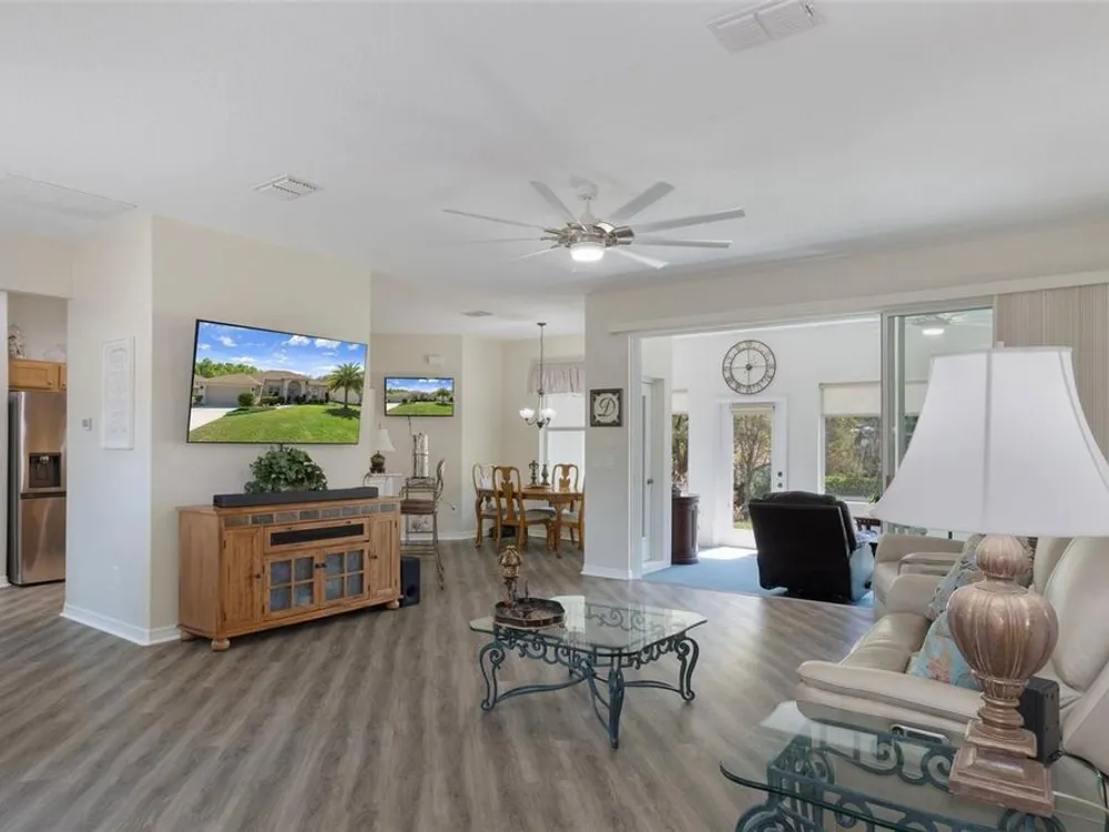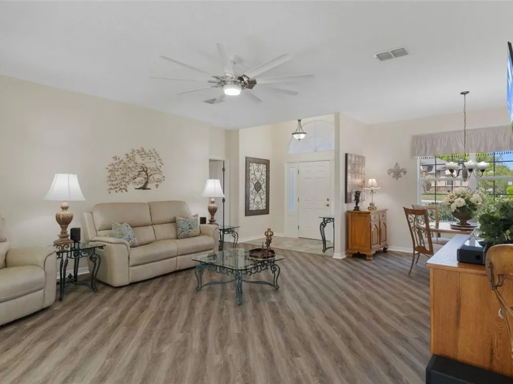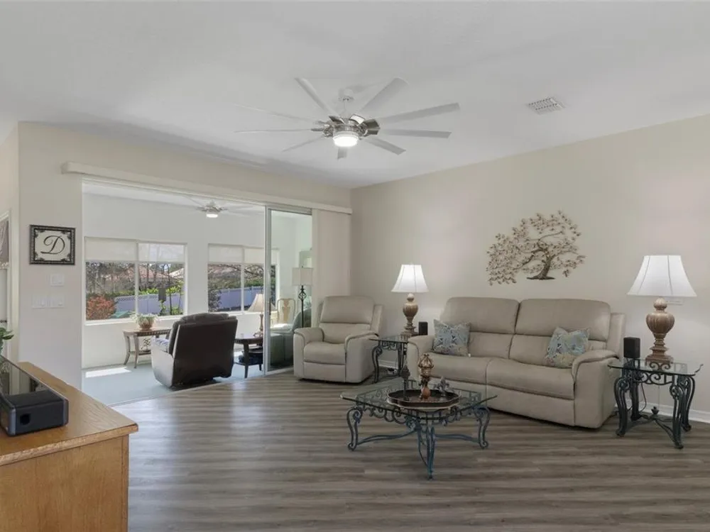 Clean and crisp, this 2014 home has been customized to feature contemporary and durable finishes that present a great opportunity for a turn-key home purchase located within the 55+ gated community of Heritage Village. Â The home offers 3 bedrooms, 2 bathrooms, and a 2 car garage with 2,076 living square feet. Â The layout of the home features a split-floor plan with a large family room, formal dining space, well-appointed kitchen, breakfast nook and dedicated laundry room. Â You'll instantly notice the diagonal luxury vinyl plank (installed 2023) and 9'4" ceilings throughout, which create a sense of modernity, accentuated by multiple 72" white and chrome ceiling fans (installed 2023). Â This bright and airy home has double paned windows throughout, with sliders to an enclosed Florida Room, perfect for a flex space. Â The primary bedroom includes a sitting or office nook, large walk-in closet, and spacious attached bathroom with double vanity, walk-in shower, linen closet, and separate toilet room. Â The kitchen includes granite countertops and solid wood cabinets with pull-outs in all base cabinets and the slow close feature on all doors. Â All kitchen appliances are stainless steel - LG & Bosch. Â The guest wing includes 2 bedrooms which share a bathroom - with a door out to the enclosed Florida Room. Â Energy efficient LED lighting has been installed throughout the home to help keep electricity bills lower. The attached 2 car garage includes a painted floor, pull-down stairs for attic access, a utility sink and a side entry door for your convenience. The luxury vinyl plank is commercial grade with a 22mil wear layer, the interior of the home was painted with welcoming neutral tones in 2023, and the exterior was repainted in 2023 with high quality exterior paint. Â The exterior of the home features gutters and downspouts, a sprinkler system, lemon trees, and includes yard maintenance through the HOA! Heritage Village is a small, private community, located close to shopping centers Heritage Oaks and Shops at Black Diamond.