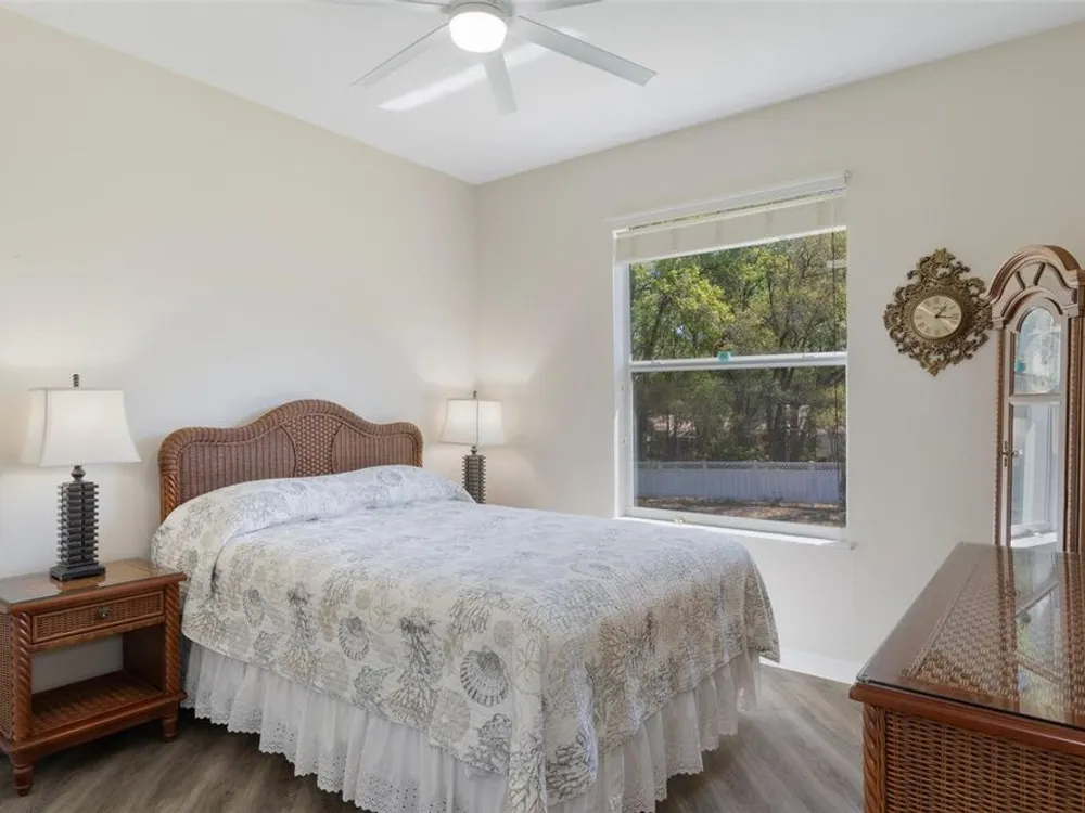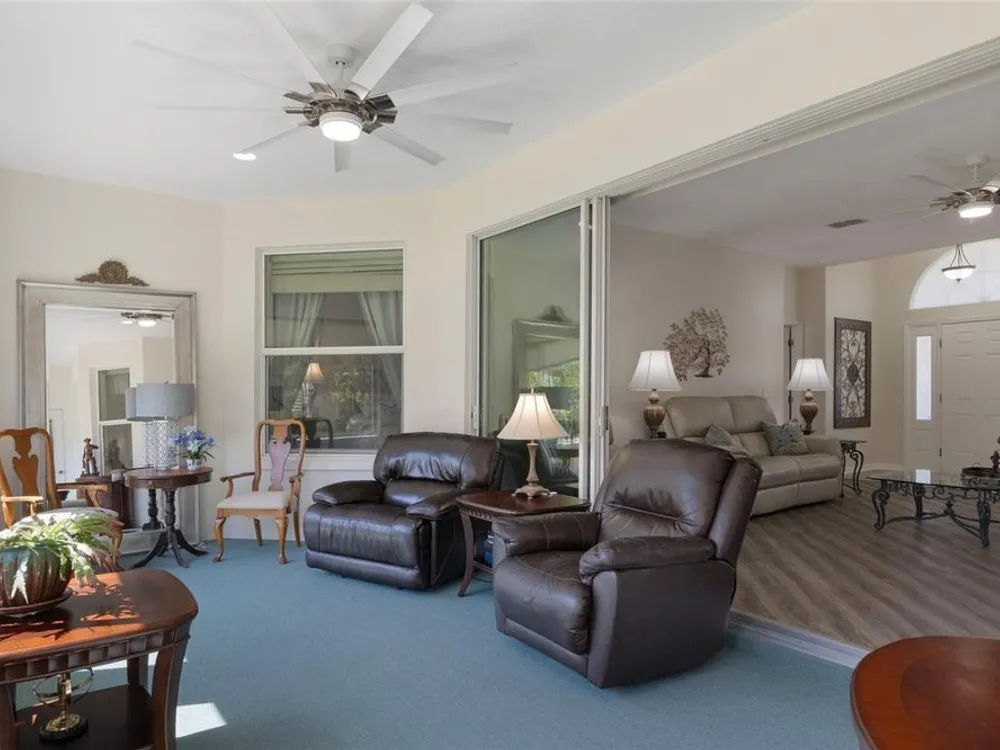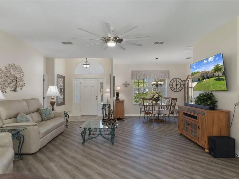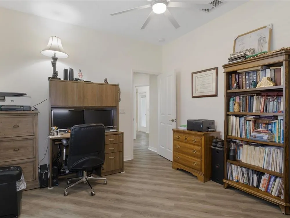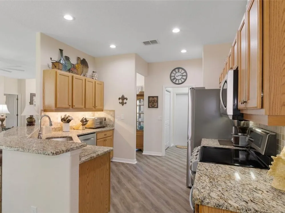 Clean and crisp, this 2014 home has been customized to feature contemporary and durable finishes that present a great opportunity for a turn-key home purchase located within the 55+ gated community of Heritage Village. Â The home offers 3 bedrooms, 2 bathrooms, and a 2 car garage with 2,076 living square feet. Â The layout of the home features a split-floor plan with a large family room, formal dining space, well-appointed kitchen, breakfast nook and dedicated laundry room. Â You'll instantly notice the diagonal luxury vinyl plank (installed 2023) and 9'4" ceilings throughout, which create a sense of modernity, accentuated by multiple 72" white and chrome ceiling fans (installed 2023). Â This bright and airy home has double paned windows throughout, with sliders to an enclosed Florida Room, perfect for a flex space. Â The primary bedroom includes a sitting or office nook, large walk-in closet, and spacious attached bathroom with double vanity, walk-in shower, linen closet, and separate toilet room. Â The kitchen includes granite countertops and solid wood cabinets with pull-outs in all base cabinets and the slow close feature on all doors. Â All kitchen appliances are stainless steel - LG & Bosch. Â The guest wing includes 2 bedrooms which share a bathroom - with a door out to the enclosed Florida Room. Â Energy efficient LED lighting has been installed throughout the home to help keep electricity bills lower. The attached 2 car garage includes a painted floor, pull-down stairs for attic access, a utility sink and a side entry door for your convenience. The luxury vinyl plank is commercial grade with a 22mil wear layer, the interior of the home was painted with welcoming neutral tones in 2023, and the exterior was repainted in 2023 with high quality exterior paint. Â The exterior of the home features gutters and downspouts, a sprinkler system, lemon trees, and includes yard maintenance through the HOA! Heritage Village is a small, private community, located close to shopping centers Heritage Oaks and Shops at Black Diamond.