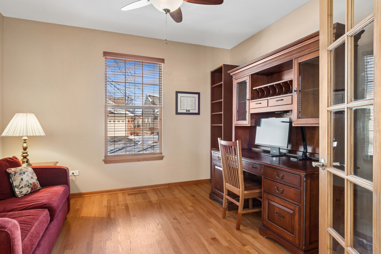 THIS IS THE SUBDIVISION PEOPLE TALK ABOUT and LOVE, CARILLON CLUB of NAPERVILLE, a VIBRANT 55+ LIFESTYLE! This ORIGINAL OWNER MOST METICULOUSLY MAINTAINED & LOVED home CAMELBACK MODEL is HARD-TO-FIND! Enter through the covered porch and step inside to MR & MRS CLEAN! GORGEOUS HARDWOOD FLOOR ENTRY, 9' CEILINGS, OPEN FLOOR PLAN from LIVING ROOM to DINING ROOM AREA, HUGE WINDOWS bringing in NATURAL LIGHT! LOVE the cleverly tucked front OFFICE, DOUBLE-DOOR ENTRY, HARDWOOD FLOORS... think FLEX SPACES, BEDROOM #3/LIBRARY/HOBBY ROOM! MORE BEAUTIFUL HARDWOOD FLOORS in the SPACIOUS FAMILY ROOM, OPEN to the KITCHEN, MORE HARDWOOD FLOORING, GRANITE COUNTERTOPS/TILE BACKSPLASH, and PLENTY of CABINET SPACE! EAT-IN KITCHEN, and, YES, BAR STOOL COUNTER SEATING, TOO! The SUNROOM is my FAVORITE, NATURAL SUNLIGHT and STEP OUTSIDE to PATIO for easy grilling, or chilling! The Primary Bedroom is roomy, plenty of closet space, and private bath! Down the hallway is Bedroom 2 with a convenient full bathroom nearby! YES, the laundry room is separate, and the washer & dryer stay! Easy out to a generous 2 car garage. YES, GREEN GRASS HERE, as this home has a sprinkler system too! NEED MORE SPACE? THE DEEP POUR BASEMENT is HUMONGOUS! Enjoy the CARILLON CLUB lifestyle which includes 24 HOUR GUARD/GATED ENTRY, LAWN & SNOW MAINTENANCE, CLUBHOUSE, INDOOR AND OUTDOOR POOLS, EXERCISE FACILITY, OUTDOOR GRANDCHILDREN'S POOL/PLAYGROUND, 3 HOLE GOLF COURSE, WALKING PATHS, PONDS, ACTIVITIES, TRIPS, CLUBS and MORE! HVAC replaced within the last 18 months, Water heater within 3 years, Washer 2022. HURRY IN! THIS SUBDIVISION SELLS QUICKLY! Estate Sale, so being sold in AS IS condition.