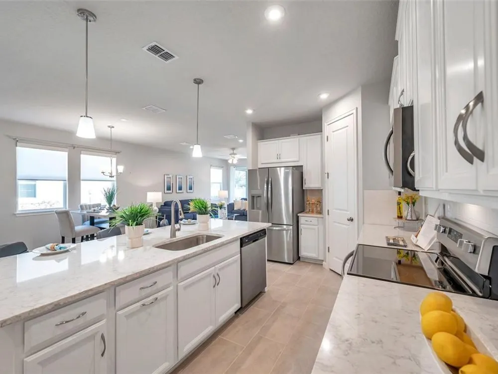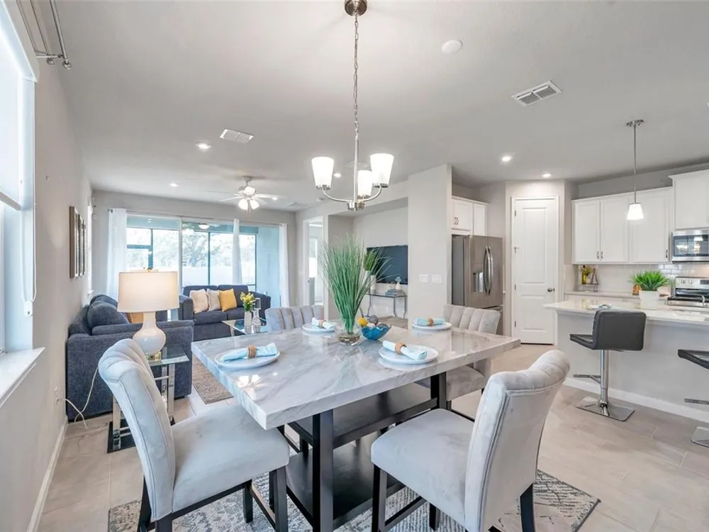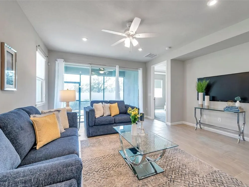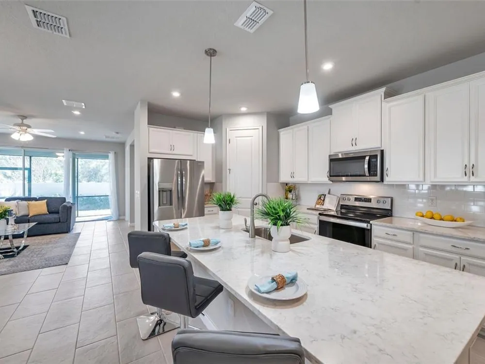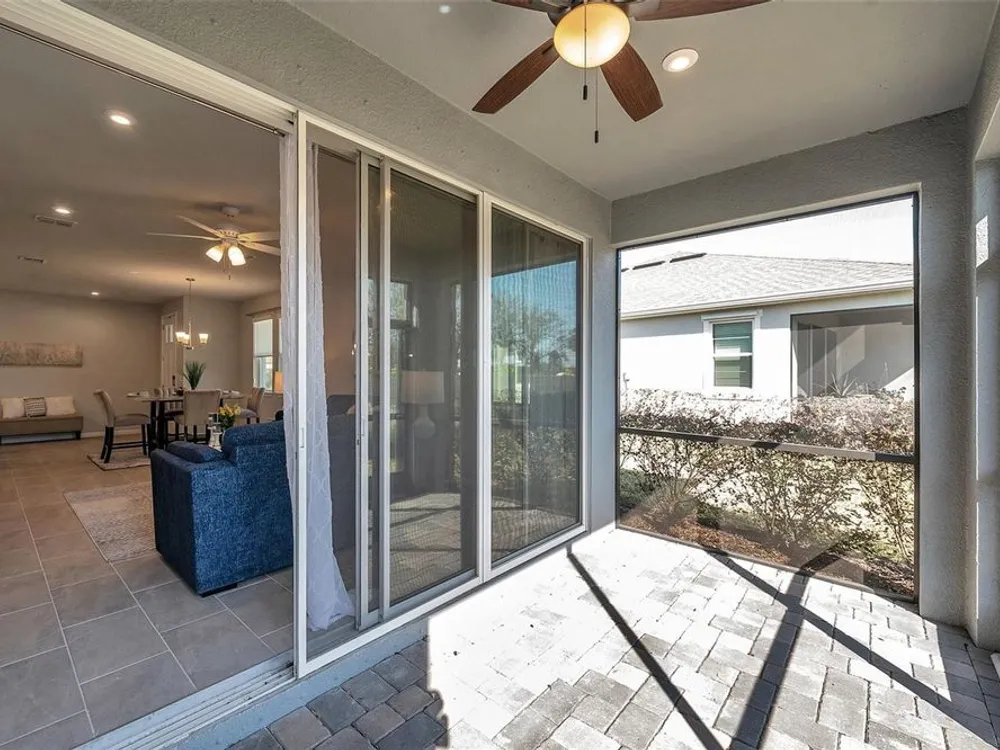 Don't miss your chance to own the stunning Topsail model home in The Preserve at La Paloma a 55+ community! Barely lived in 1,765 sq. ft. residence offers 3 bedrooms, 2 bathrooms, a den/office, and a 2-car garage. Enjoy the beautifully landscaped yard and paver driveway as you step inside to discover an open floor plan filled with natural light. The modern kitchen features elegant quartz countertops, stainless steel appliances, and a spacious island with a breakfast bar—perfect for culinary adventures! The generous great room and screened-in back porch create an ideal setting for entertaining guests. The primary suite is complete with double vanities, a private water closet, and a large walk-in closet with built-in shelving. The Preserve at La Paloma is a secure gated community with low HOA fees, no CDD fees and offers fantastic amenities like a pool, pickleball courts, and a fire pit area just across the street. Plus, you’ll enjoy the convenience of being centrally located near restaurants, shopping, hospitals, medical offices, beaches, and the interstate. Make this dream home yours today!