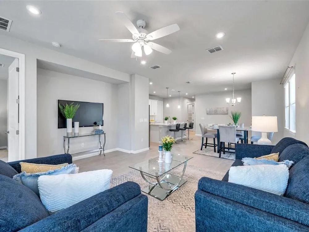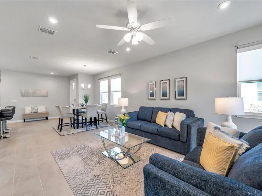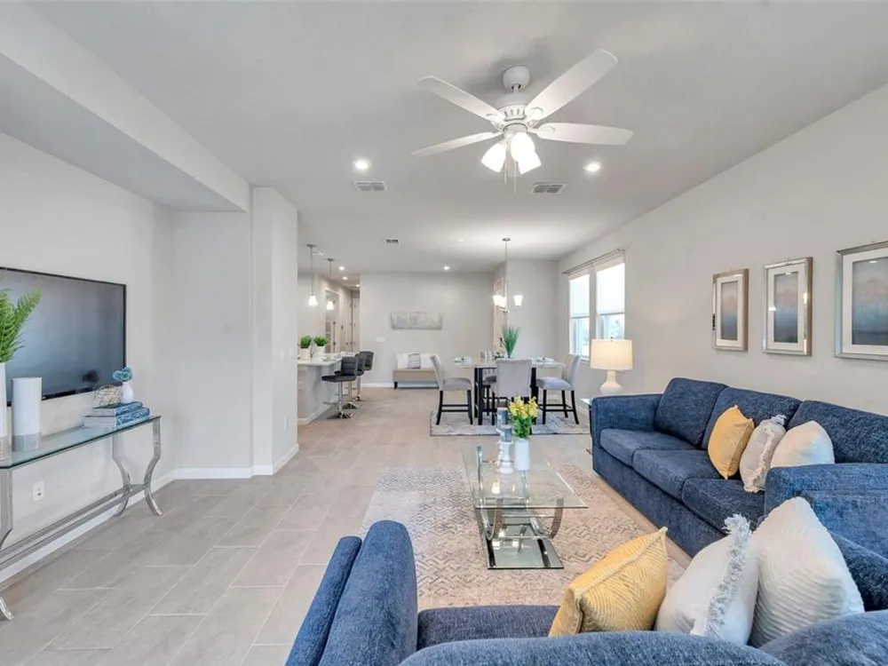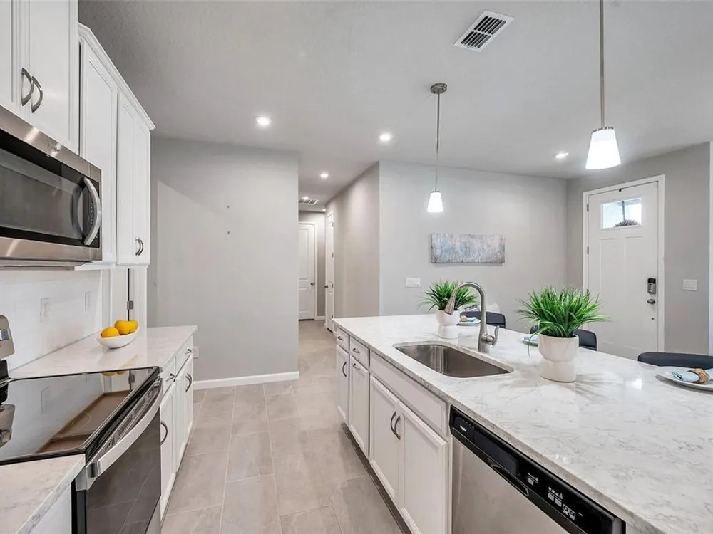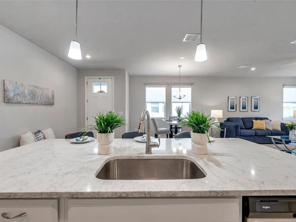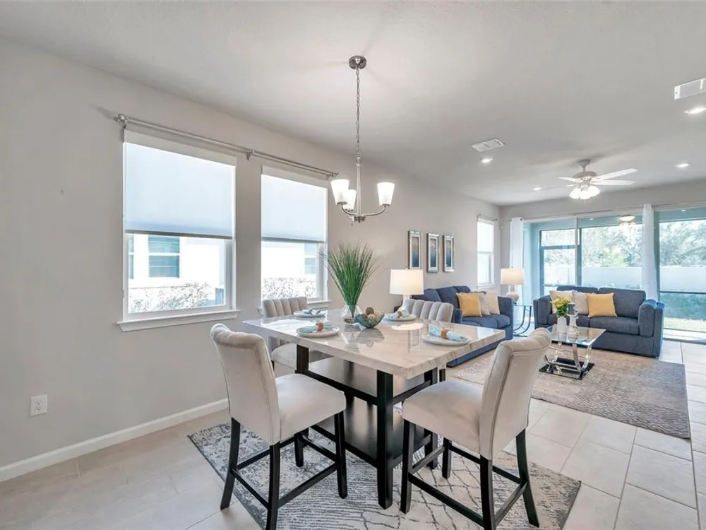 Don't miss your chance to own the stunning Topsail model home in The Preserve at La Paloma a 55+ community! Barely lived in 1,765 sq. ft. residence offers 3 bedrooms, 2 bathrooms, a den/office, and a 2-car garage. Enjoy the beautifully landscaped yard and paver driveway as you step inside to discover an open floor plan filled with natural light. The modern kitchen features elegant quartz countertops, stainless steel appliances, and a spacious island with a breakfast bar—perfect for culinary adventures! The generous great room and screened-in back porch create an ideal setting for entertaining guests. The primary suite is complete with double vanities, a private water closet, and a large walk-in closet with built-in shelving. The Preserve at La Paloma is a secure gated community with low HOA fees, no CDD fees and offers fantastic amenities like a pool, pickleball courts, and a fire pit area just across the street. Plus, you’ll enjoy the convenience of being centrally located near restaurants, shopping, hospitals, medical offices, beaches, and the interstate. Make this dream home yours today!