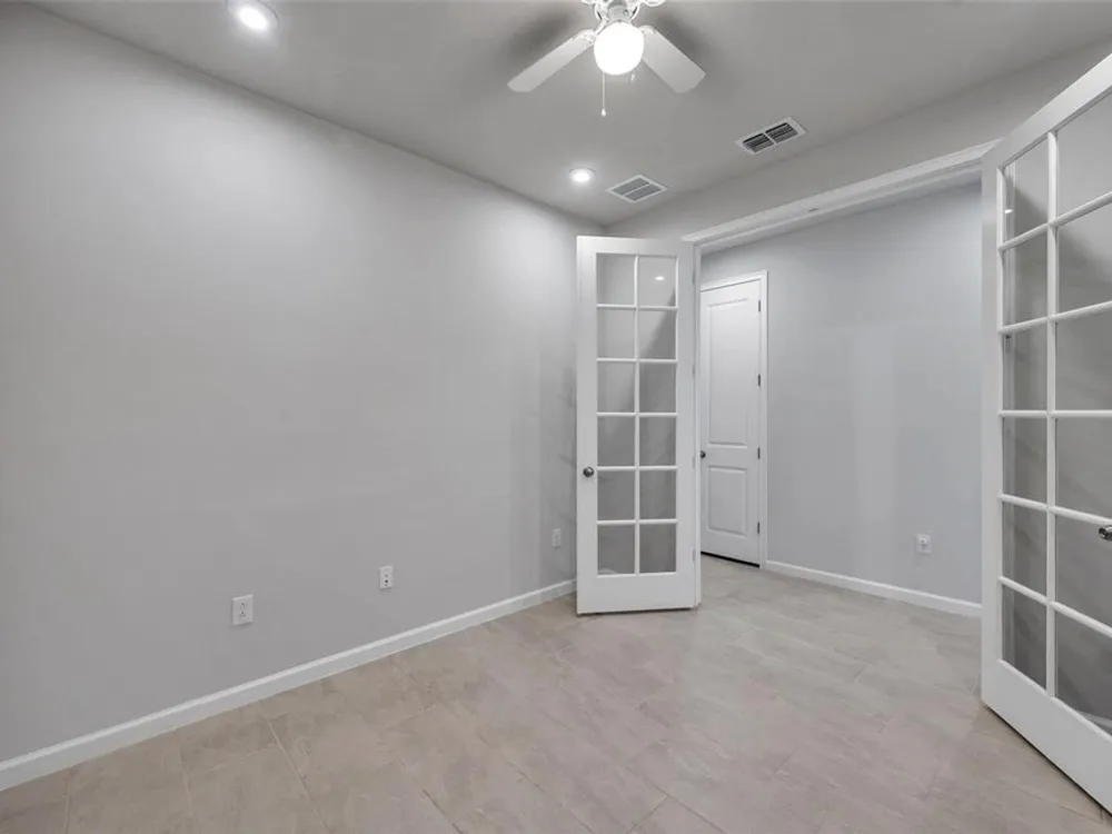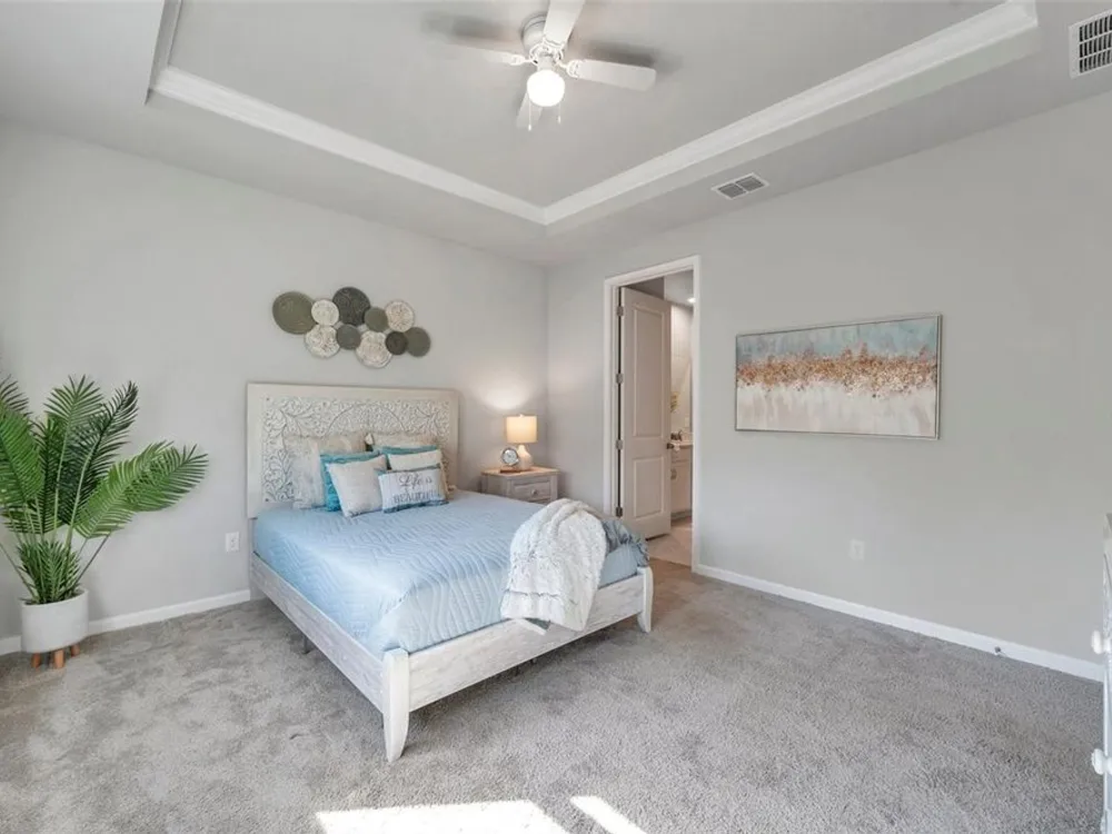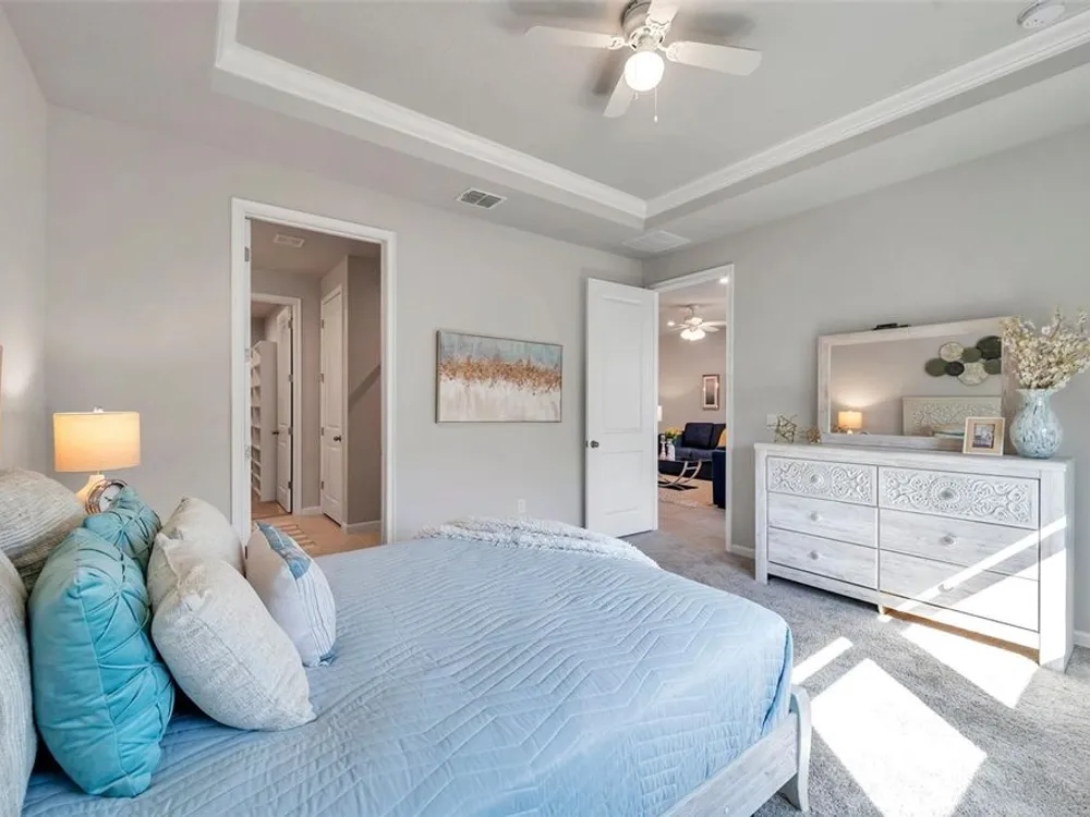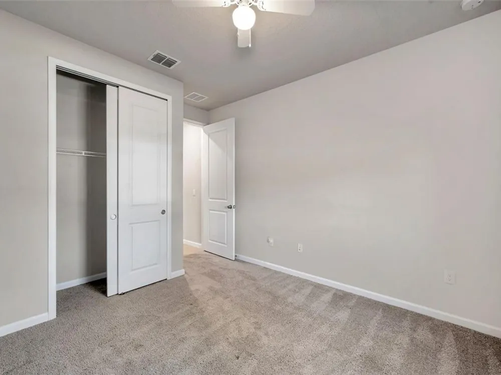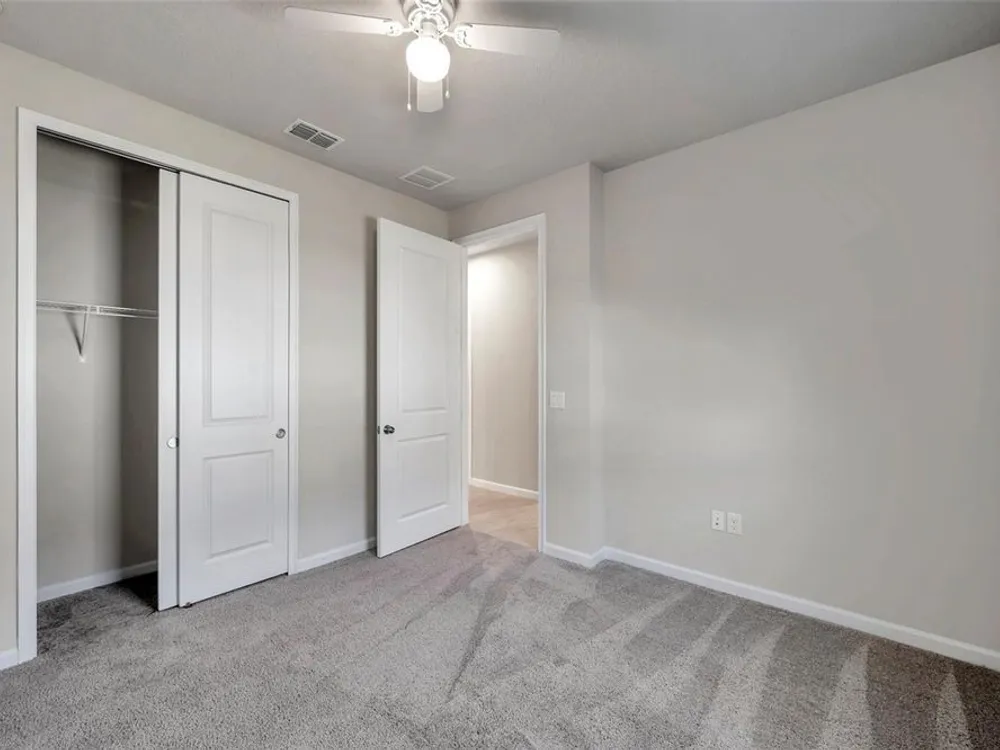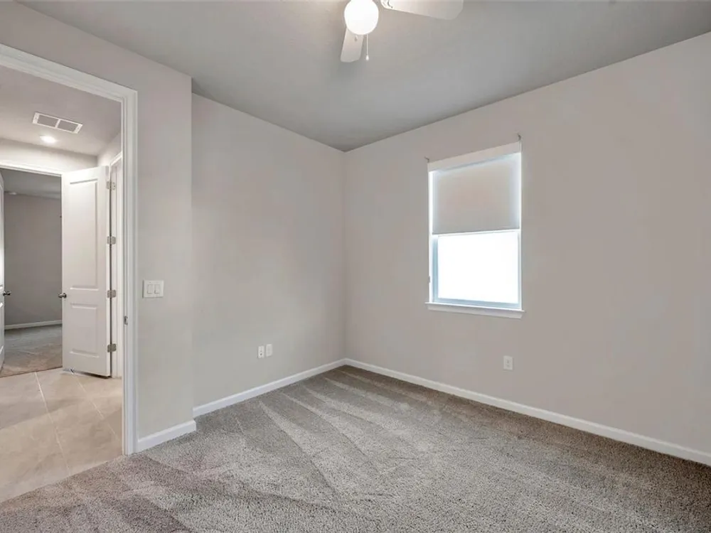 - Ceiling Fan(s), High Ceilings, Living/Dining Room, Open Floorplan, Main Level Primary, Solid Surface Counters, Split Bedrooms, Thermostat, Walk-In Closet(s), Window Treatments
