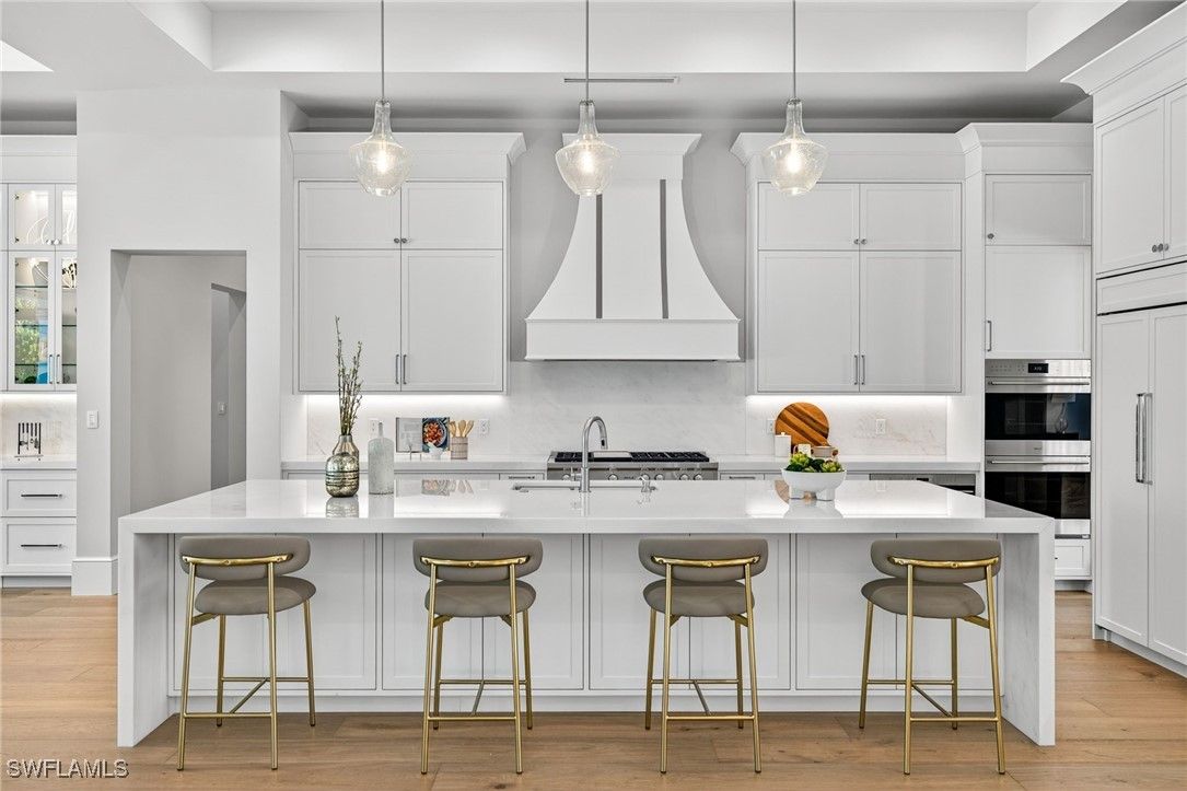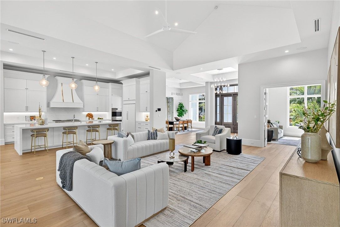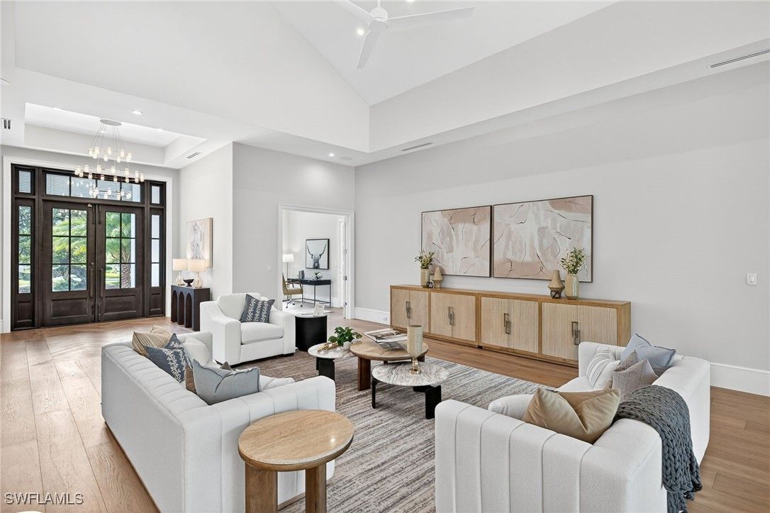 Luxurious 4 Bed/4.5 BA, 4,028 sqft home on a 100x160 lot awaits you in the coveted Moorings neighborhood of Naples. Perfectly designed for lavish entertaining and family life, this architectural masterpiece sets the standard for luxurious Naples living. Walk or golf-cart to Venetian Village shops, fine dining and Moorings Beach access.
