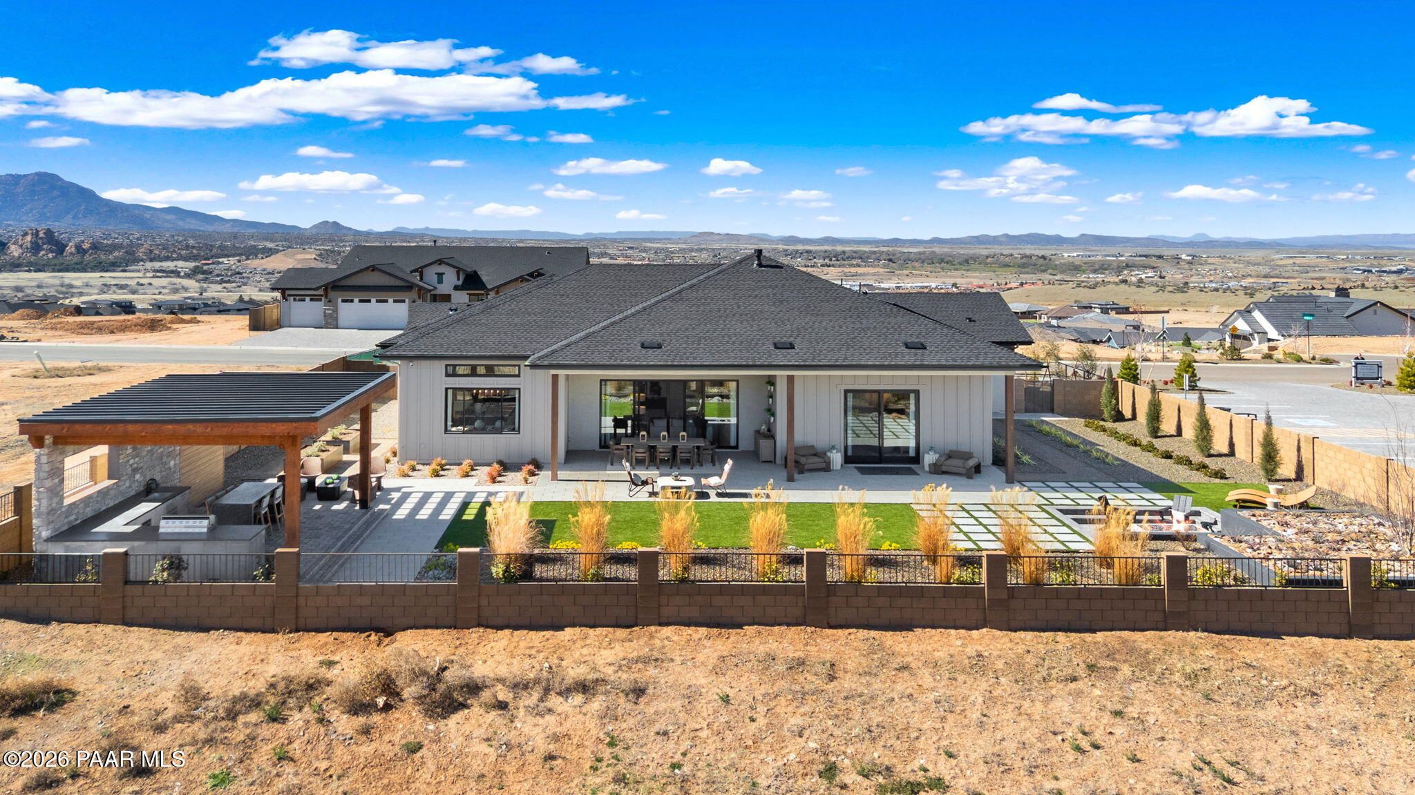 Capstone Homes in the Granite Dell Estates model home for sale on a premium 1/3-acre homesite with stunning Granite Dells views. This 3,020 sq ft luxury residence offers 3 bedrooms plus a study, 3-car garage, soaring 12' ceilings, engineered wood floors, quartzite countertops, a dramatic floor-to-ceiling stone fireplace, stone accent walls, and beautiful beams in the primary bedroom. The professionally designed and decorated interior showcases every upgrade and ''all the bells and whistles.'' The resort-style backyard features an incredible outdoor kitchen and exceptional outdoor living spaces. Rare investment opportunity: home to be leased back to the builder for 1-2 years. A true showcase model blending luxury, views, and built-in income.