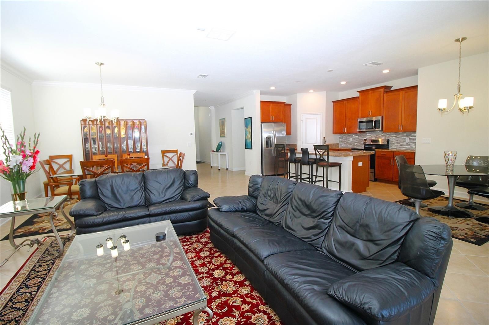 - Living/Dining Room, Open Floorplan, Main Level Primary, Solid Surface Counters, Window Treatments