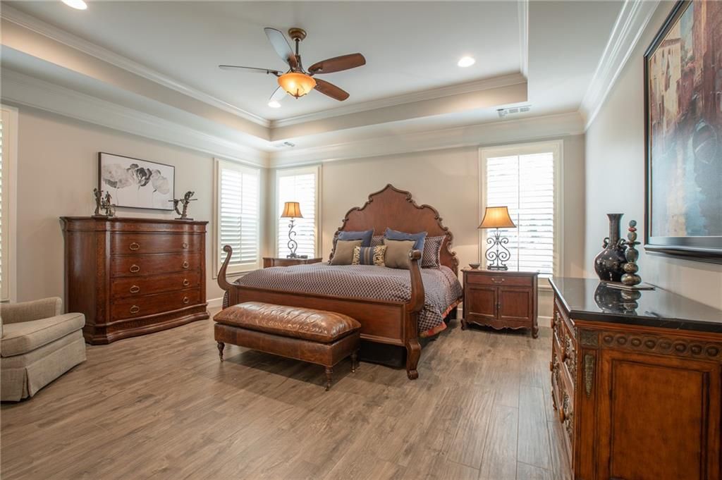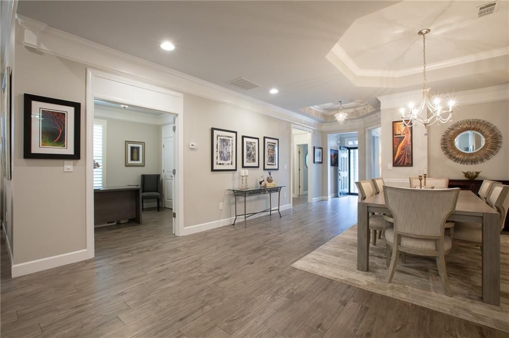 - Crown Molding, Double Vanity, Entrance Foyer, High Ceilings, Low Flow Plumbing Fixtures, Permanent Attic Stairs, Tray Ceiling(s), Walk-In Closet(s), Dual Pane Window(s), Plantation Shutters, Separate/Formal Dining Room, Great Room, Kitchen, Loft, Primary Bathroom, Primary Bedroom, Home Office