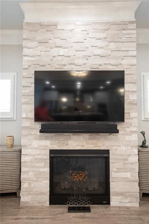 - 1, Blower Fan,Factory Built,Gas Log,Glass Doors,Great Room,Stone