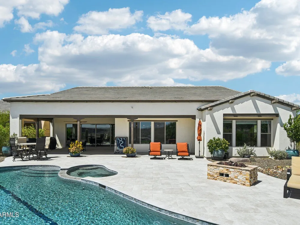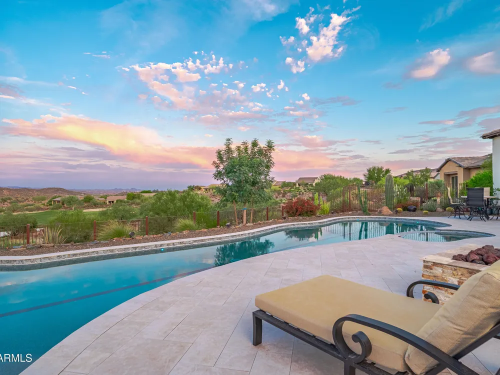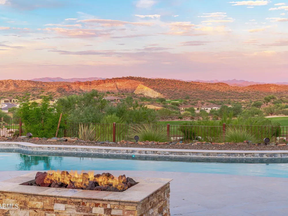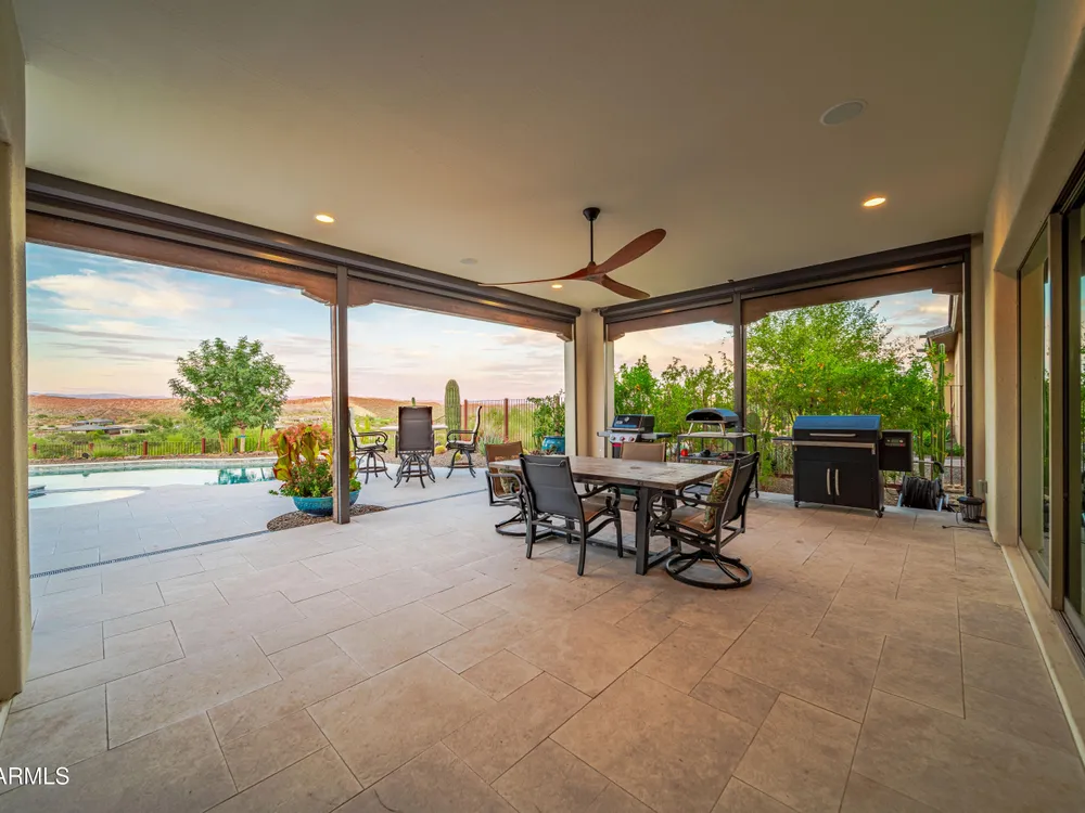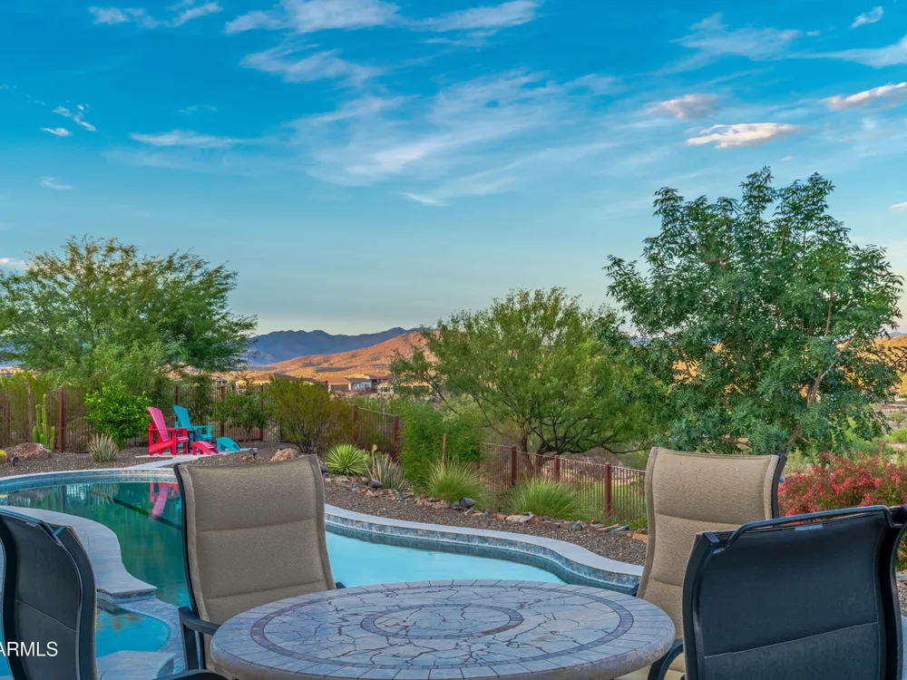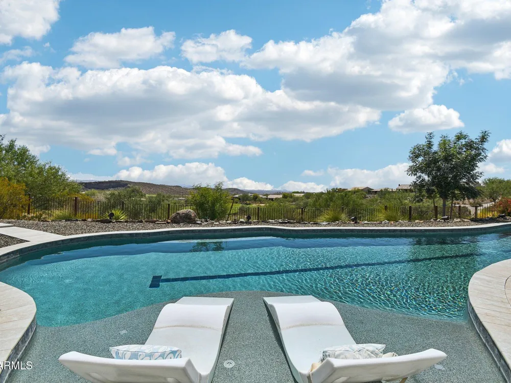 *Unbelievable VIEW Lot located above the Golf Course* 1 of a kind Lg Heated & Cooled Salt Water Pool. 3 CG. Surround sound inside/out is amazig incl/speakers in the Pool! Outdoor firepit. Highly Upgraded home + approx $300,000 add'l Buyer upgrades incuding the Pool. 3 Bdrms + a Den, 3.5 Baths total (1 being a Casita w/it's own entrance/bath). Amazing Kitchen w/Huge Island, Lg Pantry, Add'l cabinets & Countertop by the walk-in pantry. Dbl Ovens, SS appliances, built-in Refrig. Lg Greatroom. 12 ft ceilings in main living area. Multi-sliding corner Door. The view from the kitchen is Stunning. Lg Primary Bdrm, Primary Bath has 2 Walk-in Closets & entrance to Laundry, Lg Shower, Dbl Sinks. Smart Space Rm. Motorized sreens on Patio. This home/Lot is absolutely unbelievable! AMAZING PROPERTY! The home is highly upgraded, with plenty of storage space. There are motorized outdoor shades on the Large Patio. The Casita has cabinets, a sink, microwave, Small Refrigerator, a built in Bookcase, it's own living room, Bathroom & Entrance & is connected to the main home. There is a door for privacy from the Casita to the main house. The Kitchen has an overbundance of cabinets and countertops. Across from the walk-in pantry are more cabinets w/ a countertop. The 2nd Bdrm has it's own bathroom. The Lot is HUGE with the best view you can imagine. The pool looks like a resort pool. Come and see this amazing home!