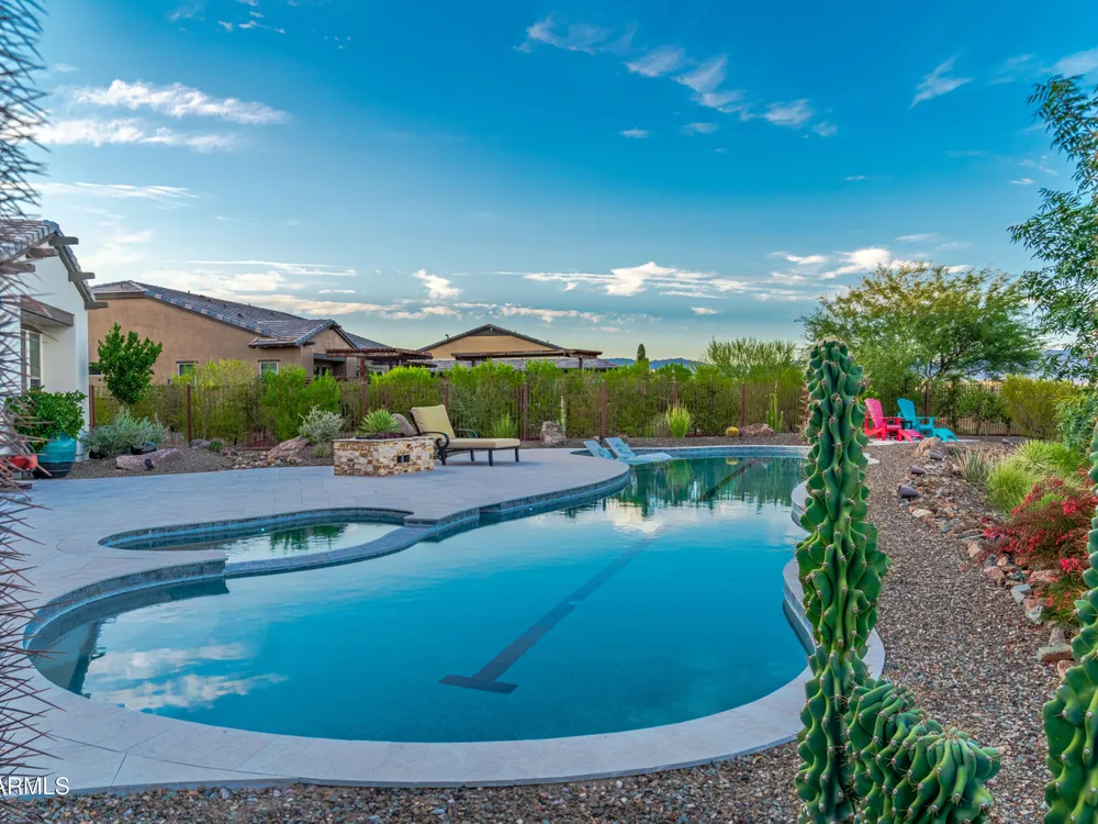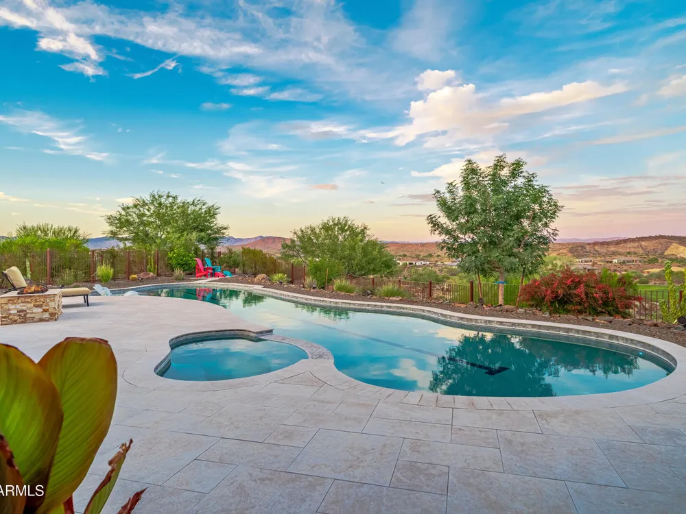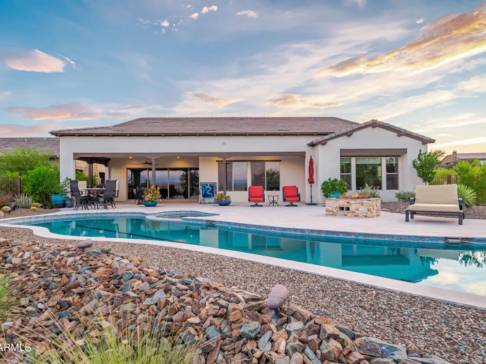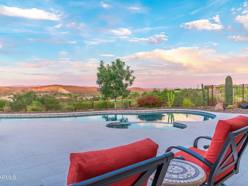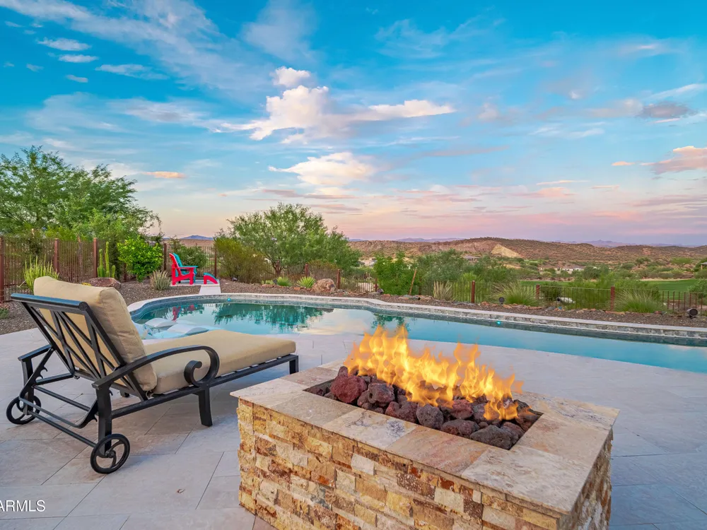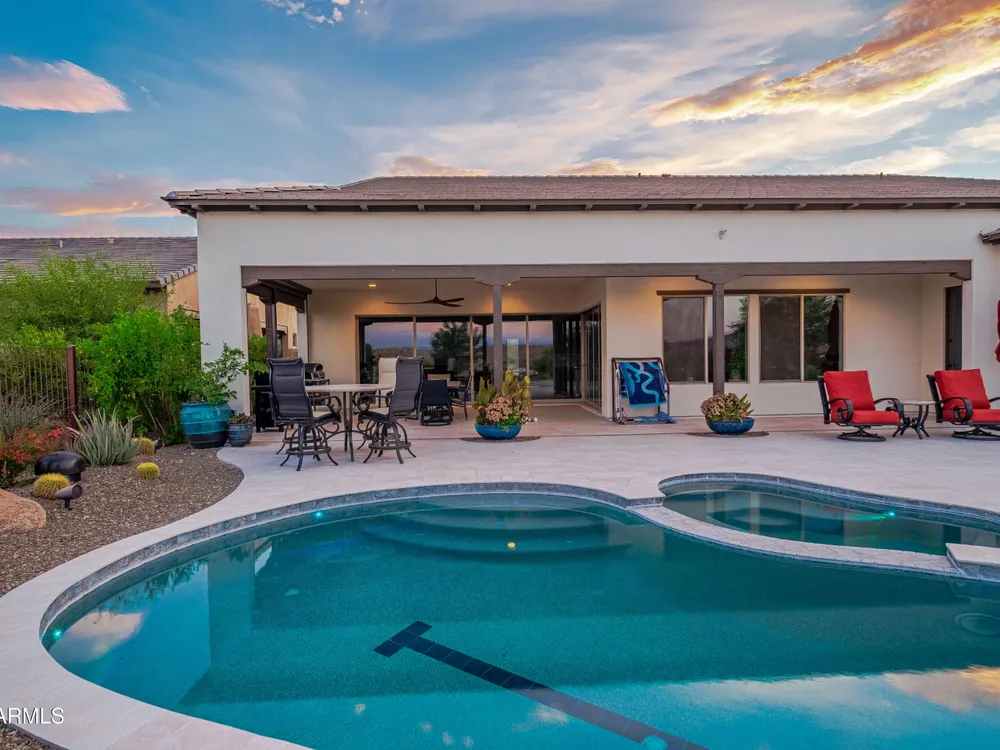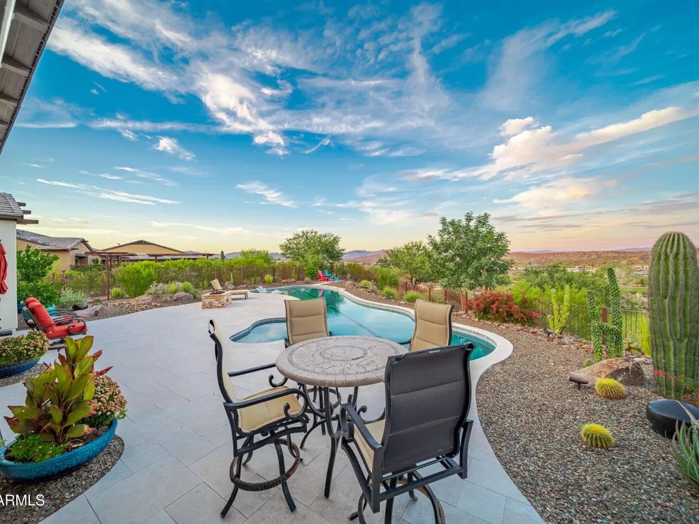 *Unbelievable VIEW Lot located above the Golf Course* 1 of a kind Lg Heated & Cooled Salt Water Pool. 3 CG. Surround sound inside/out is amazig incl/speakers in the Pool! Outdoor firepit. Highly Upgraded home + approx $300,000 add'l Buyer upgrades incuding the Pool. 3 Bdrms + a Den, 3.5 Baths total (1 being a Casita w/it's own entrance/bath). Amazing Kitchen w/Huge Island, Lg Pantry, Add'l cabinets & Countertop by the walk-in pantry. Dbl Ovens, SS appliances, built-in Refrig. Lg Greatroom. 12 ft ceilings in main living area. Multi-sliding corner Door. The view from the kitchen is Stunning. Lg Primary Bdrm, Primary Bath has 2 Walk-in Closets & entrance to Laundry, Lg Shower, Dbl Sinks. Smart Space Rm. Motorized sreens on Patio. This home/Lot is absolutely unbelievable! AMAZING PROPERTY! The home is highly upgraded, with plenty of storage space. There are motorized outdoor shades on the Large Patio. The Casita has cabinets, a sink, microwave, Small Refrigerator, a built in Bookcase, it's own living room, Bathroom & Entrance & is connected to the main home. There is a door for privacy from the Casita to the main house. The Kitchen has an overbundance of cabinets and countertops. Across from the walk-in pantry are more cabinets w/ a countertop. The 2nd Bdrm has it's own bathroom. The Lot is HUGE with the best view you can imagine. The pool looks like a resort pool. Come and see this amazing home!