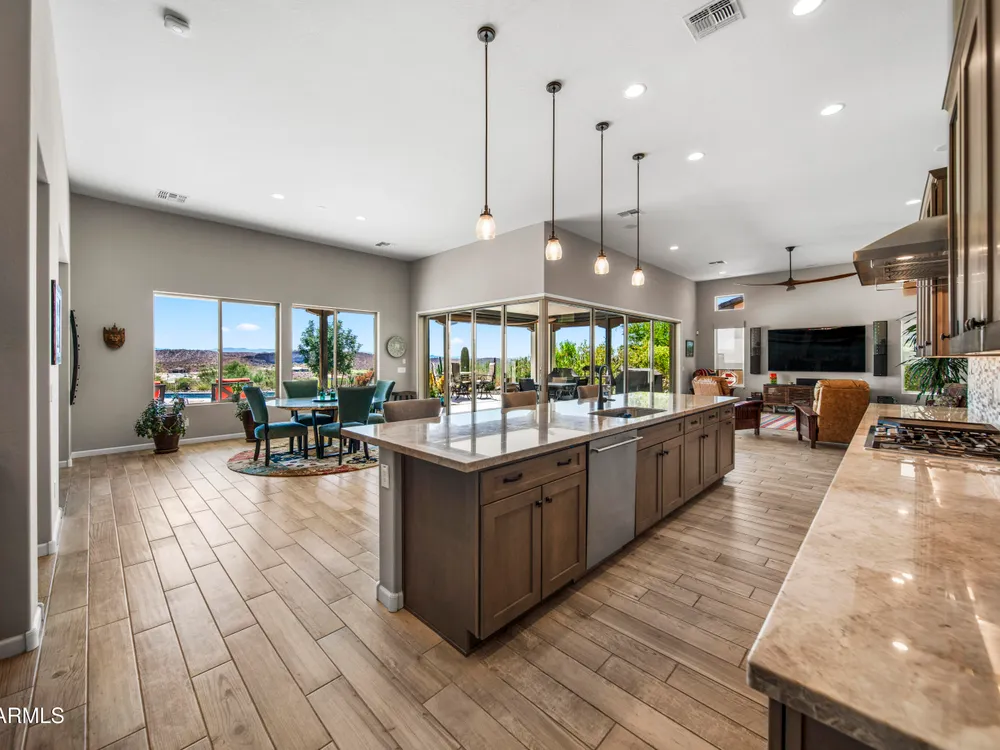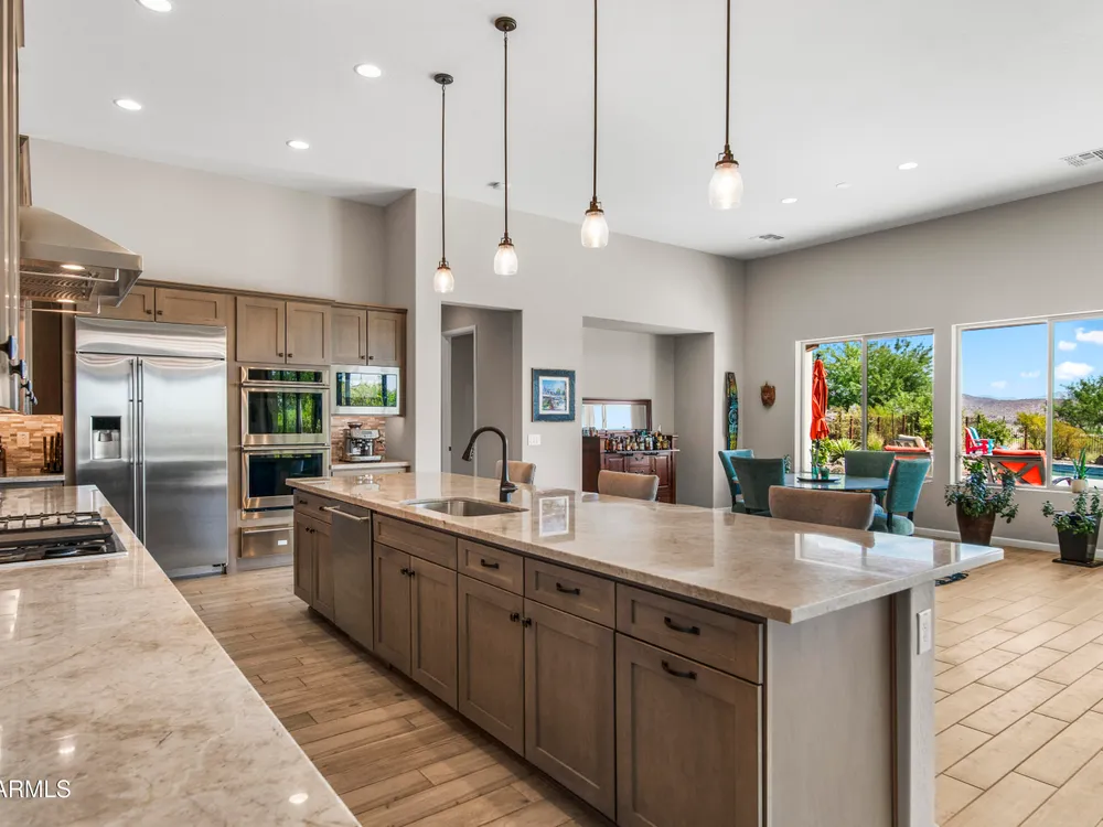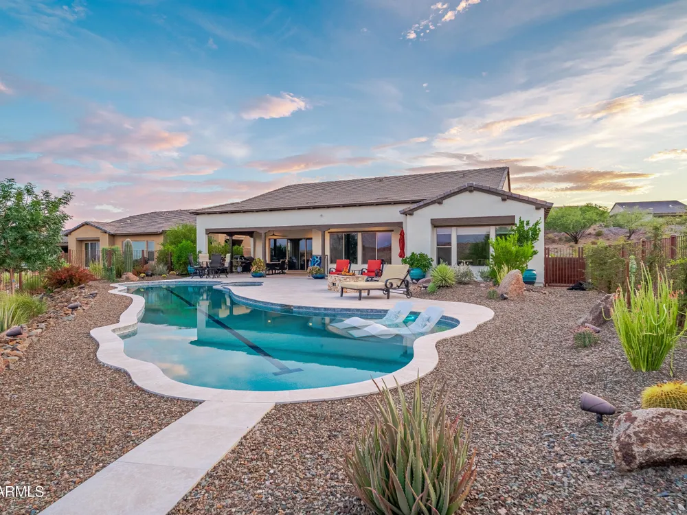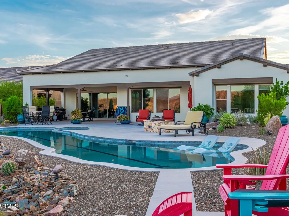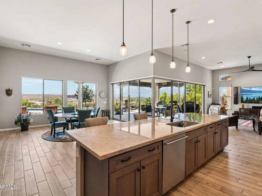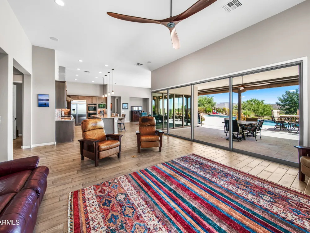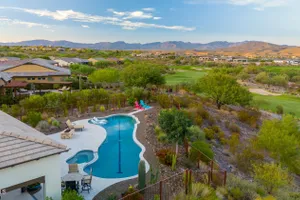 *Unbelievable VIEW Lot located above the Golf Course* 1 of a kind Lg Heated & Cooled Salt Water Pool. 3 CG. Surround sound inside/out is amazig incl/speakers in the Pool! Outdoor firepit. Highly Upgraded home + approx $300,000 add'l Buyer upgrades incuding the Pool. 3 Bdrms + a Den, 3.5 Baths total (1 being a Casita w/it's own entrance/bath). Amazing Kitchen w/Huge Island, Lg Pantry, Add'l cabinets & Countertop by the walk-in pantry. Dbl Ovens, SS appliances, built-in Refrig. Lg Greatroom. 12 ft ceilings in main living area. Multi-sliding corner Door. The view from the kitchen is Stunning. Lg Primary Bdrm, Primary Bath has 2 Walk-in Closets & entrance to Laundry, Lg Shower, Dbl Sinks. Smart Space Rm. Motorized sreens on Patio. This home/Lot is absolutely unbelievable! AMAZING PROPERTY! The home is highly upgraded, with plenty of storage space. There are motorized outdoor shades on the Large Patio. The Casita has cabinets, a sink, microwave, Small Refrigerator, a built in Bookcase, it's own living room, Bathroom & Entrance & is connected to the main home. There is a door for privacy from the Casita to the main house. The Kitchen has an overbundance of cabinets and countertops. Across from the walk-in pantry are more cabinets w/ a countertop. The 2nd Bdrm has it's own bathroom. The Lot is HUGE with the best view you can imagine. The pool looks like a resort pool. Come and see this amazing home!