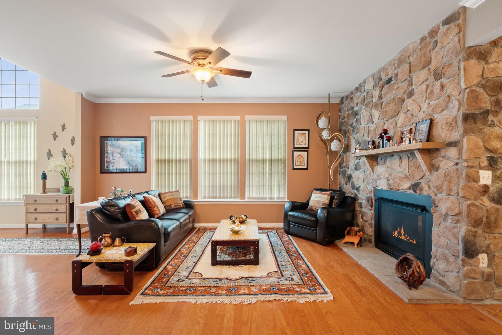 This beautiful stone front home is the popular CAPTIVA MODEL with a loft, spanning over 3,465 sq. ft. with 5 bedrooms (1 used as an office) 3 full baths. Step inside to the high ceiling foyer to discover an open floor plan that seamlessly connects the living, dining, and kitchen areas, perfect for entertaining or quiet evenings by the stunning double-sided stone fireplace. The large kitchen is equipped with a gas oven/range, built-in microwave, upgraded cabinets, and Corian counters complemented by a cozy breakfast area. Enjoy serene mornings in the sun filled all-season room or unwind in the lavish soaking tub of the master suite, complete with a walk-in shower and spacious walk-in closets. Has a chair lift for easy access to loft area (418 sq ft) with sitting/TV area, two large bedrooms, full bath and a storage room. The property is set on a beautifully landscaped cul-de-sac lot, backing to tranquil woods, providing a peaceful retreat. Outdoor living is enhanced with a fenced patio, ideal for enjoying the lush surroundings. Upgrades and enhancements include: extended garage, new triple pane windows (main floor), new roof (2021), new A/C (2020) and new water heater (2024). Residents of this sought after gated community enjoy exclusive amenities, including an amazing club house with indoor and outdoor pools, tennis courts, fitness center, various exercise classes, nature trails to walk, putting green, numerous clubs to join, and social events. Embrace the lifestyle you deserve in this exceptional community, where comfort meets elegance. Don't miss your chance to call this beautiful property home!
