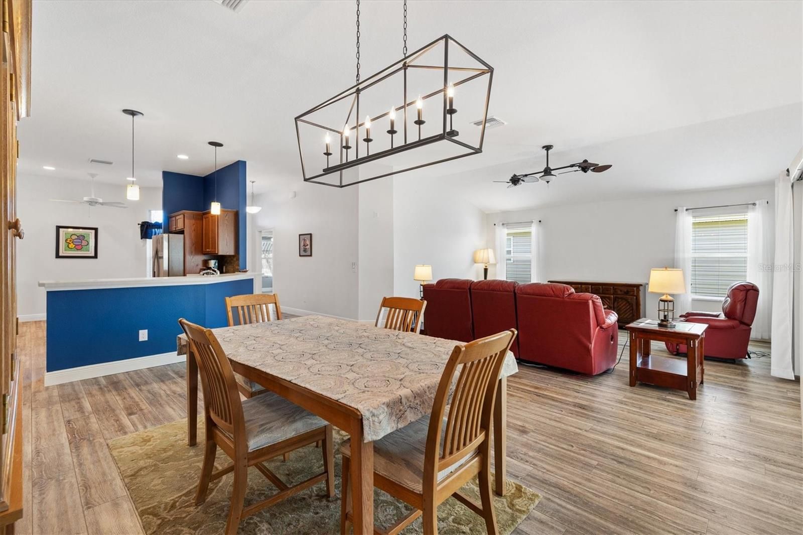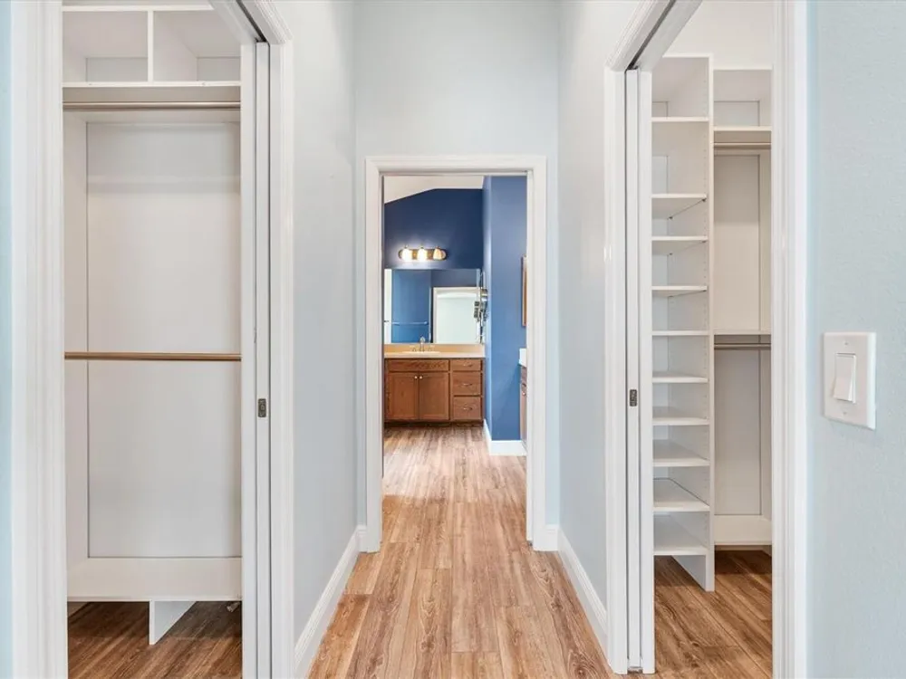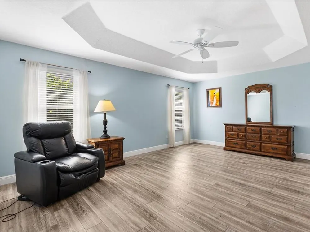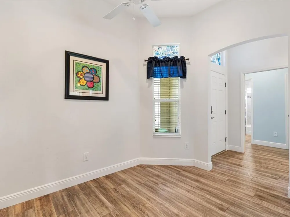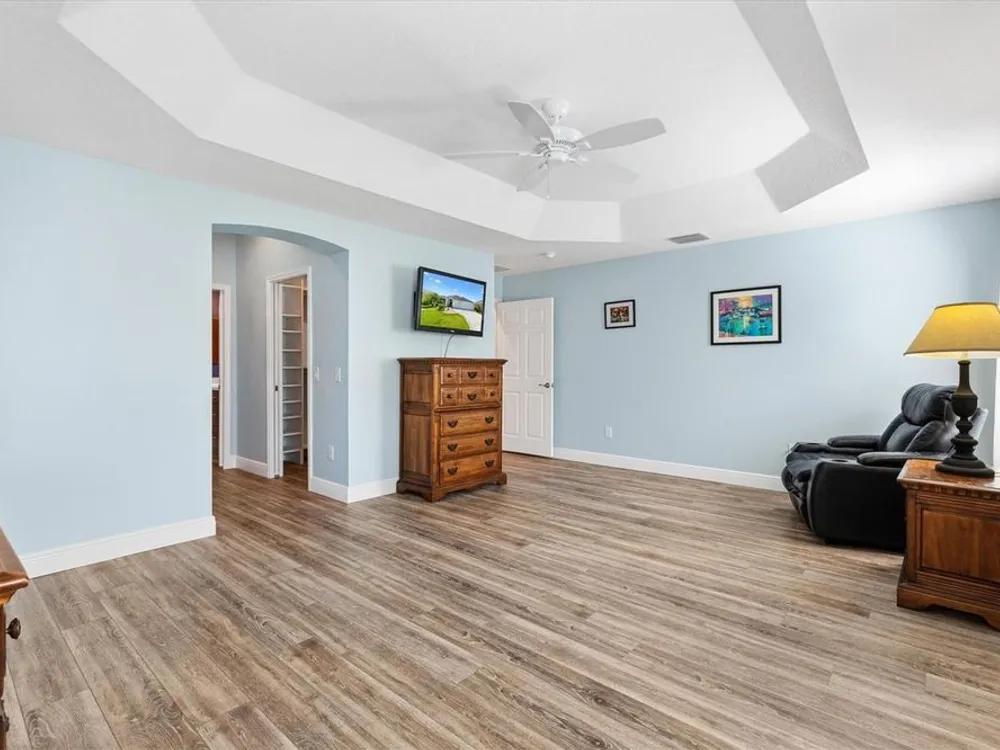 - Ceiling Fan(s), Eat-in Kitchen, High Ceilings, Living/Dining Room, Open Floorplan, Solid-Wood Cabinets, Split Bedrooms, Tray Ceiling(s), Walk-In Closet(s), Window Treatments