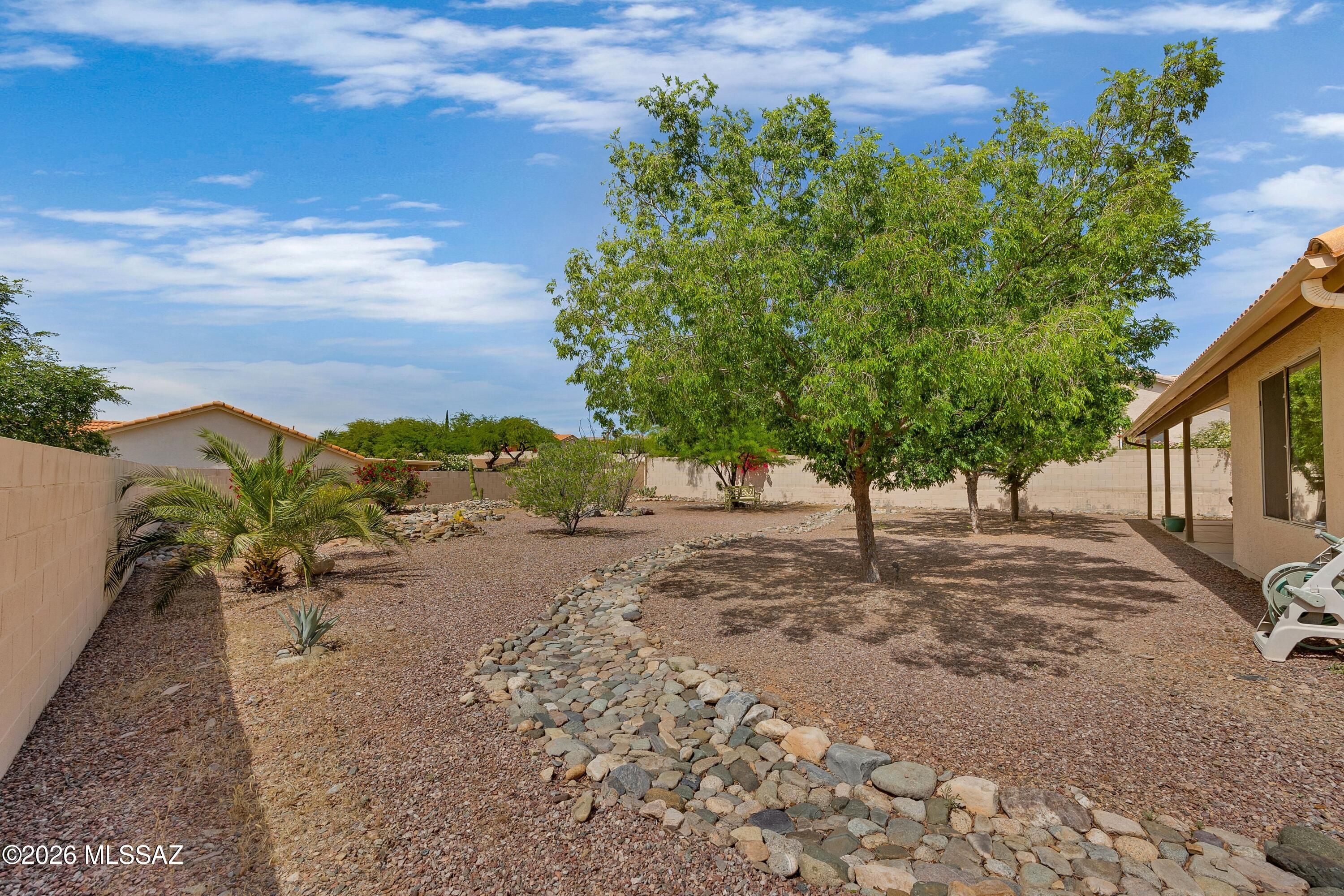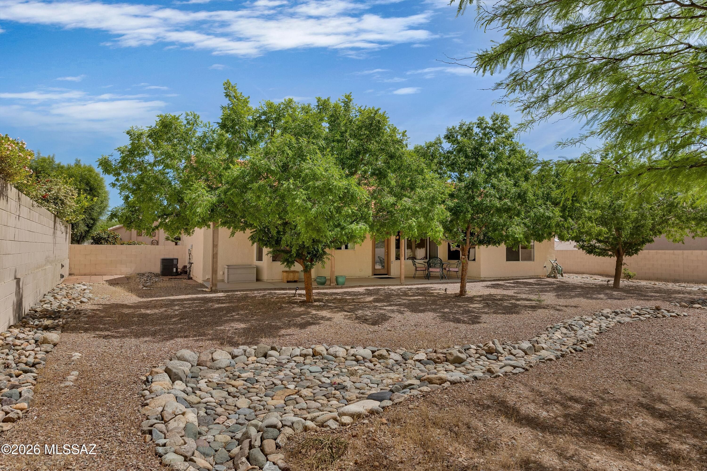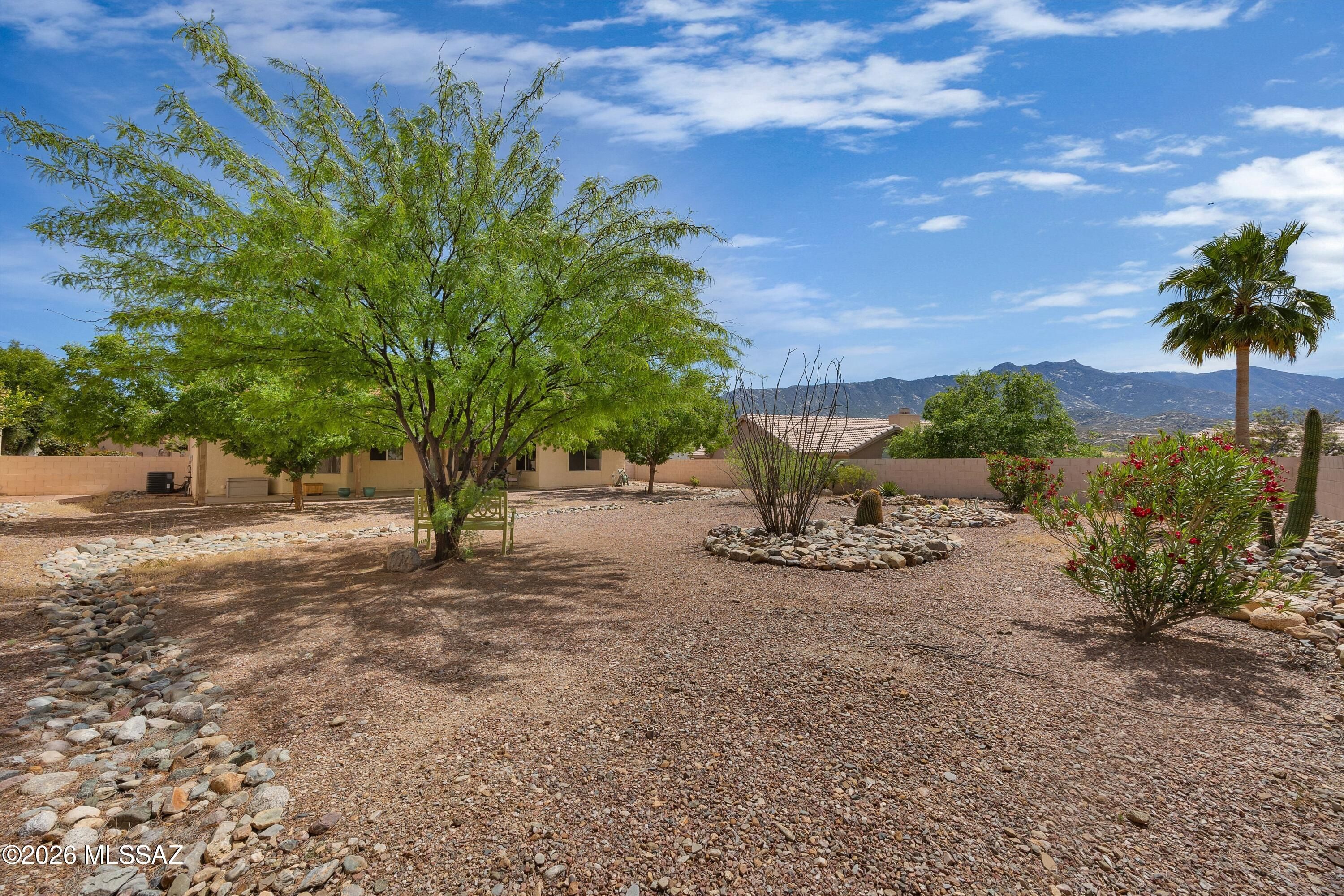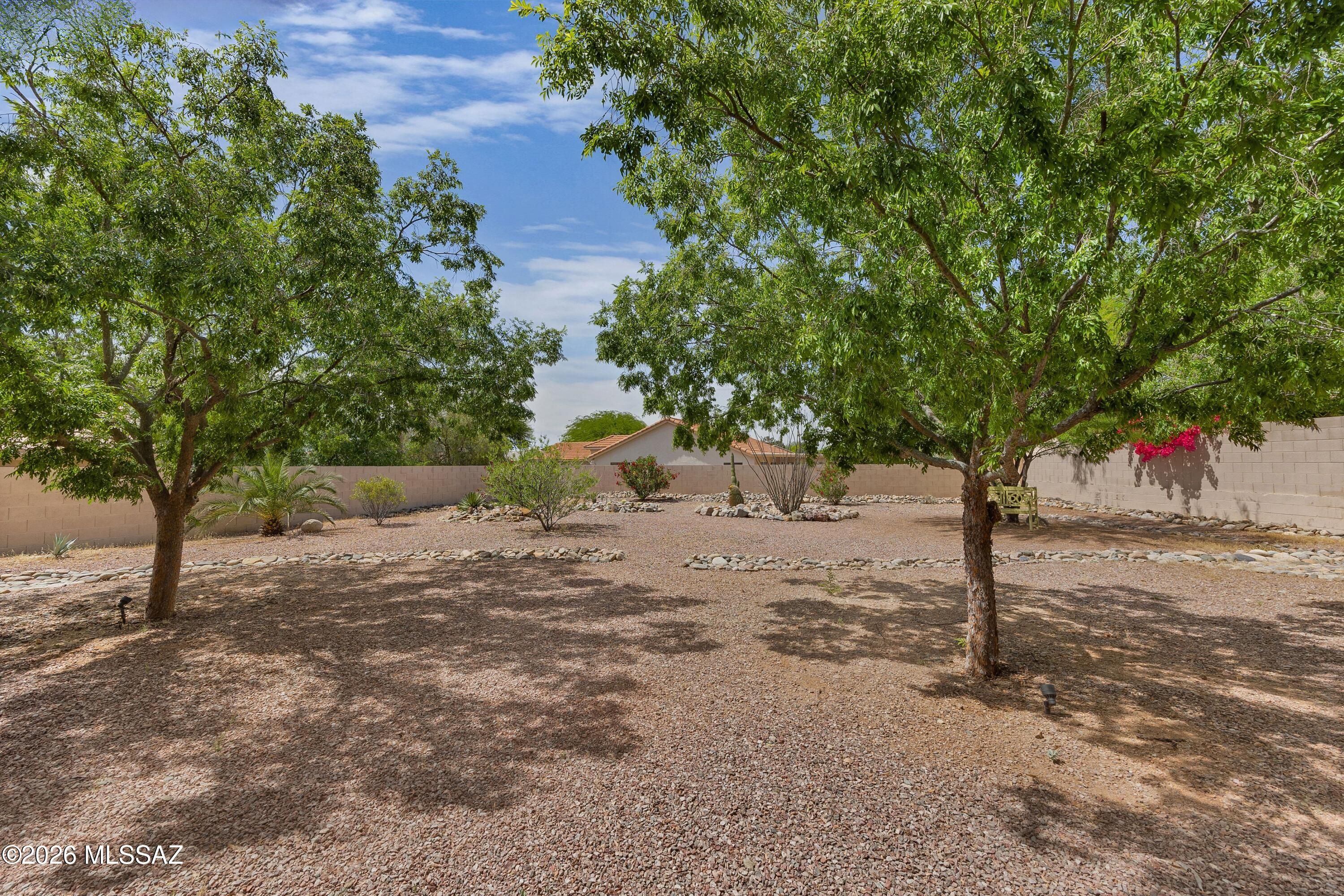 Welcome Home to a Loma located on a .24-acre lot in SaddleBrooke! Great room & dining area with French door to patio for easy indoor/outdoor living. Kitchen features stainless & white appliances, freshly painted white cabinets, & breakfast nook. Owner's suite with walk-in closet. Ensuite bath has dual vanity & walk-in shower. Guest bedroom with closet & nearby guest bath. Laundry room with washer, dryer, & storage. Two-car garage includes 2021 HVAC, 2020 water heater, utility sink, & cabinets. Covered patio & gated yard with mature trees. Expansive lot offers endless possibilities-add a pool, golf cart garage, workshop, or guest house! Relax & enjoy SaddleBrooke lifestyle with 3 clubhouses, restaurants, pools, fitness centers, golf courses, pickleball courts, tennis, plus 100's of clubs!