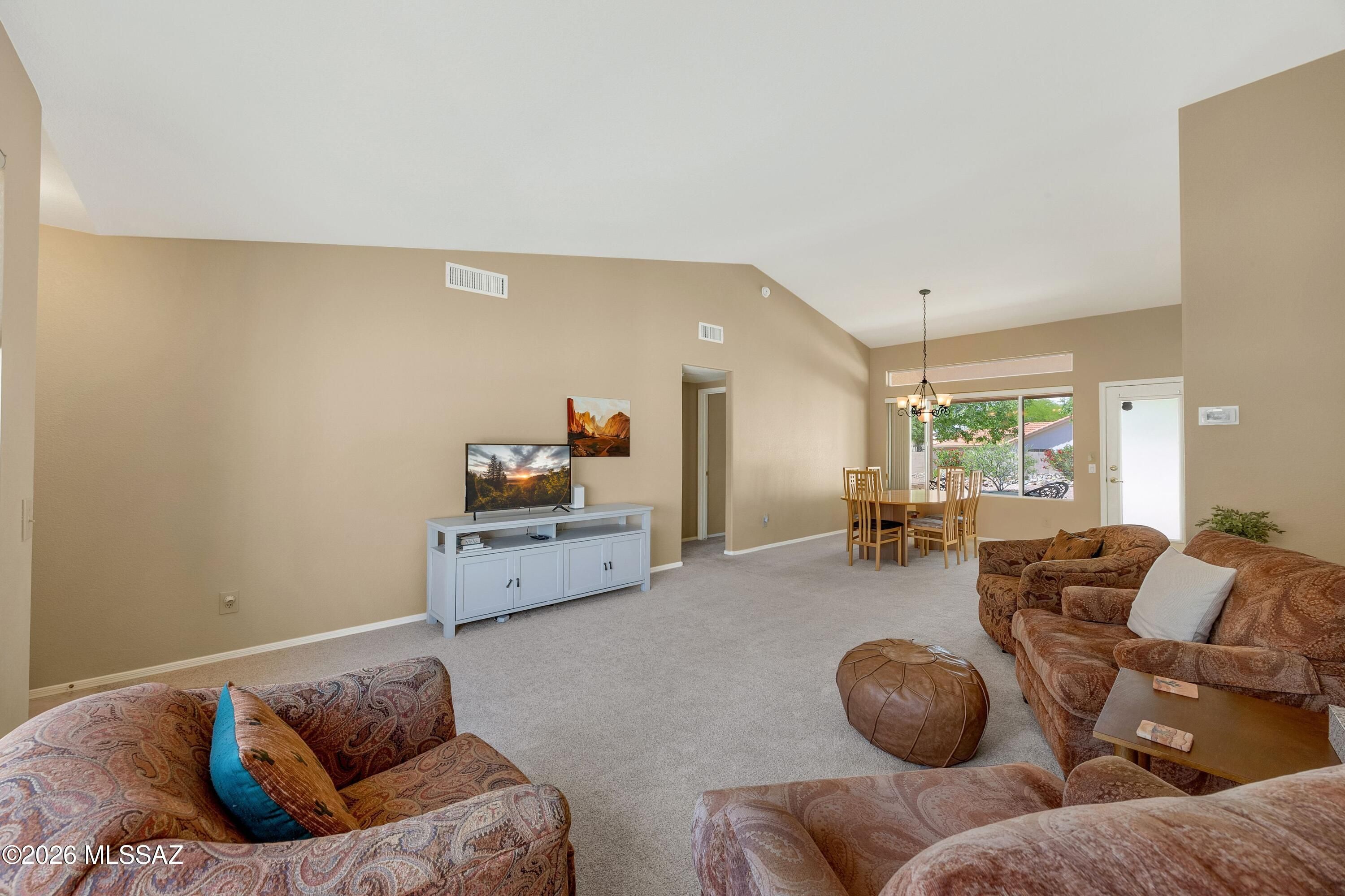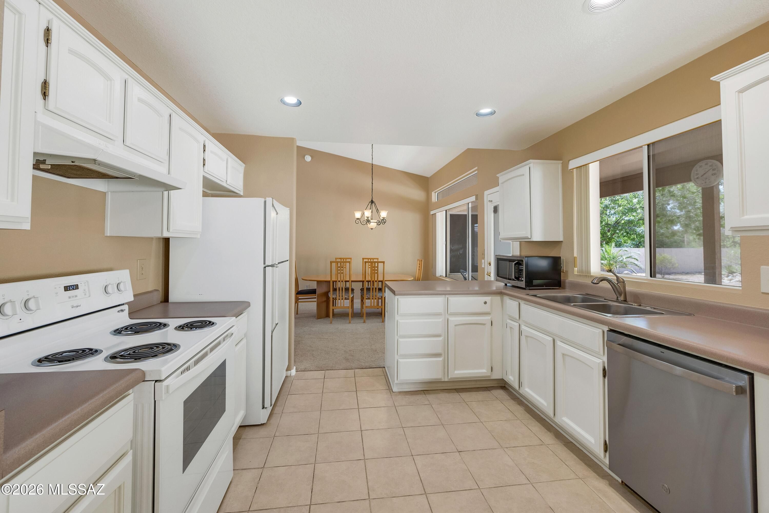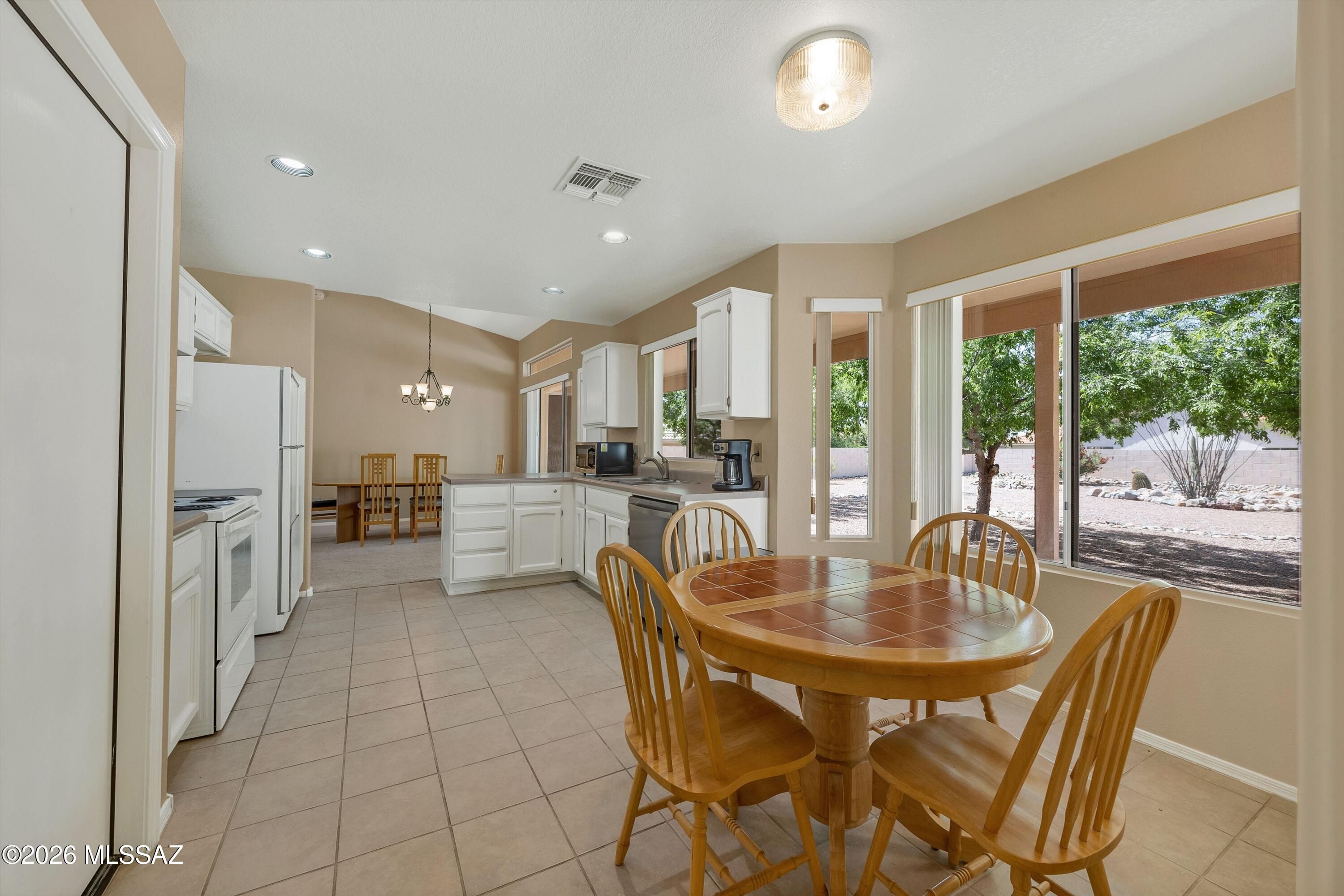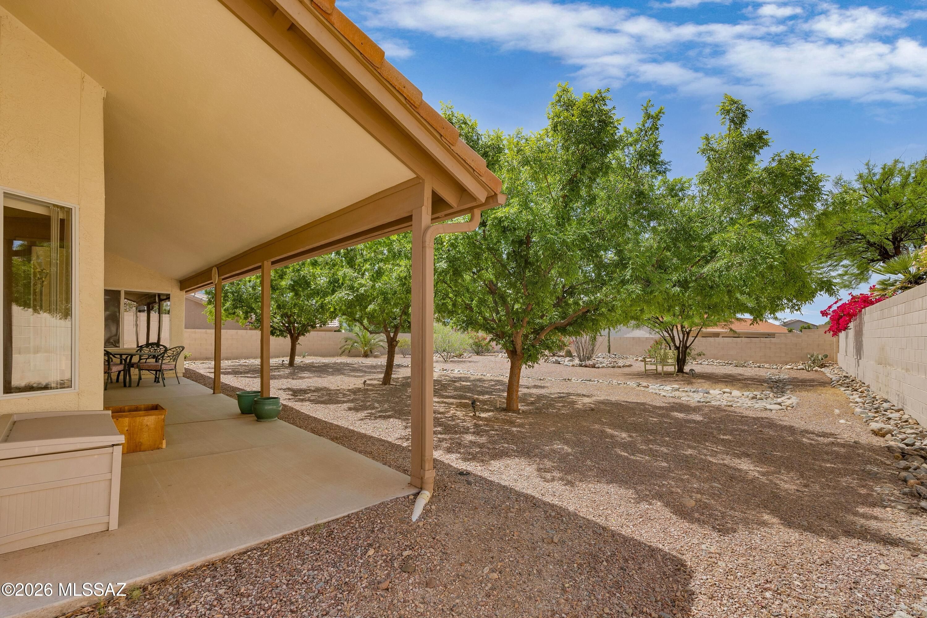 Welcome Home to a Loma located on a .24-acre lot in SaddleBrooke! Great room & dining area with French door to patio for easy indoor/outdoor living. Kitchen features stainless & white appliances, freshly painted white cabinets, & breakfast nook. Owner's suite with walk-in closet. Ensuite bath has dual vanity & walk-in shower. Guest bedroom with closet & nearby guest bath. Laundry room with washer, dryer, & storage. Two-car garage includes 2021 HVAC, 2020 water heater, utility sink, & cabinets. Covered patio & gated yard with mature trees. Expansive lot offers endless possibilities-add a pool, golf cart garage, workshop, or guest house! Relax & enjoy SaddleBrooke lifestyle with 3 clubhouses, restaurants, pools, fitness centers, golf courses, pickleball courts, tennis, plus 100's of clubs!