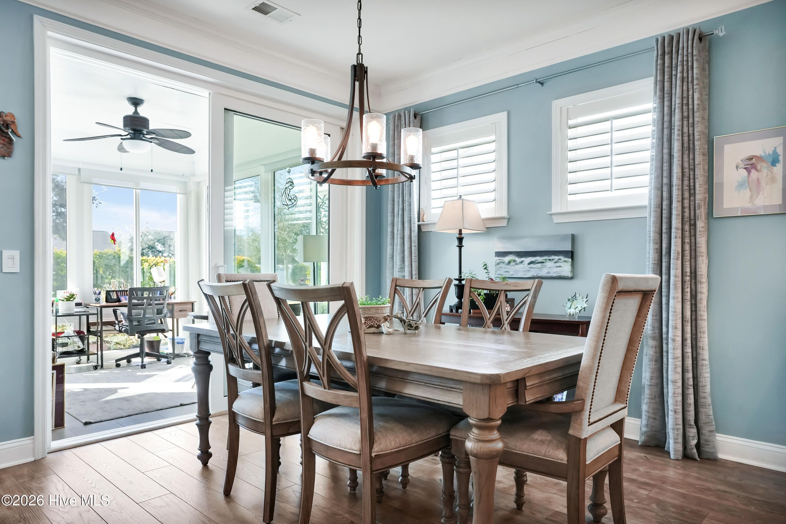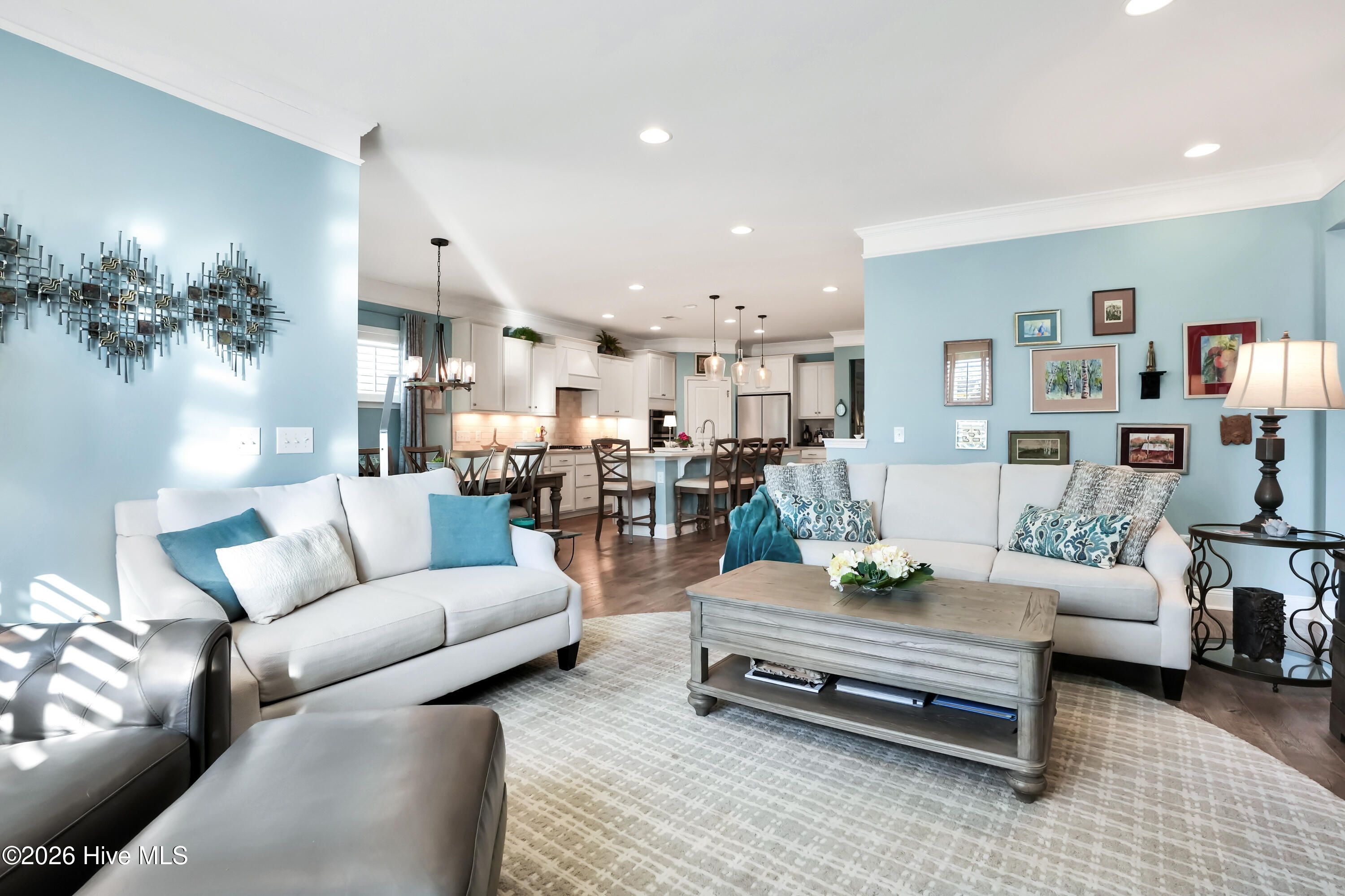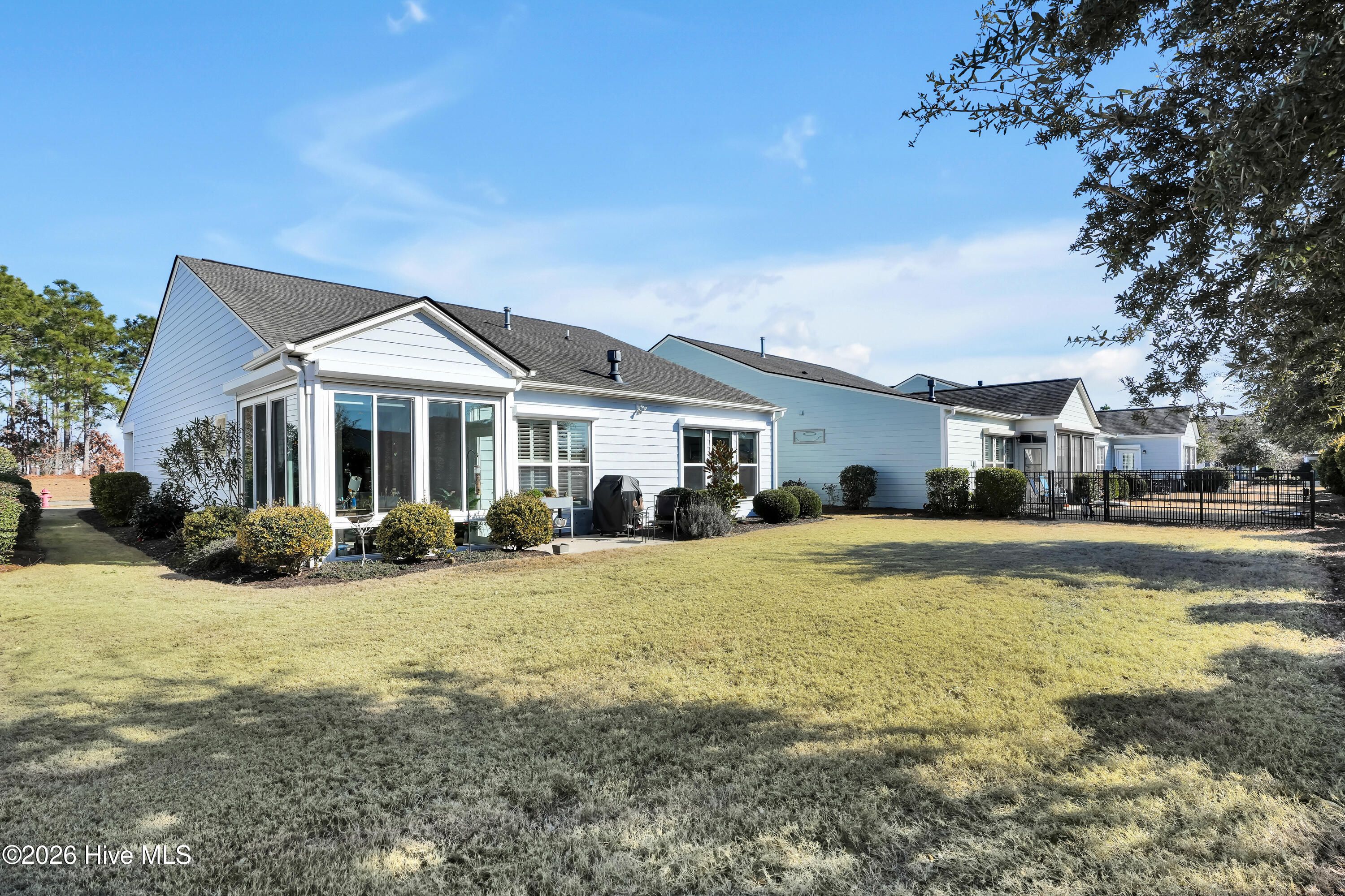 Beautifully maintained and move in ready, this popular Castle Rock floor plan in Del Webb at Riverlights offers easy, comfortable living in a fantastic location. Set on a premier lot across from the peaceful community pond, you'll love the added privacy and relaxing views right out front. An oversized front porch welcomes you inside to bright, open concept living spaces designed for both everyday life and easy entertaining. The spacious kitchen with a large island flows effortlessly into the dining and living areas, making it the heart of the home. The private primary suite features a generous walk-in closet and a lovely en-suite bath. A second bedroom and full bath are perfect for guests, while the third bedroom gives you flexible space for a home office or hobby room. The sunroom overlooks the serene backyard, just the spot for morning coffee or winding down at the end of the day. Plus, a full house generator offers extra peace of mind year round. Enjoy low maintenance living with resort style amenities including a clubhouse, fitness center, pickleball, indoor and outdoor pool, walking trails and a full calendar of social activities - all close to shopping, dining and coastal attractions. This is the kind of home that just feels good the moment you walk in.